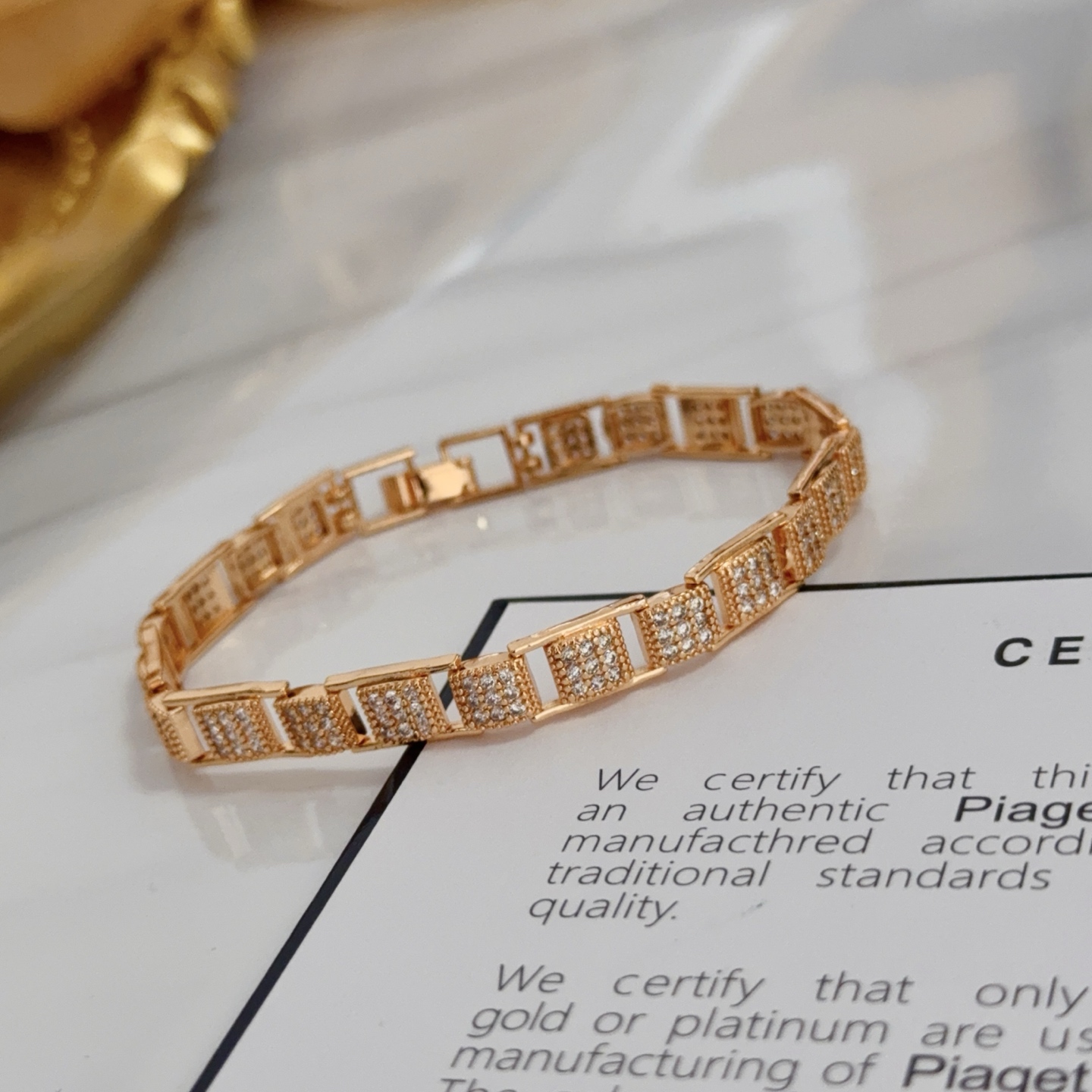 這款首飾是AAAAA 1:1 質量(非常棒). 使用了和原版一模一樣的材料. 商標部分也保持了和皮亞傑/Piaget一樣. 圖片拍攝是實物首飾拍攝, 您所收到的實物保證和我們圖片一模一樣.