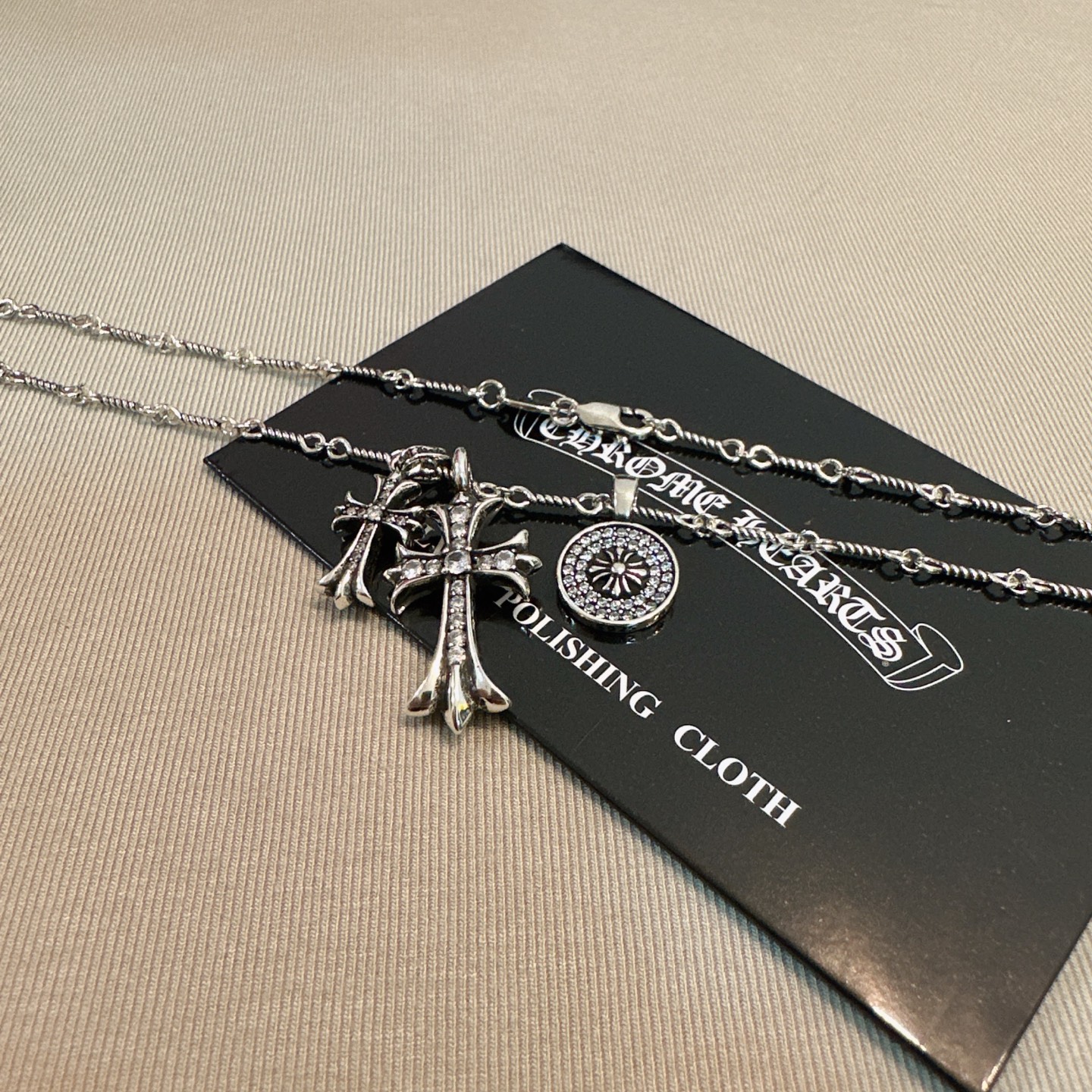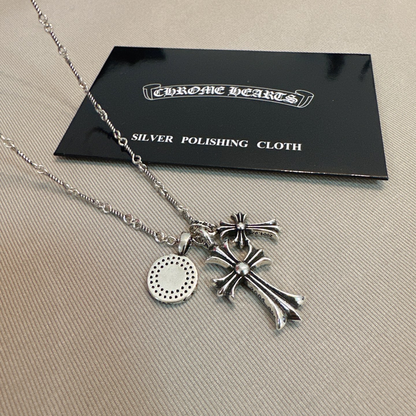 這款首飾是AAAAA 1:1 質量(非常棒). 使用了和原版一模一樣的材料. 商標部分也保持了和鉻心/Chrome Hearts一樣. 圖片拍攝是實物首飾拍攝, 您所收到的實物保證和我們圖片一模一樣.
