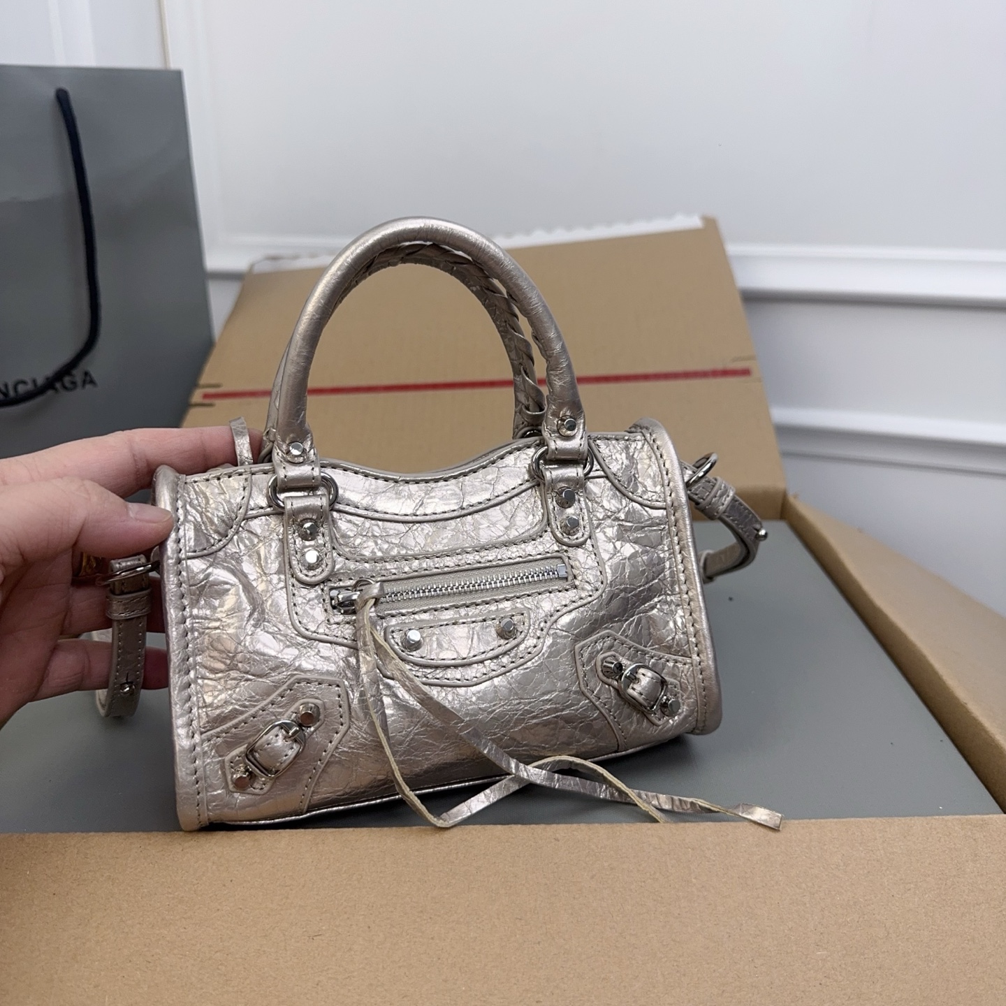 這款包包是AAAAA 1:1 質量(非常棒). 使用了和原版一模一樣的材料. 商標部分也保持了和巴倫西亞/Balenciaga一樣. 圖片拍攝是實物包包拍攝, 您所收到的實物保證和我們圖片一模一樣.