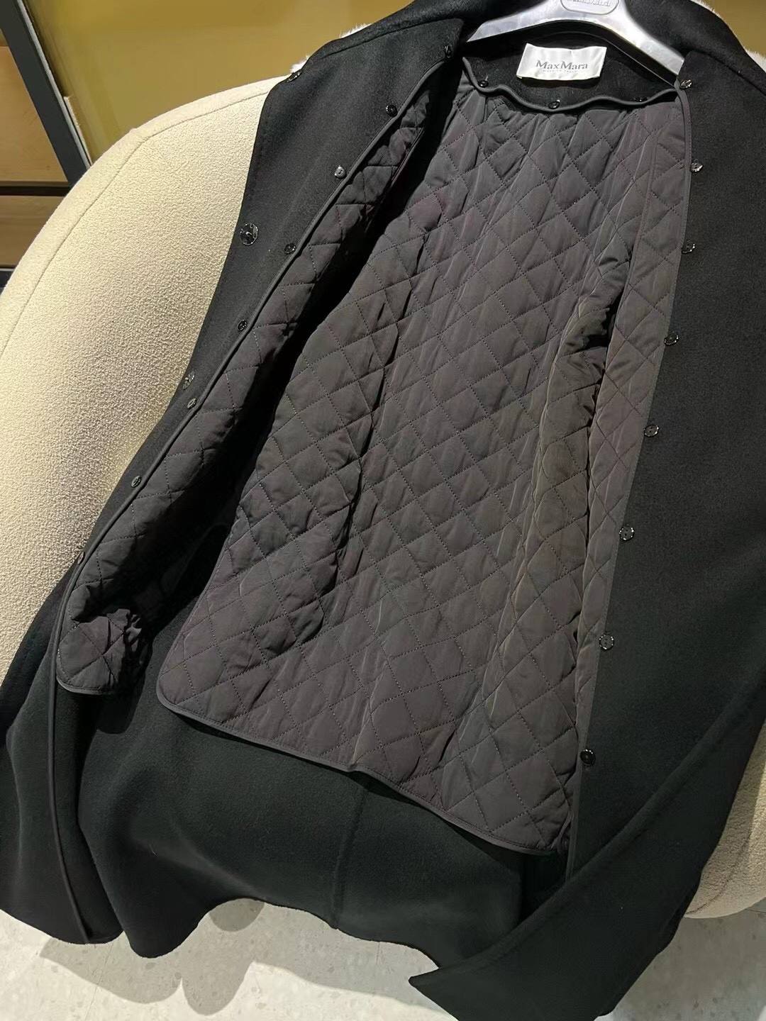 這款衣服是AAAAA 1:1 質量(非常棒). 使用了和原版一模一樣的材料. 商標部分也保持了和Max Mara一樣. 圖片拍攝是實物衣服拍攝, 您所收到的實物保證和我們圖片一模一樣.