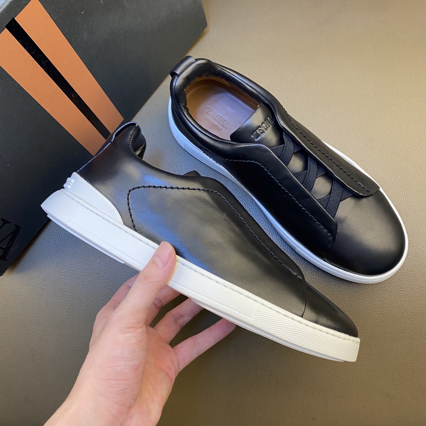 這款鞋子是AAAAA 1:1 質量(非常棒). 使用了和原版一模一樣的材料. 商標部分也保持了和Zegna一樣. 圖片拍攝是實物鞋子拍攝, 您所收到的實物保證和我們圖片一模一樣.