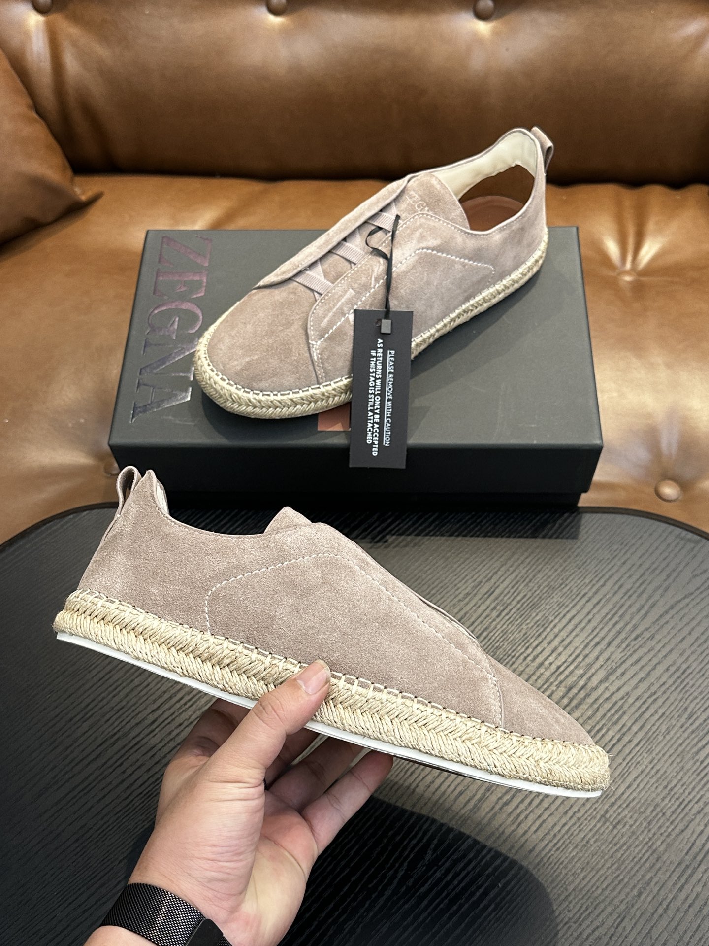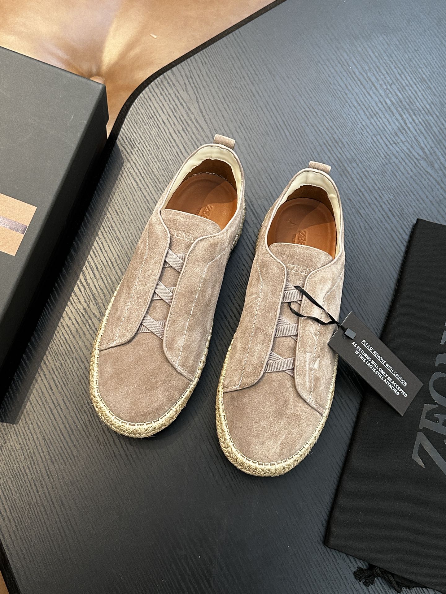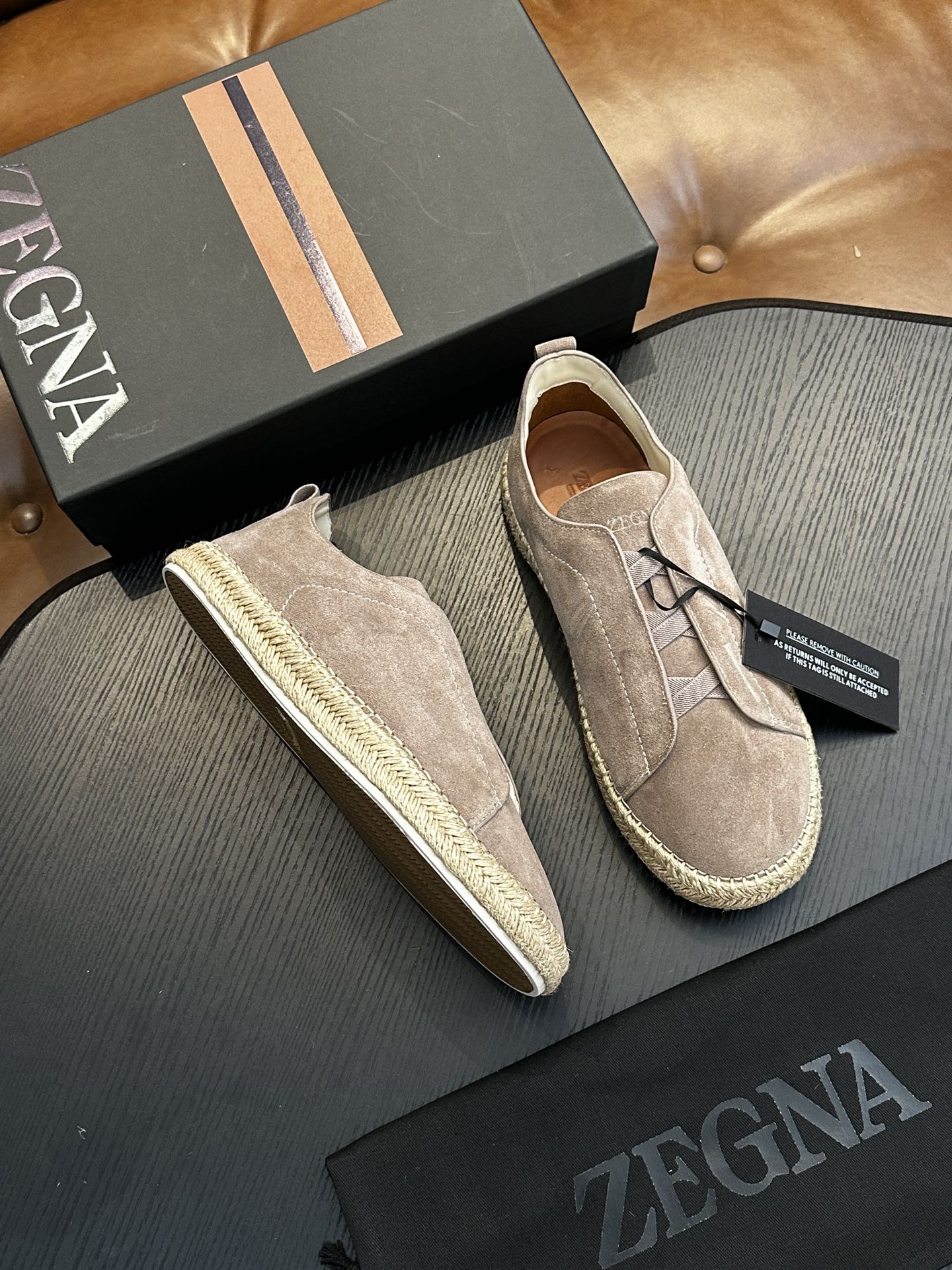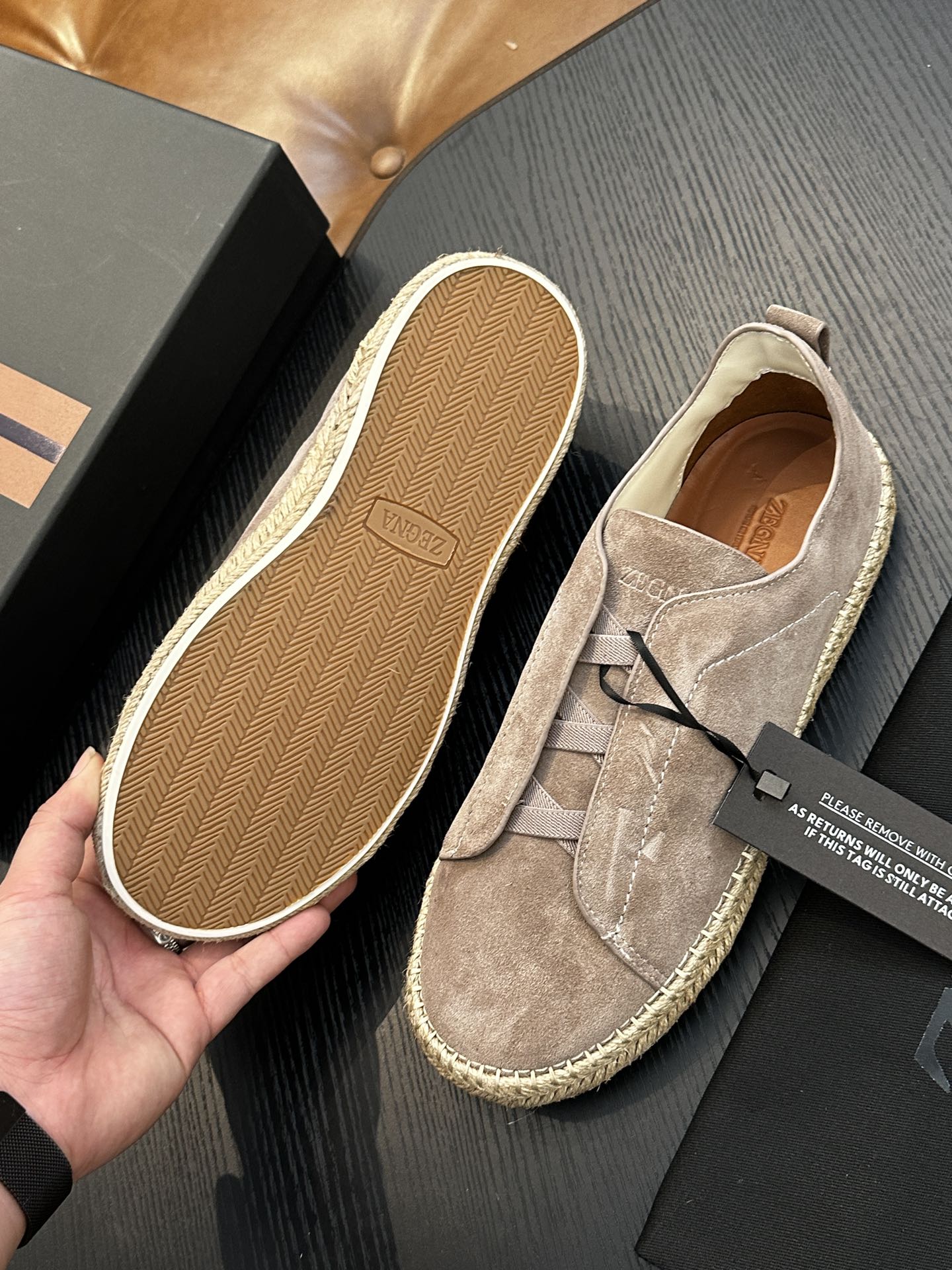 這款鞋子是AAAAA 1:1 質量(非常棒). 使用了和原版一模一樣的材料. 商標部分也保持了和Zegna一樣. 圖片拍攝是實物鞋子拍攝, 您所收到的實物保證和我們圖片一模一樣.