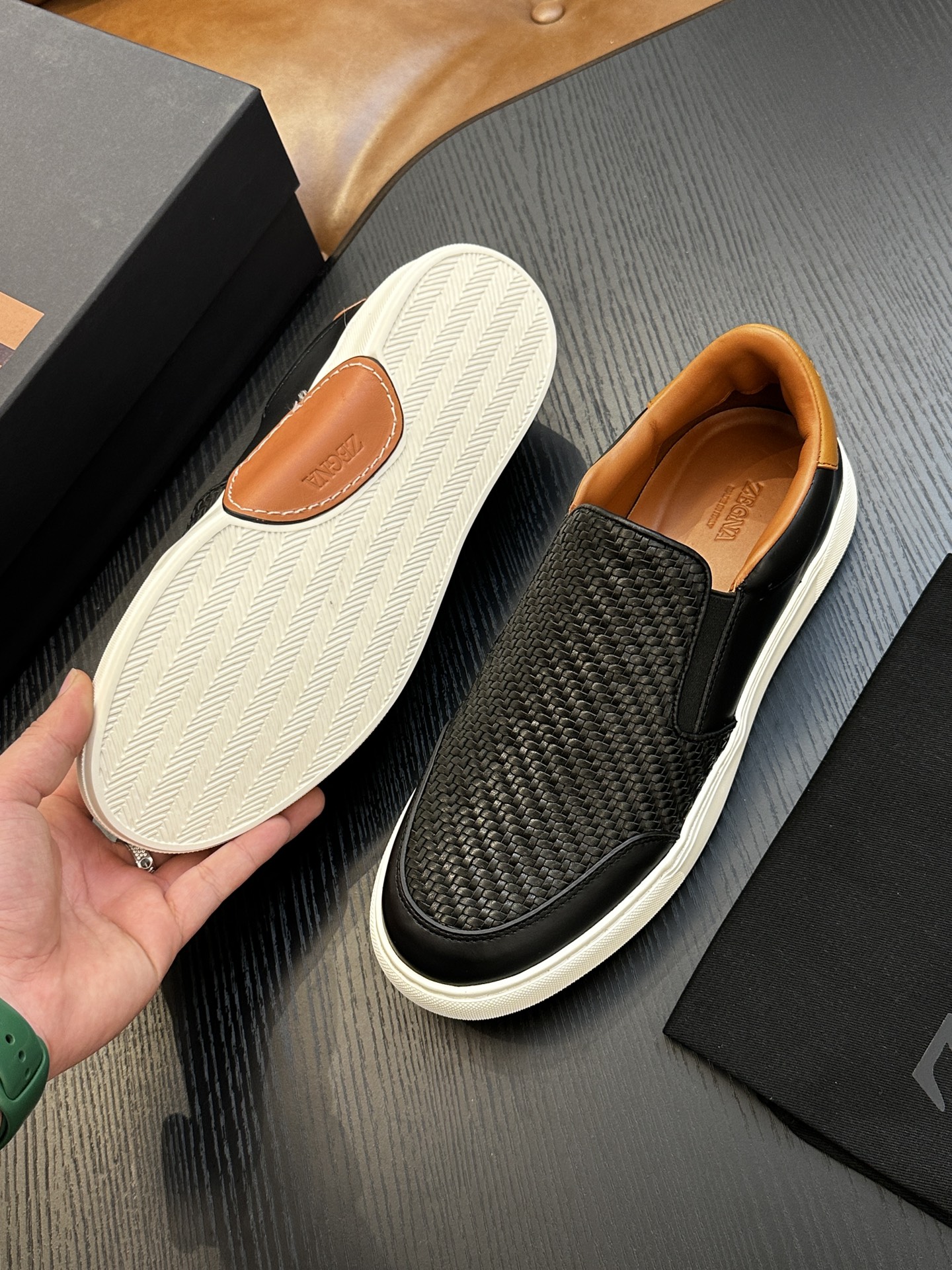 這款鞋子是AAAAA 1:1 質量(非常棒). 使用了和原版一模一樣的材料. 商標部分也保持了和Zegna一樣. 圖片拍攝是實物鞋子拍攝, 您所收到的實物保證和我們圖片一模一樣.