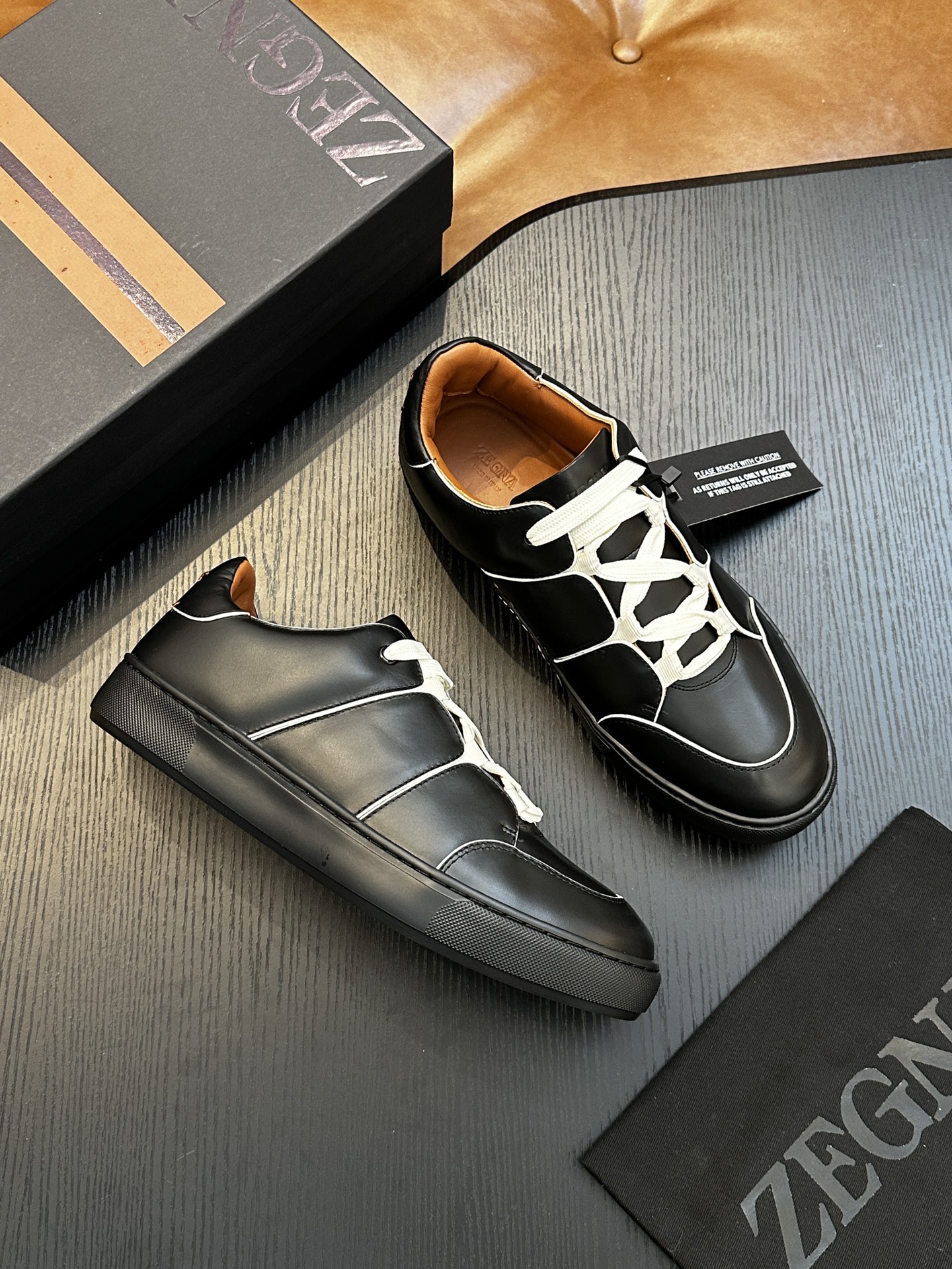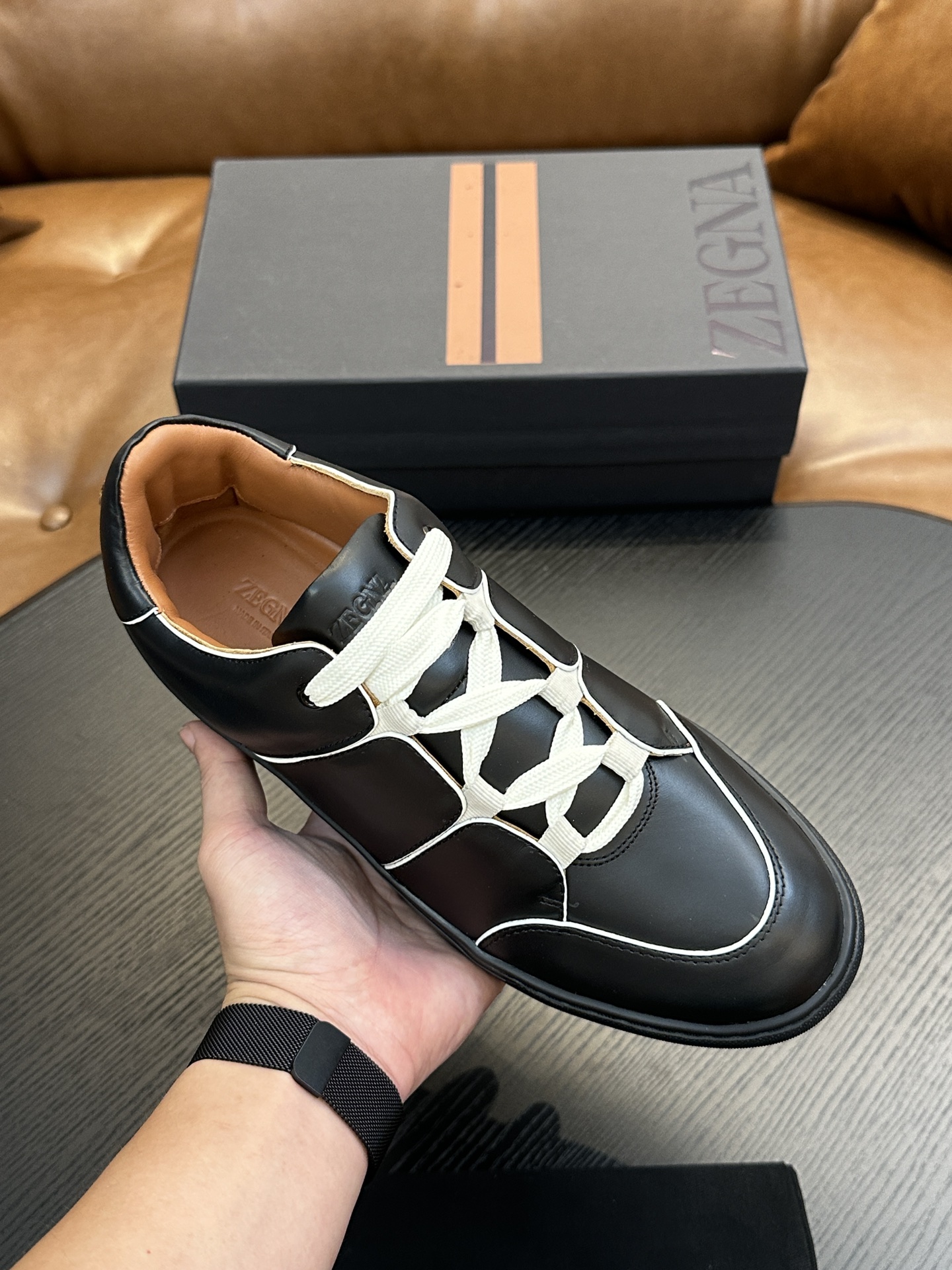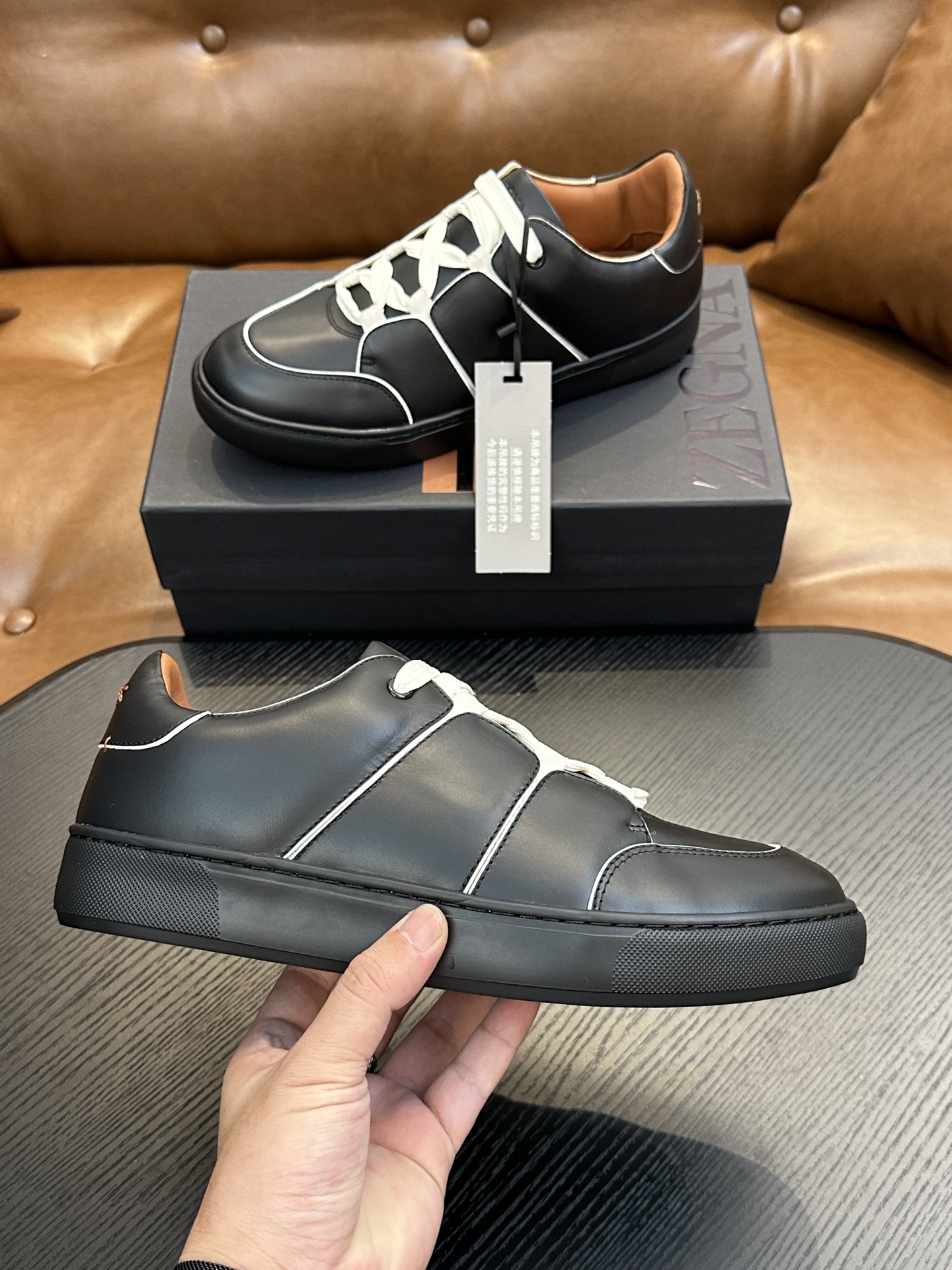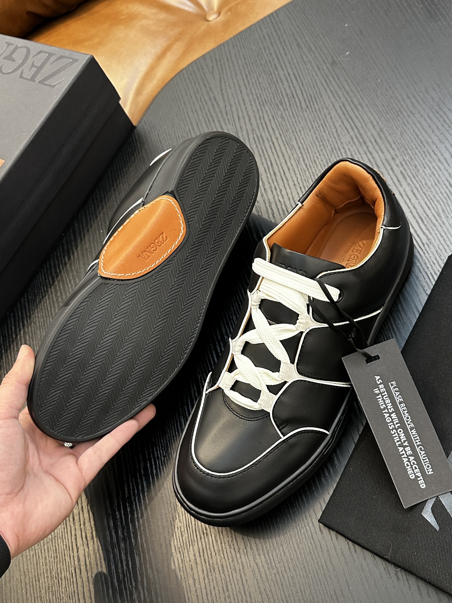 這款鞋子是AAAAA 1:1 質量(非常棒). 使用了和原版一模一樣的材料. 商標部分也保持了和Zegna一樣. 圖片拍攝是實物鞋子拍攝, 您所收到的實物保證和我們圖片一模一樣.