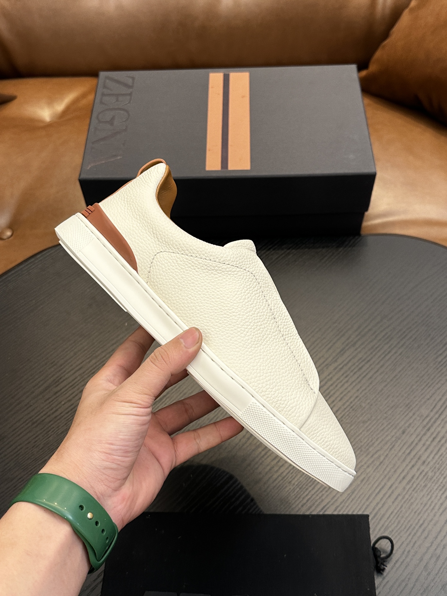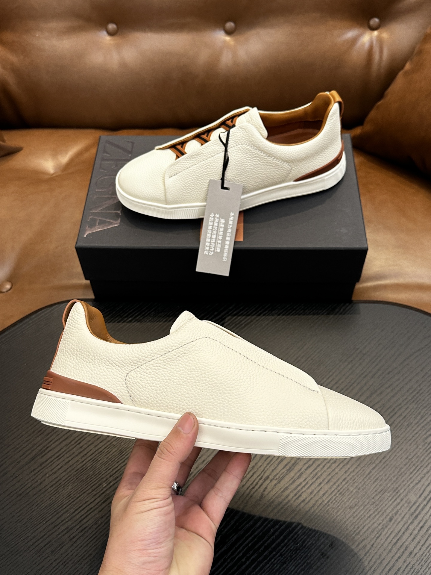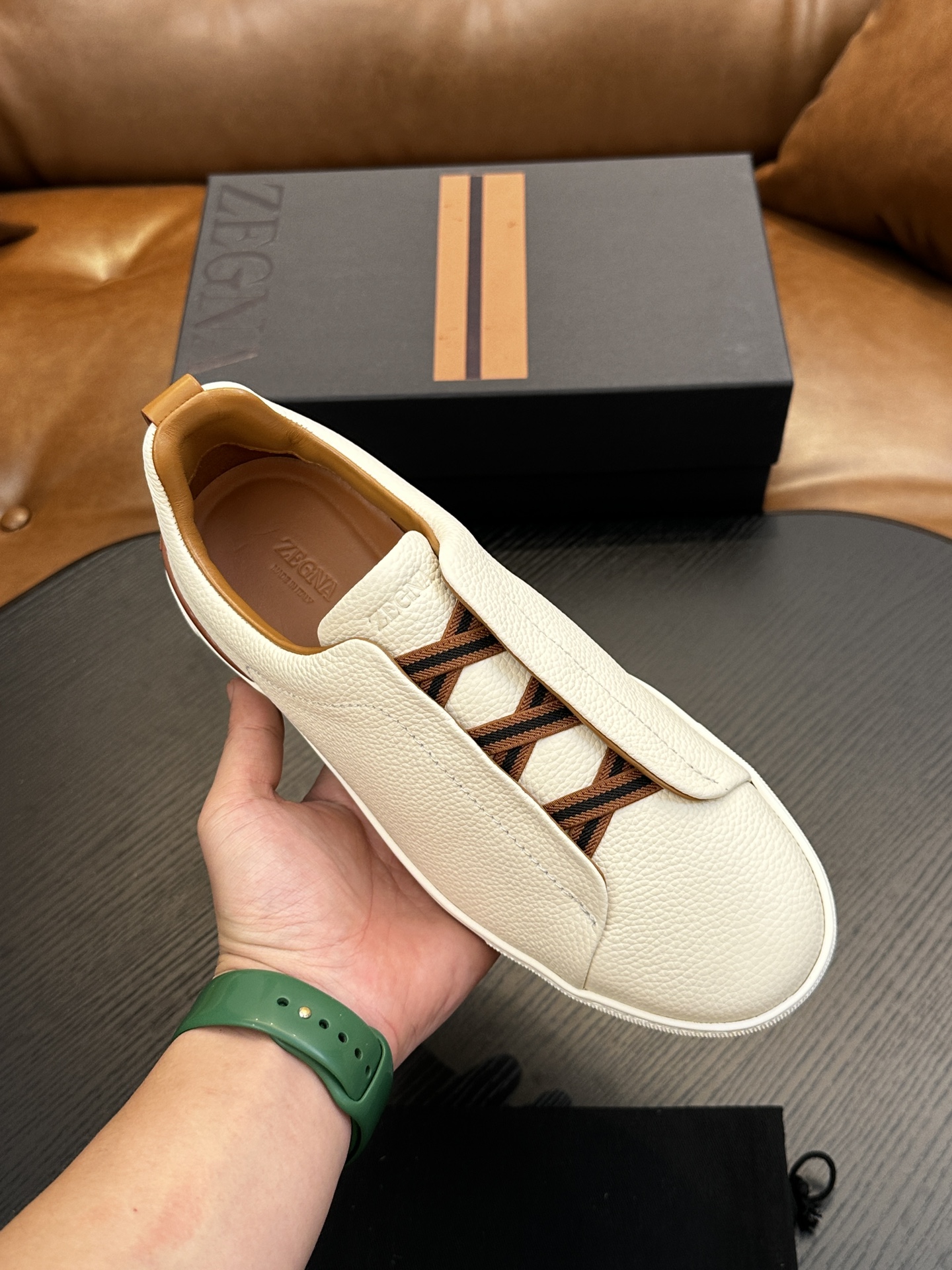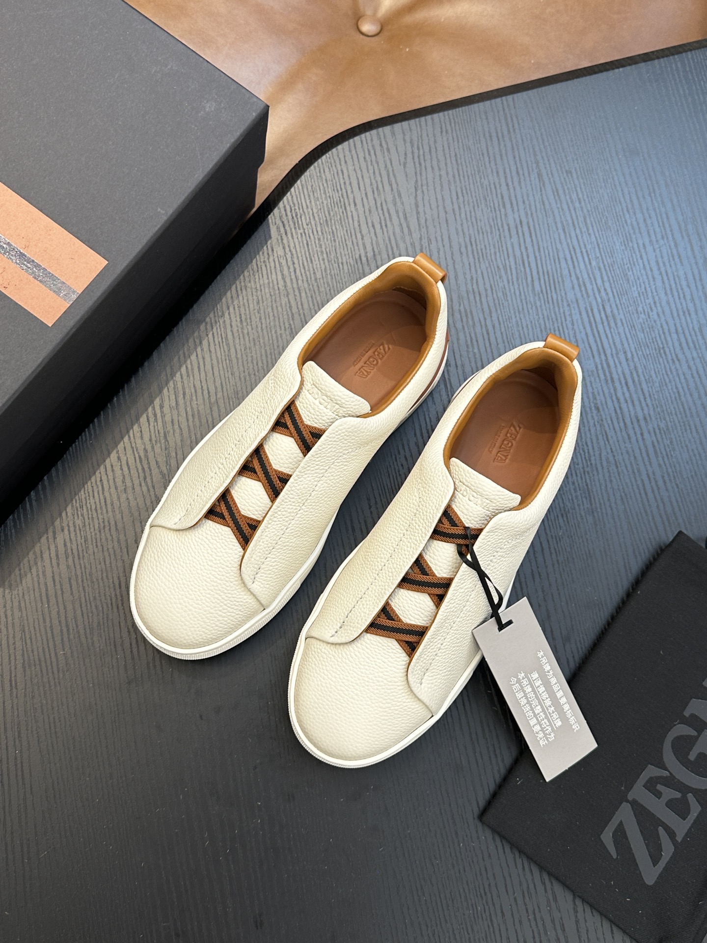 這款鞋子是AAAAA 1:1 質量(非常棒). 使用了和原版一模一樣的材料. 商標部分也保持了和Zegna一樣. 圖片拍攝是實物鞋子拍攝, 您所收到的實物保證和我們圖片一模一樣.
