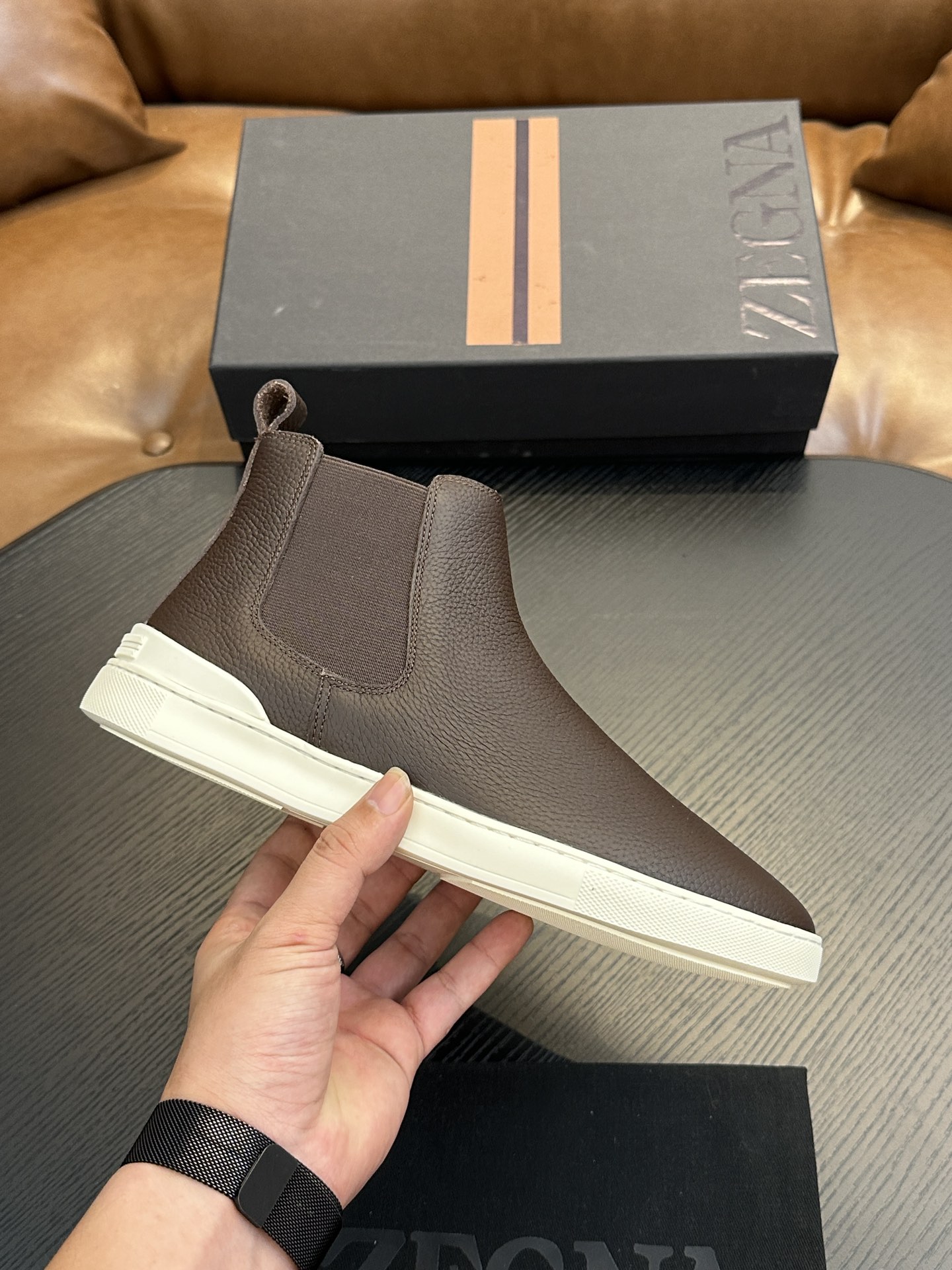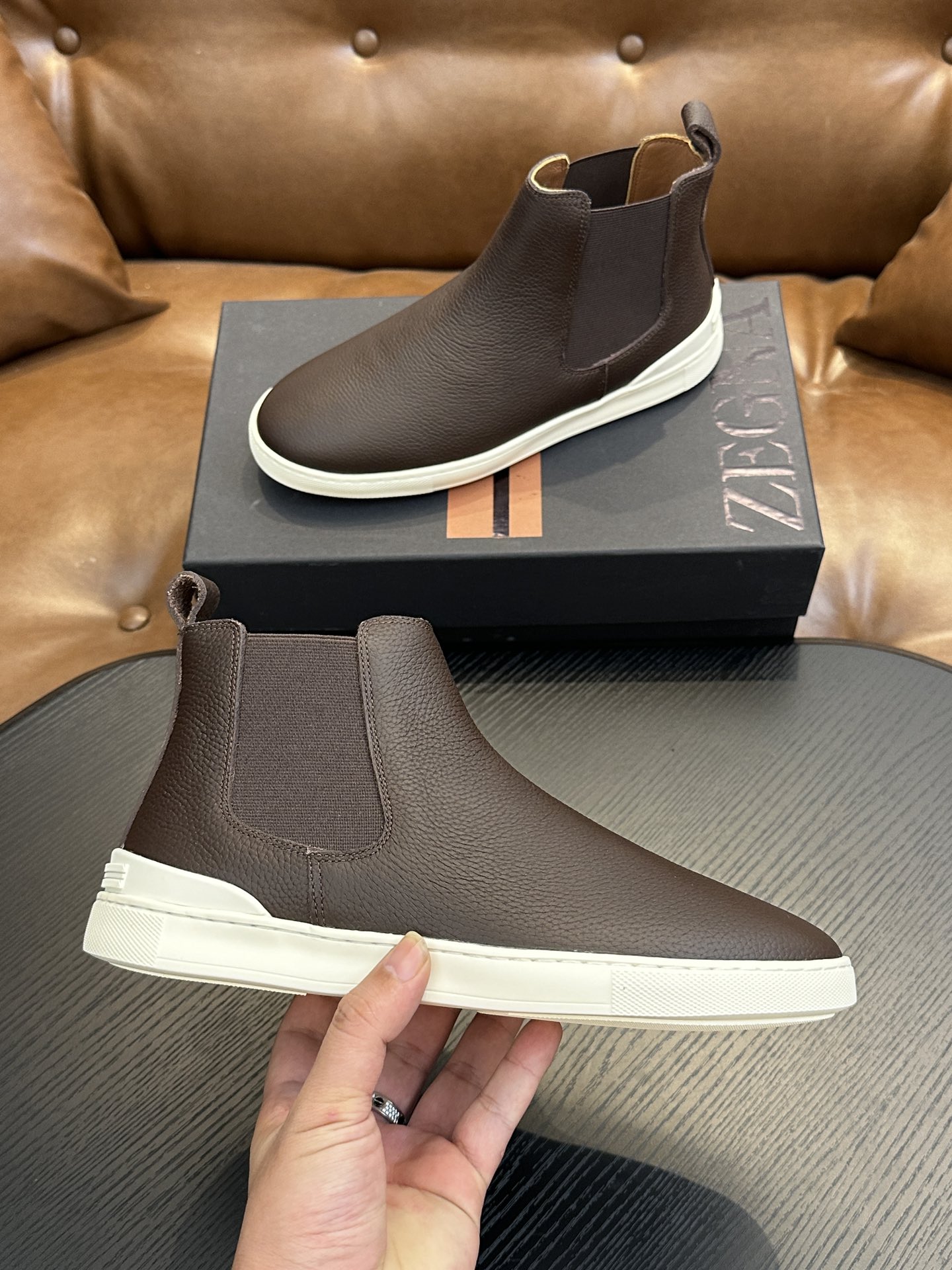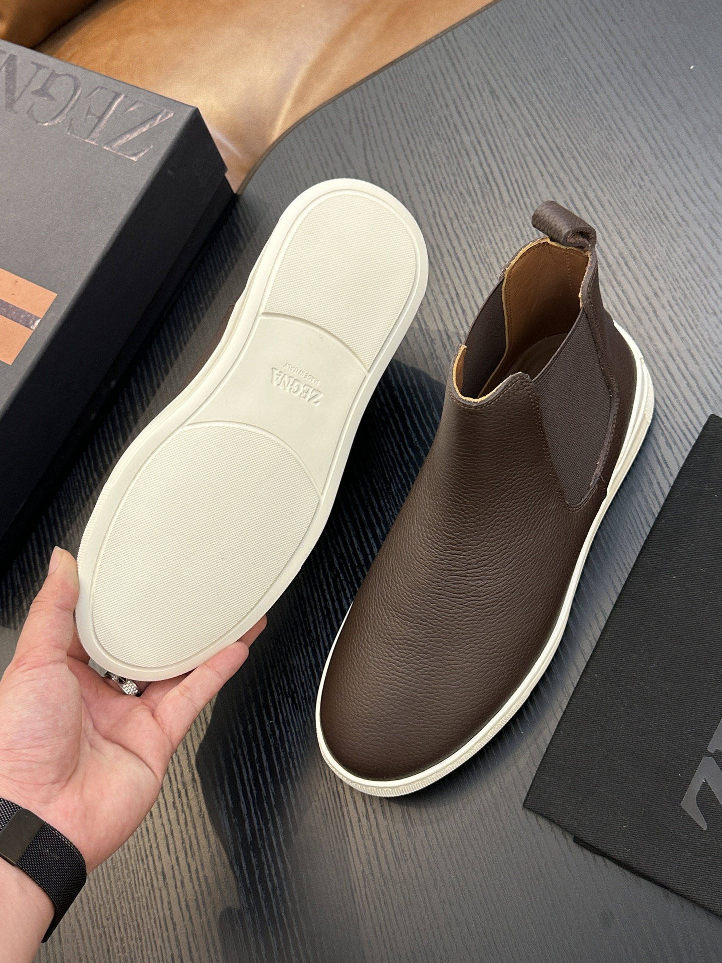 這款鞋子是AAAAA 1:1 質量(非常棒). 使用了和原版一模一樣的材料. 商標部分也保持了和Zegna一樣. 圖片拍攝是實物鞋子拍攝, 您所收到的實物保證和我們圖片一模一樣.