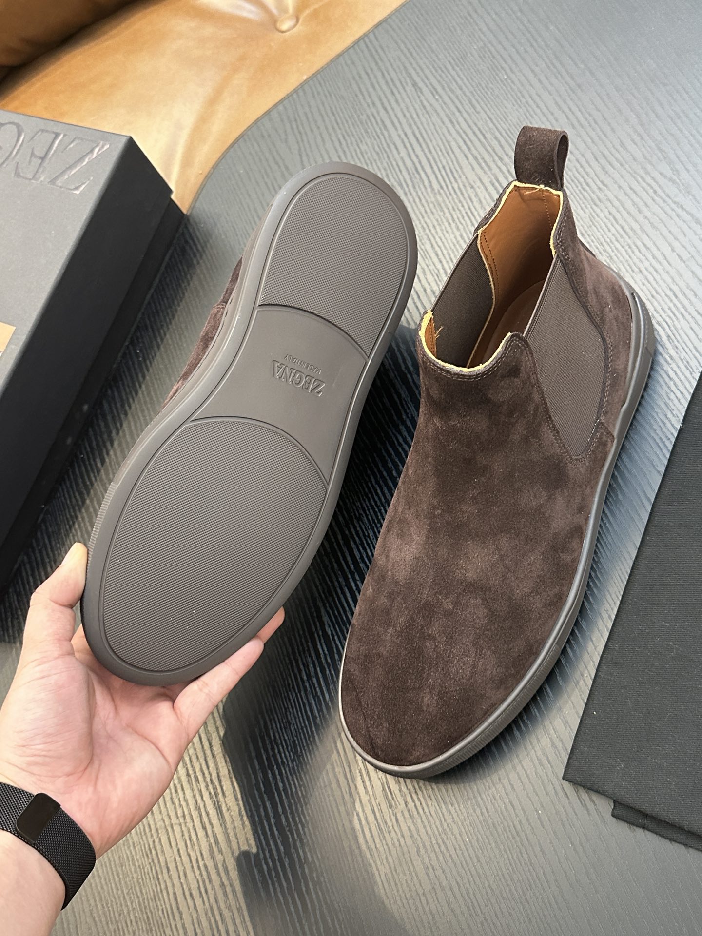 這款鞋子是AAAAA 1:1 質量(非常棒). 使用了和原版一模一樣的材料. 商標部分也保持了和Zegna一樣. 圖片拍攝是實物鞋子拍攝, 您所收到的實物保證和我們圖片一模一樣.