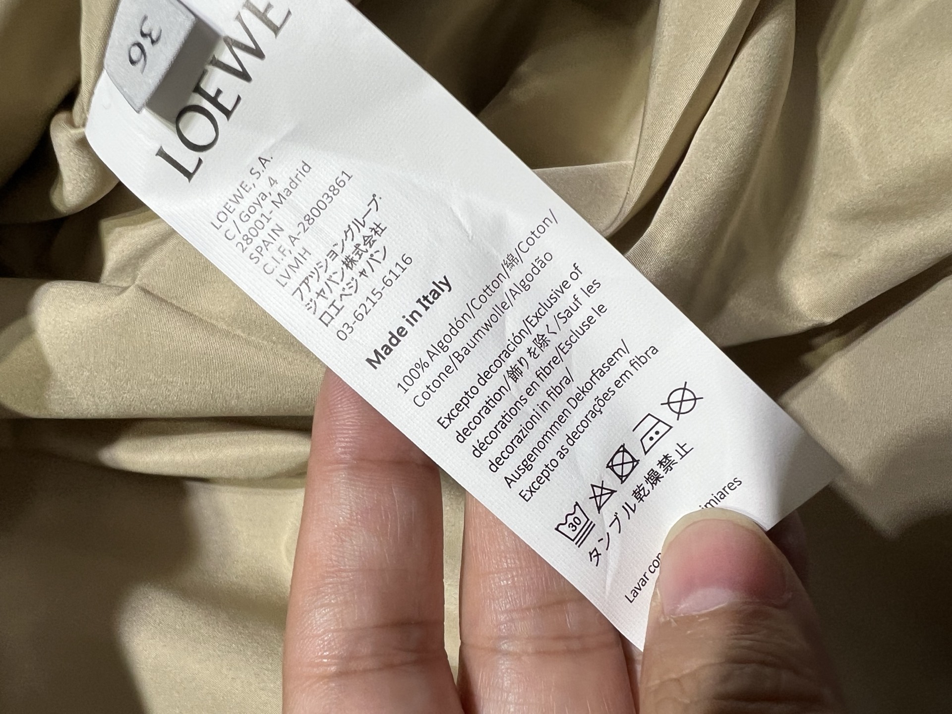 這款衣服是AAAAA 1:1 質量(非常棒). 使用了和原版一模一樣的材料. 商標部分也保持了和Loewe一樣. 圖片拍攝是實物衣服拍攝, 您所收到的實物保證和我們圖片一模一樣.