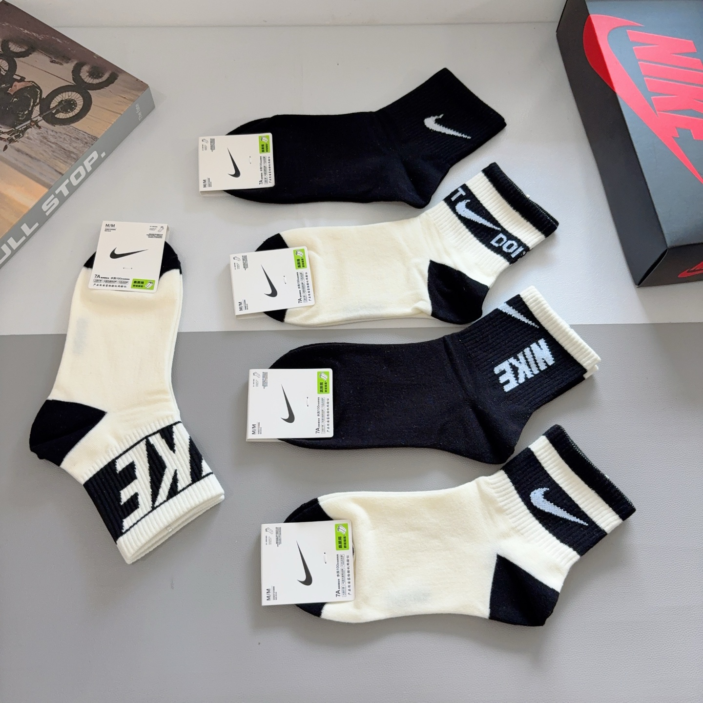 這款sock是AAAAA 1:1 質量(非常棒). 使用了和原版一模一樣的材料. 商標部分也保持了和Nike一樣. 圖片拍攝是實物sock拍攝, 您所收到的實物保證和我們圖片一模一樣.