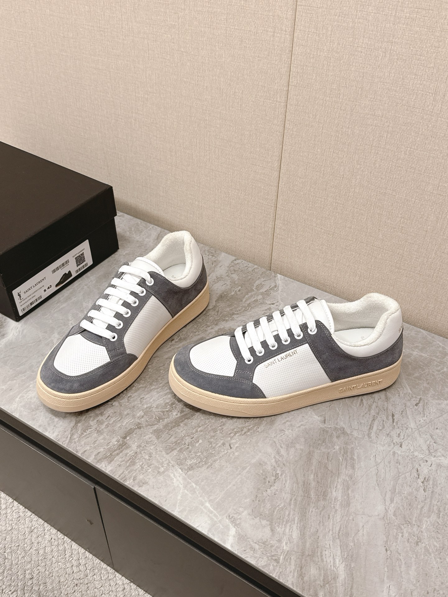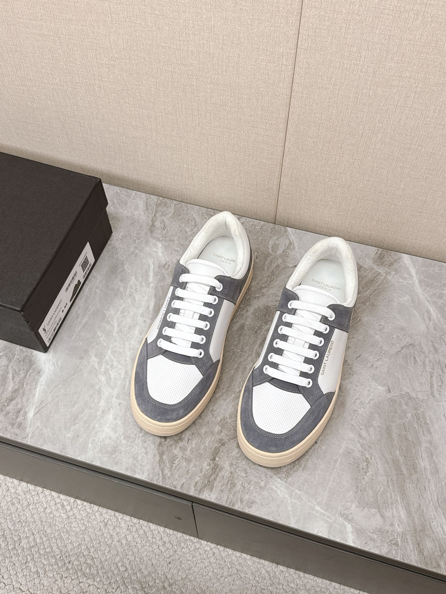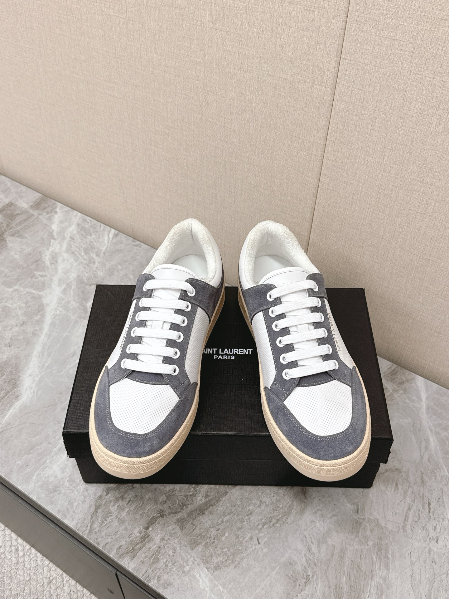 這款鞋子是AAAAA 1:1 質量(非常棒). 使用了和原版一模一樣的材料. 商標部分也保持了和聖羅蘭/Saint Laurent一樣. 圖片拍攝是實物鞋子拍攝, 您所收到的實物保證和我們圖片一模一樣.