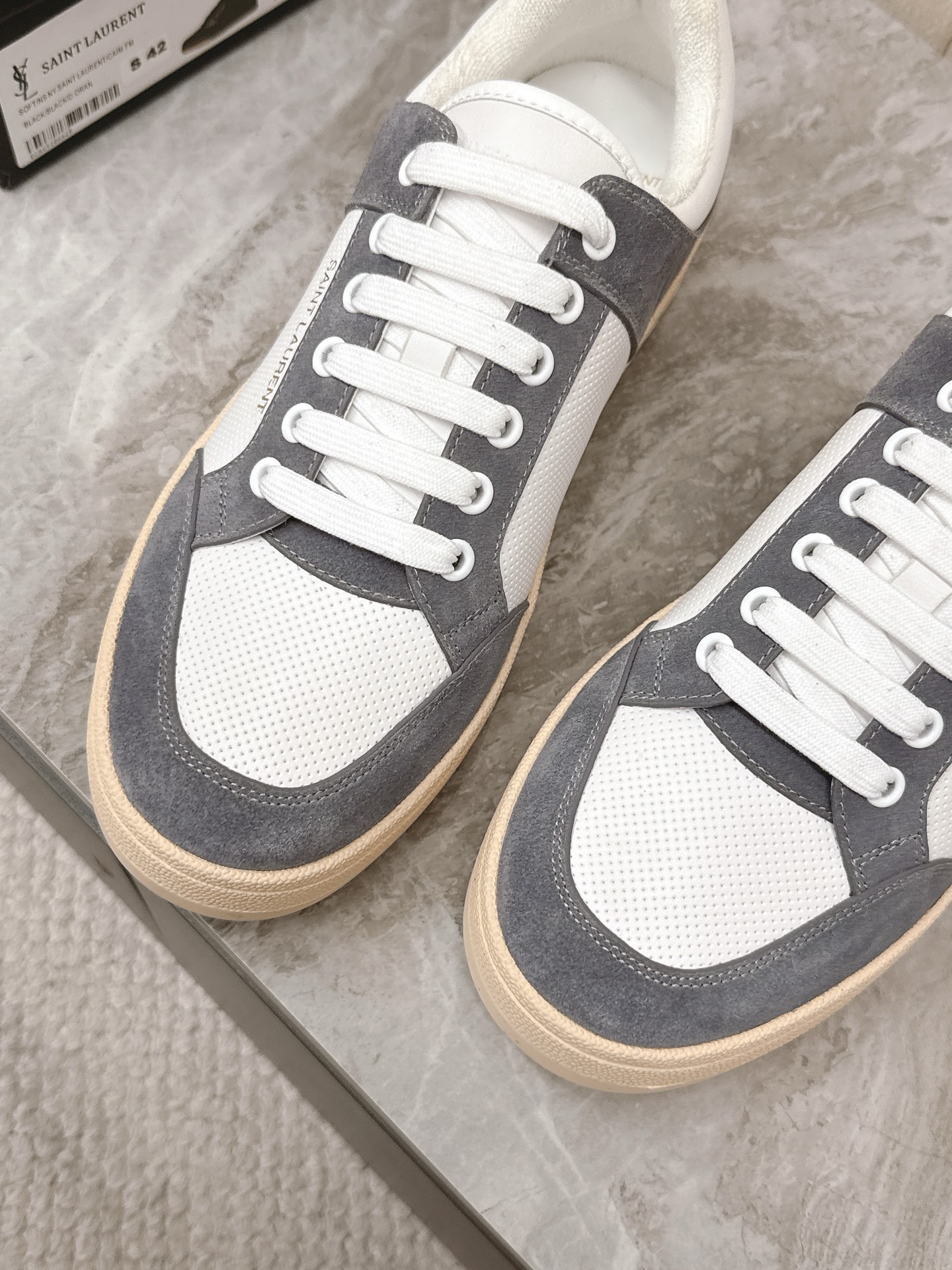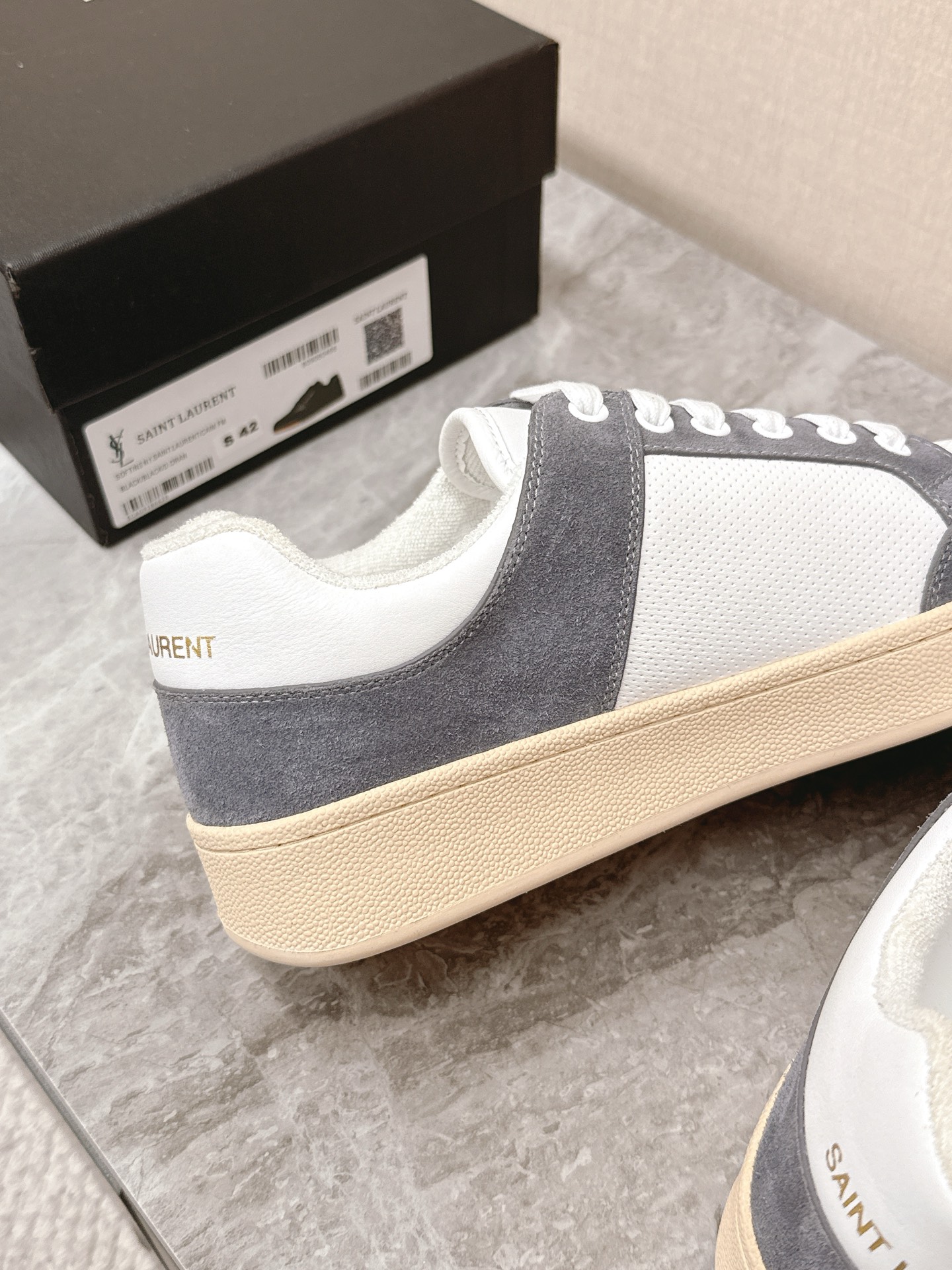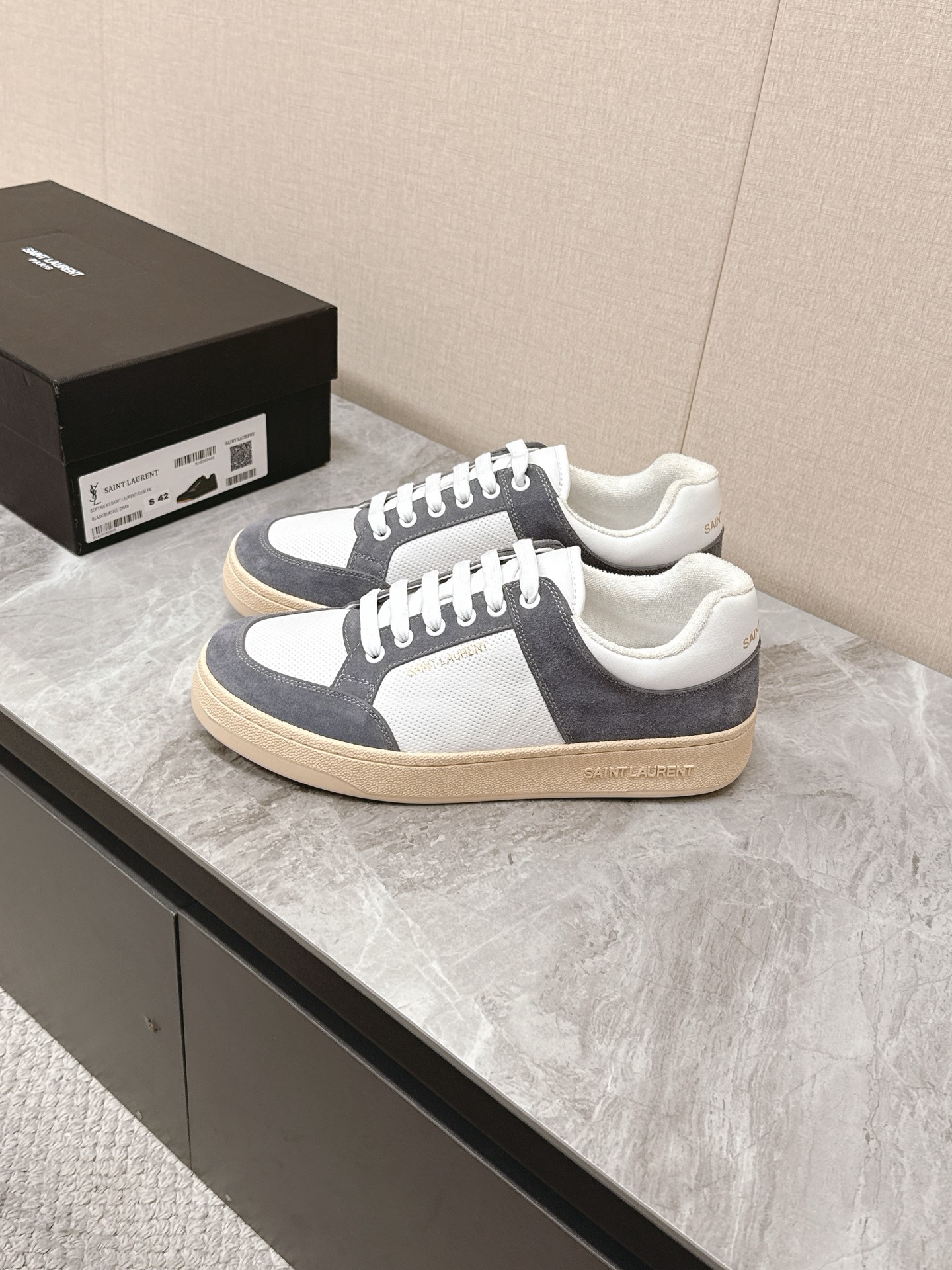 這款鞋子是AAAAA 1:1 質量(非常棒). 使用了和原版一模一樣的材料. 商標部分也保持了和聖羅蘭/Saint Laurent一樣. 圖片拍攝是實物鞋子拍攝, 您所收到的實物保證和我們圖片一模一樣.