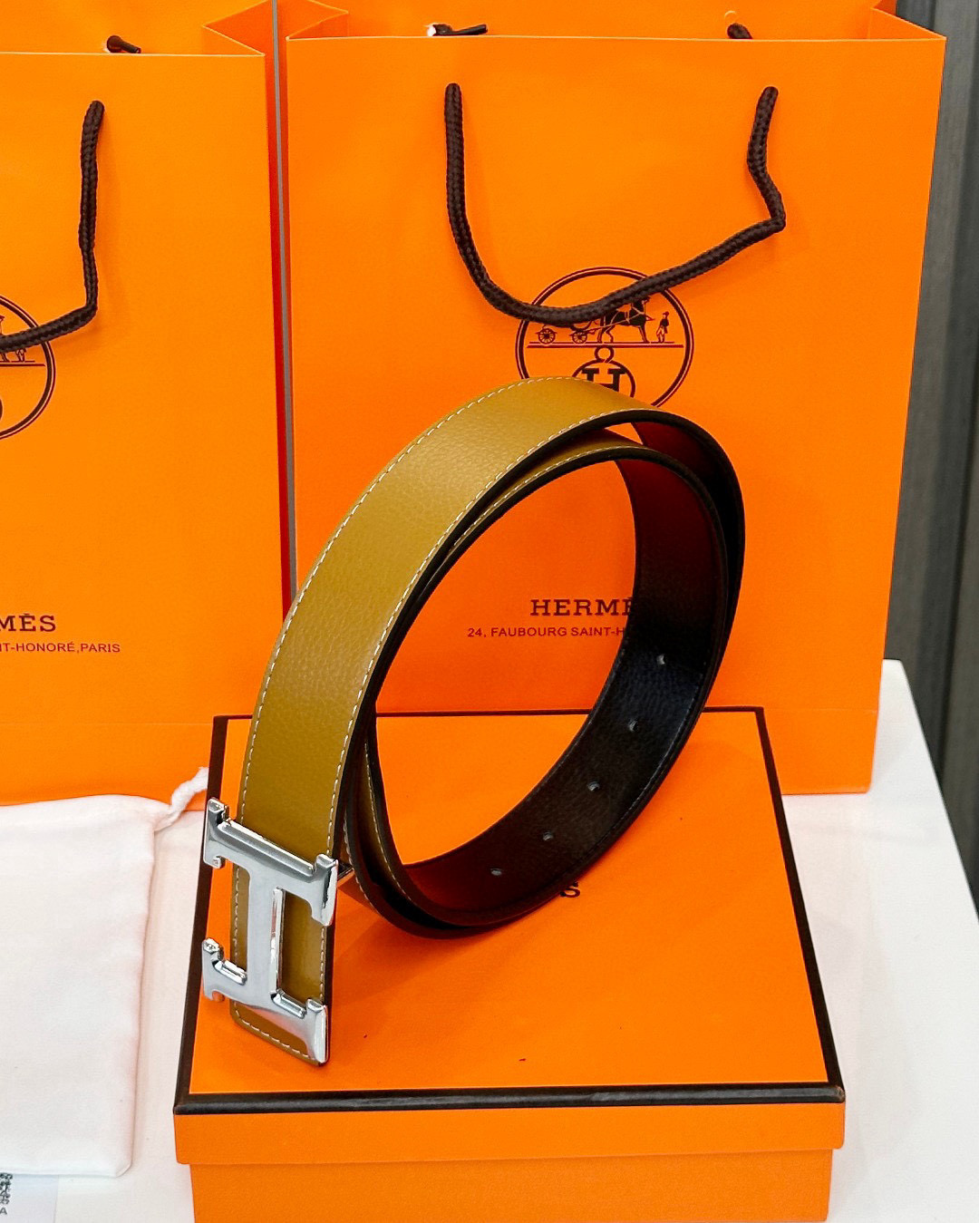 這款皮帶是AAAAA 1:1 質量(非常棒). 使用了和原版一模一樣的材料. 商標部分也保持了和愛馬仕/Hermes一樣. 圖片拍攝是實物皮帶拍攝, 您所收到的實物保證和我們圖片一模一樣.