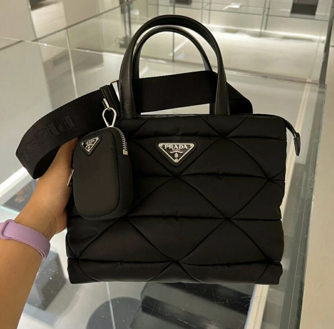 這款包包是AAAAA 1:1 質量(非常棒). 使用了和原版一模一樣的材料. 商標部分也保持了和普拉達/Prada一樣. 圖片拍攝是實物包包拍攝, 您所收到的實物保證和我們圖片一模一樣.