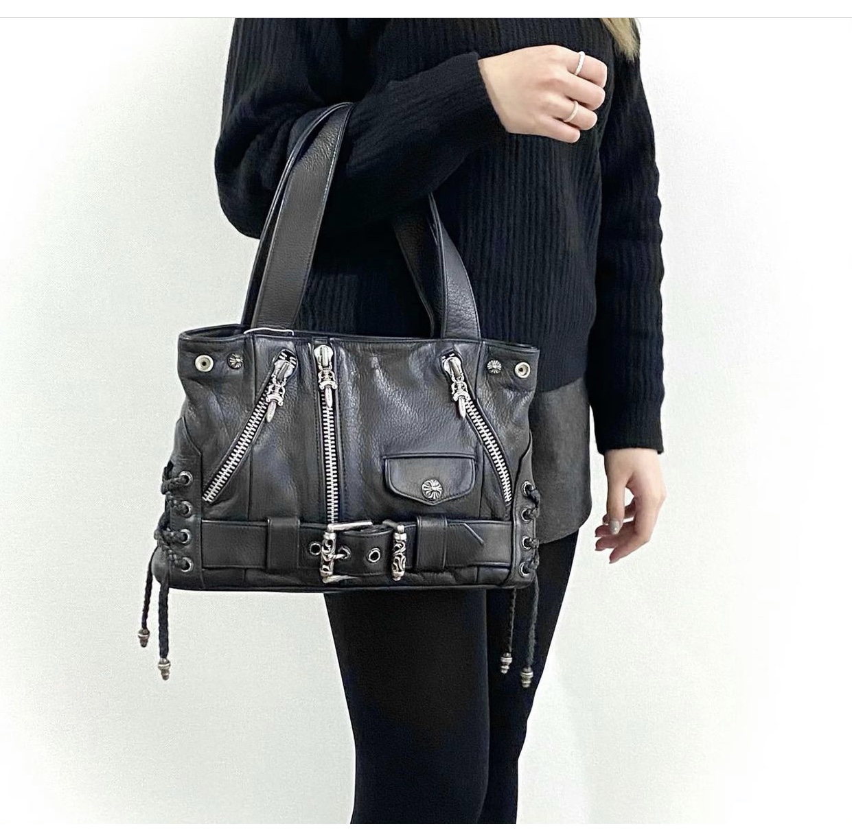 這款包包是AAAAA 1:1 質量(非常棒). 使用了和原版一模一樣的材料. 商標部分也保持了和鉻心/Chrome Hearts一樣. 圖片拍攝是實物包包拍攝, 您所收到的實物保證和我們圖片一模一樣.