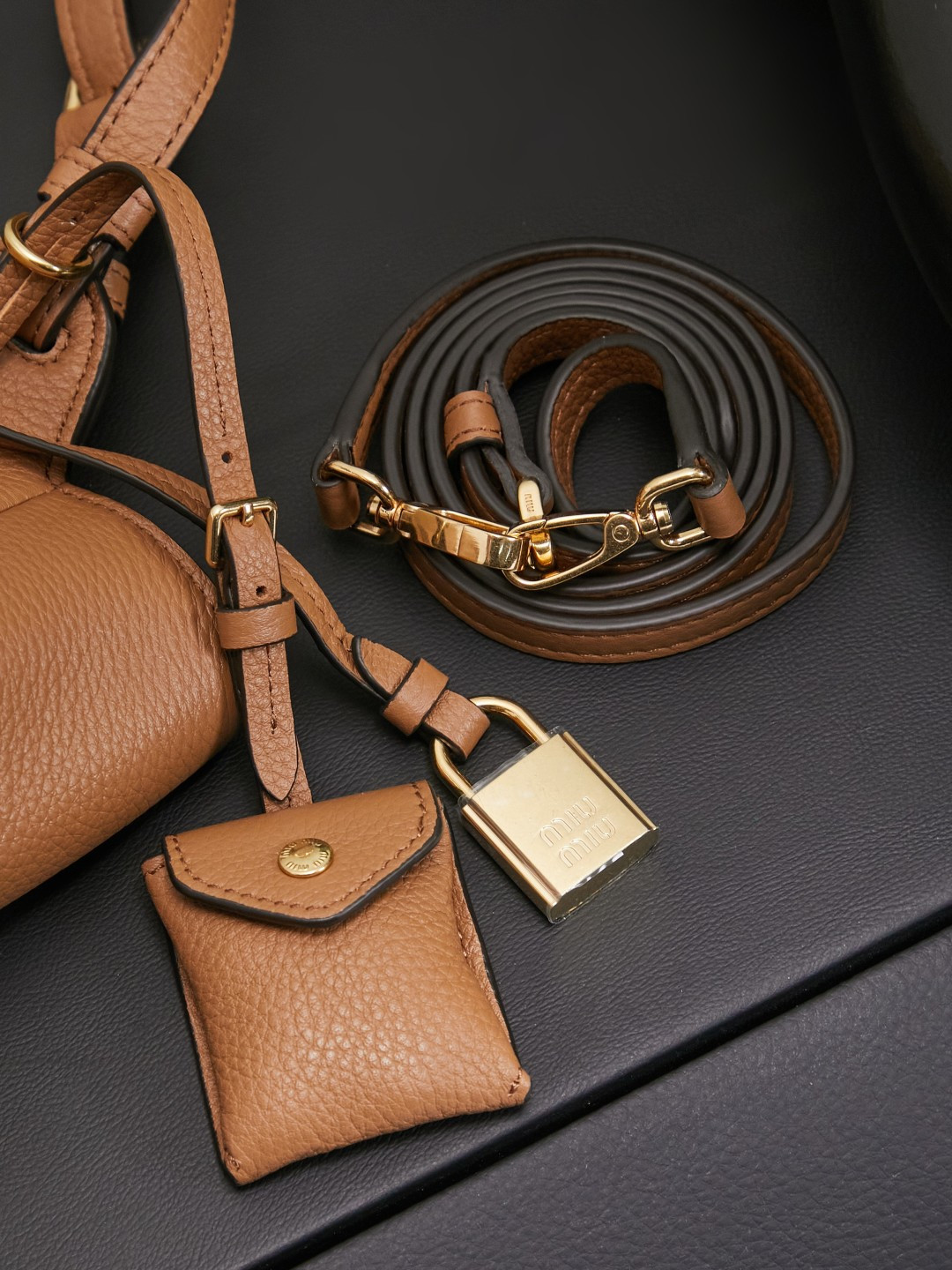這款包包是AAAAA 1:1 質量(非常棒). 使用了和原版一模一樣的材料. 商標部分也保持了和繆繆/Miu Miu一樣. 圖片拍攝是實物包包拍攝, 您所收到的實物保證和我們圖片一模一樣.