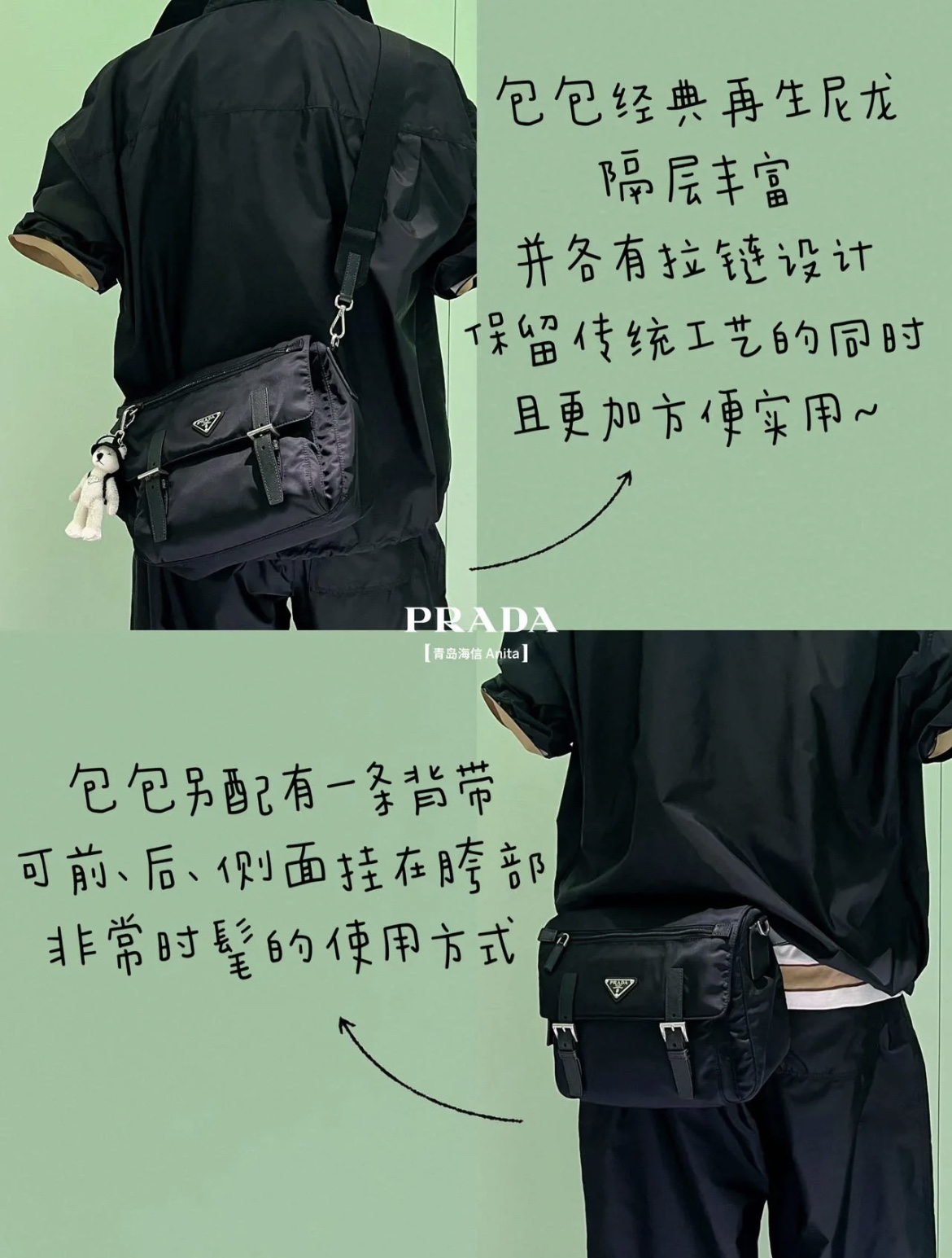 這款包包是AAAAA 1:1 質量(非常棒). 使用了和原版一模一樣的材料. 商標部分也保持了和普拉達/Prada一樣. 圖片拍攝是實物包包拍攝, 您所收到的實物保證和我們圖片一模一樣.