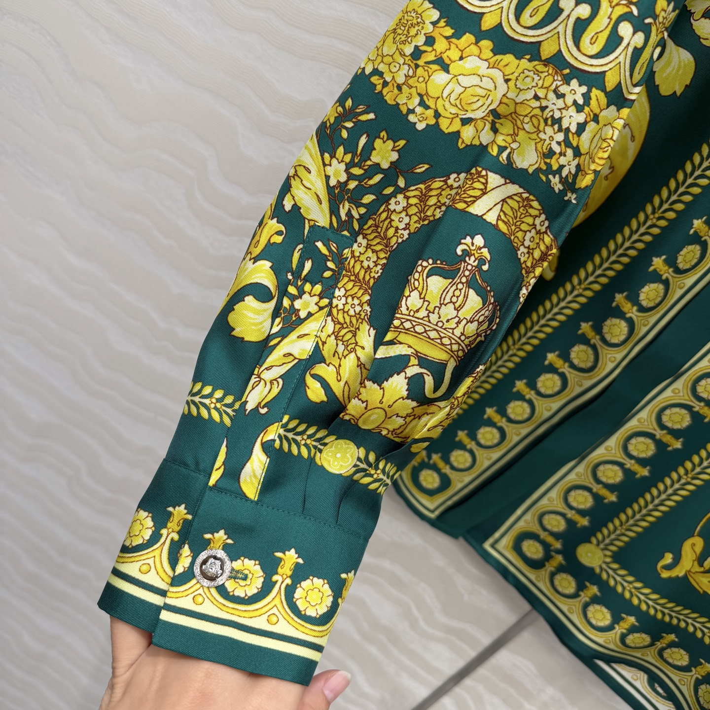 這款衣服是AAAAA 1:1 質量(非常棒). 使用了和原版一模一樣的材料. 商標部分也保持了和范思哲/Versace一樣. 圖片拍攝是實物衣服拍攝, 您所收到的實物保證和我們圖片一模一樣.