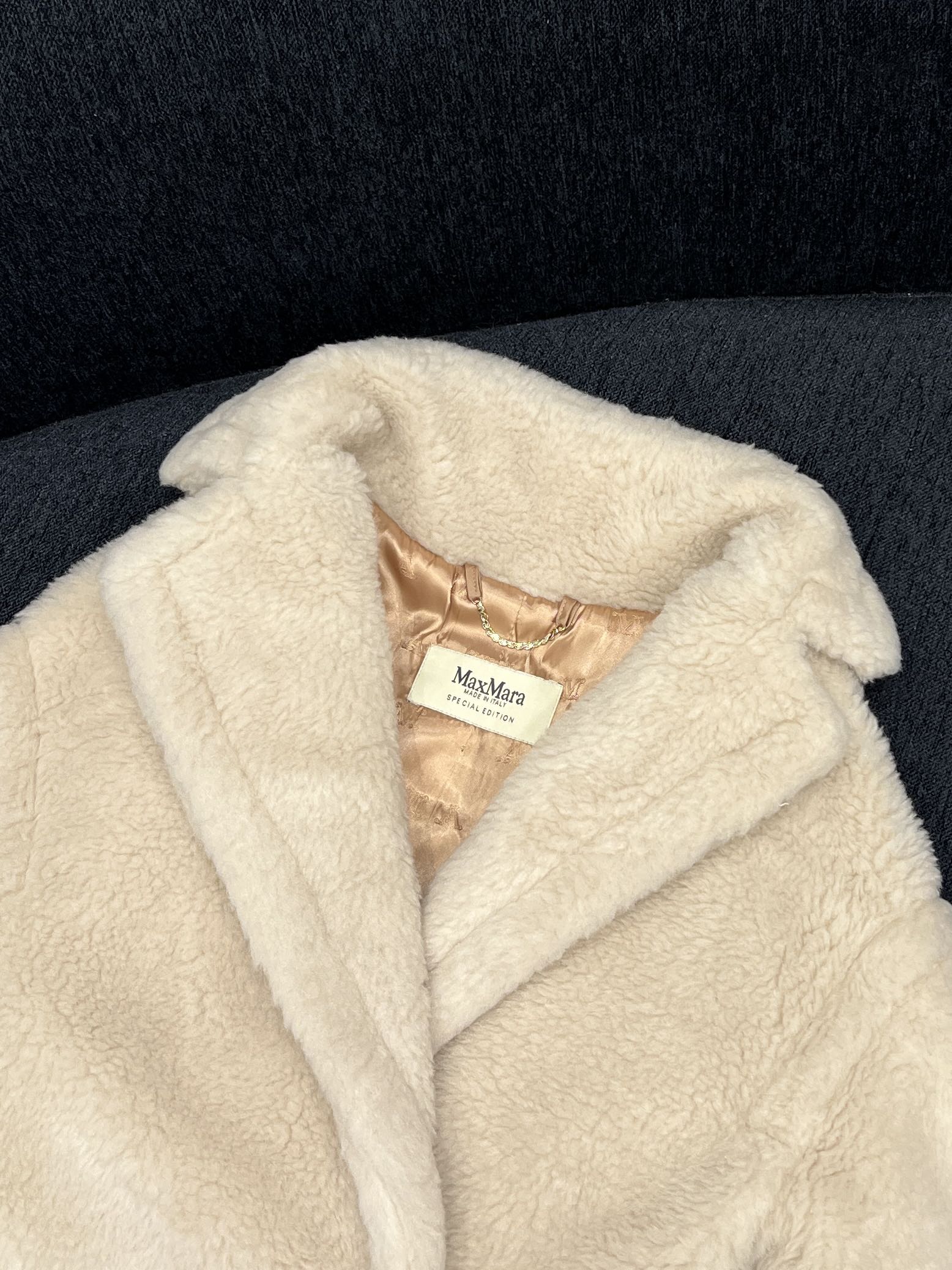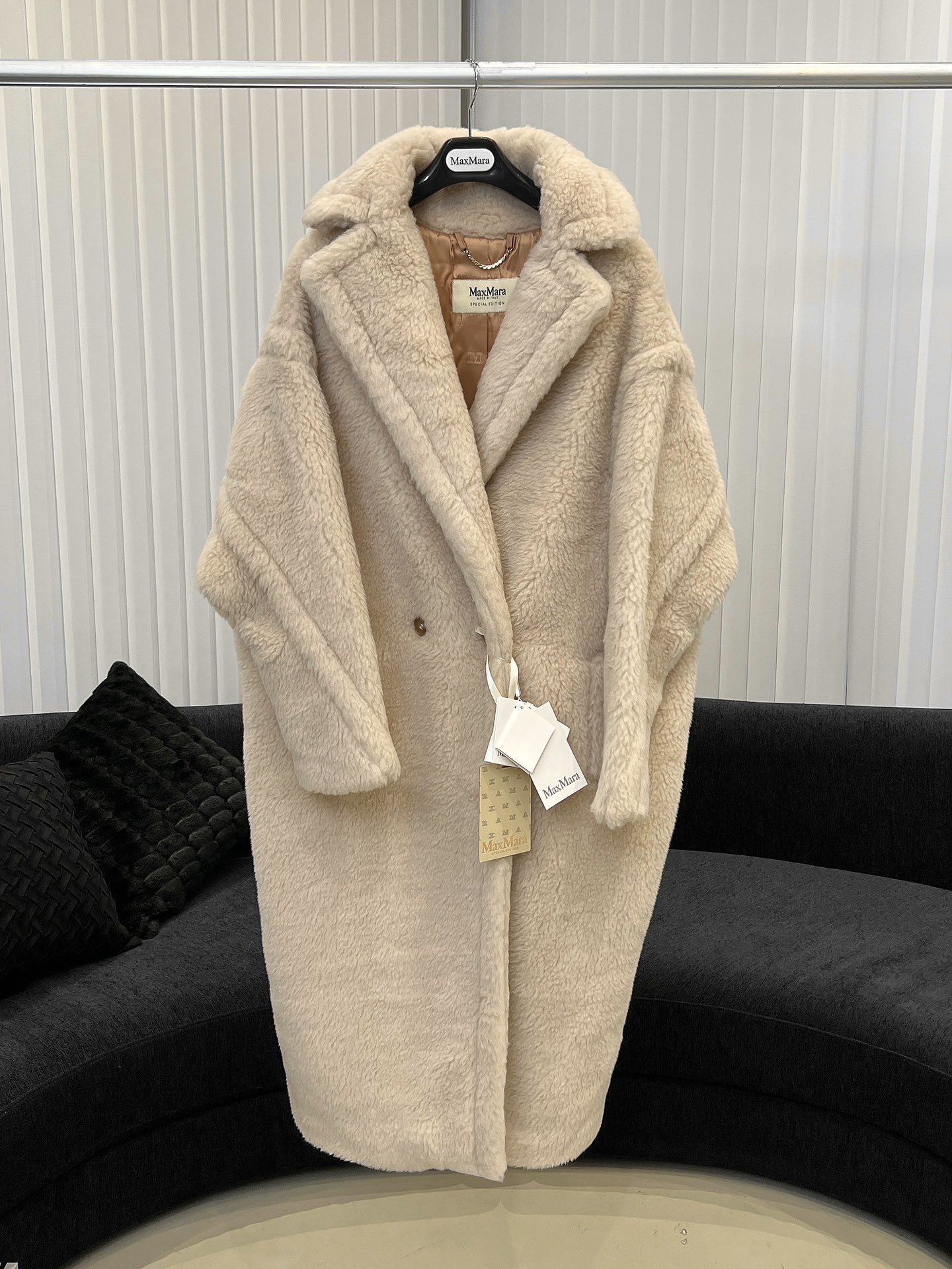 這款衣服是AAAAA 1:1 質量(非常棒). 使用了和原版一模一樣的材料. 商標部分也保持了和Max Mara一樣. 圖片拍攝是實物衣服拍攝, 您所收到的實物保證和我們圖片一模一樣.