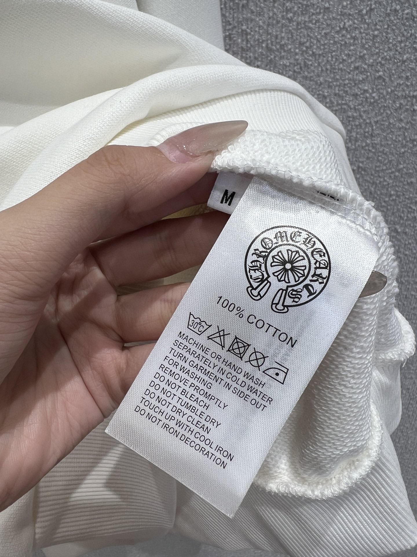 這款衣服是AAAAA 1:1 質量(非常棒). 使用了和原版一模一樣的材料. 商標部分也保持了和鉻心/Chrome Hearts一樣. 圖片拍攝是實物衣服拍攝, 您所收到的實物保證和我們圖片一模一樣.