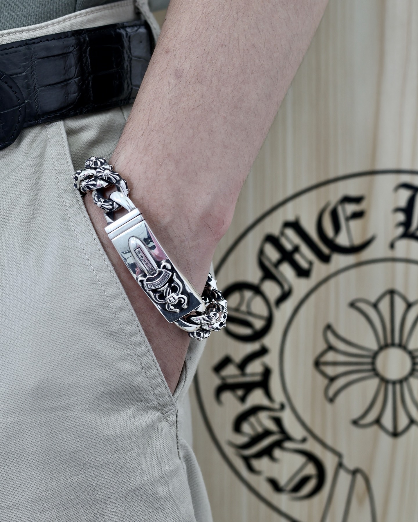 這款包包是AAAAA 1:1 質量(非常棒). 使用了和原版一模一樣的材料. 商標部分也保持了和鉻心/Chrome Hearts一樣. 圖片拍攝是實物包包拍攝, 您所收到的實物保證和我們圖片一模一樣.