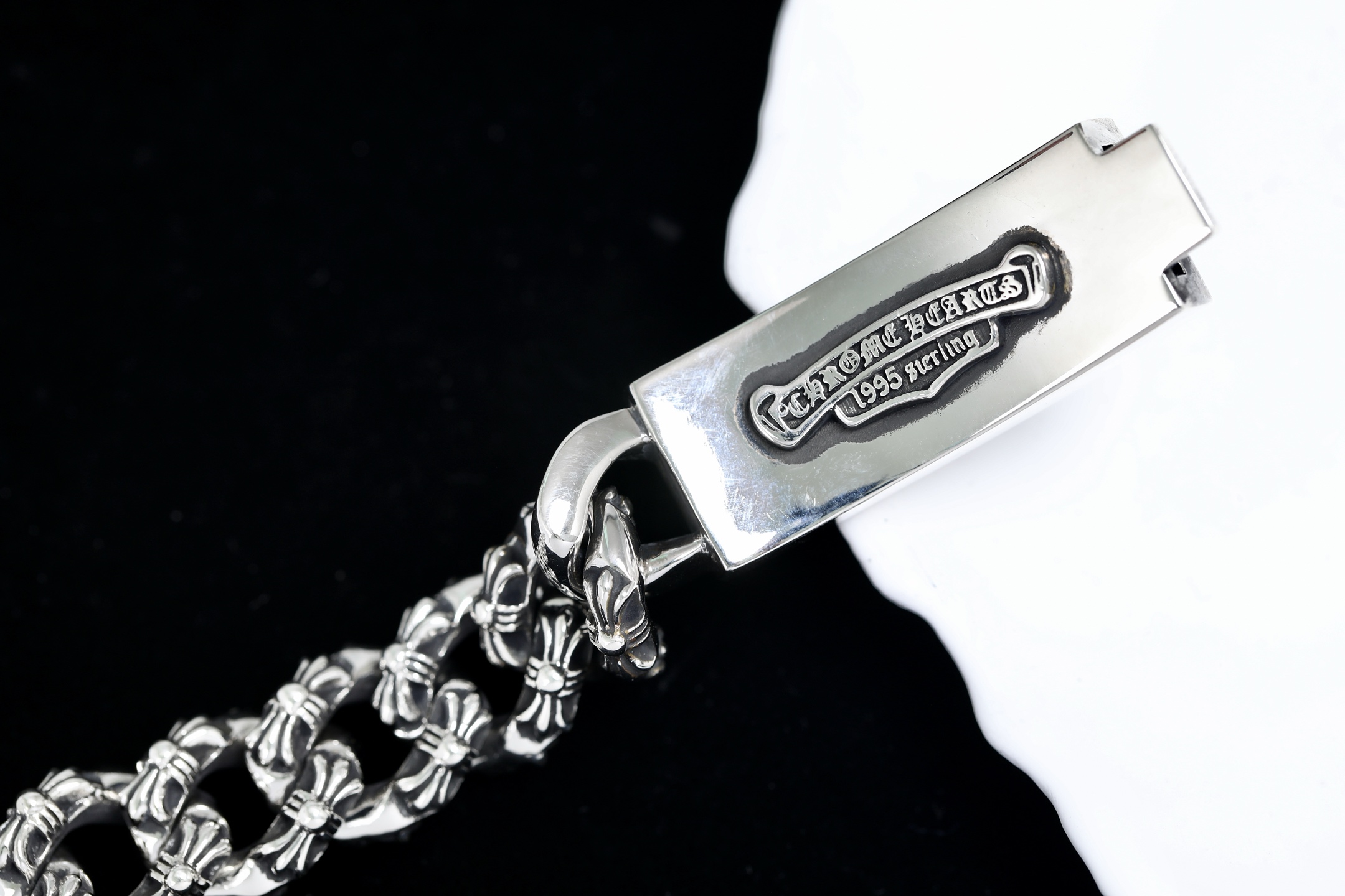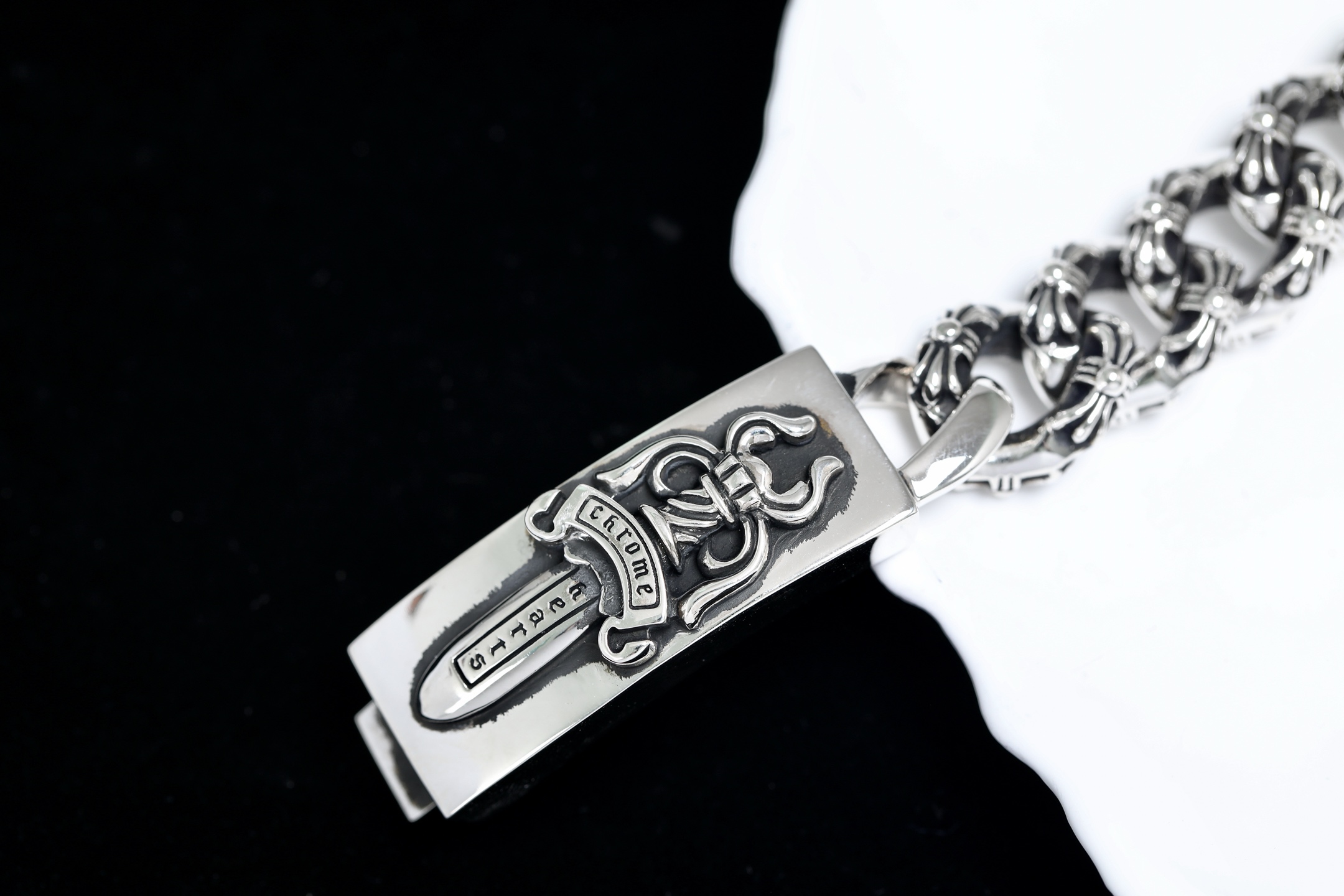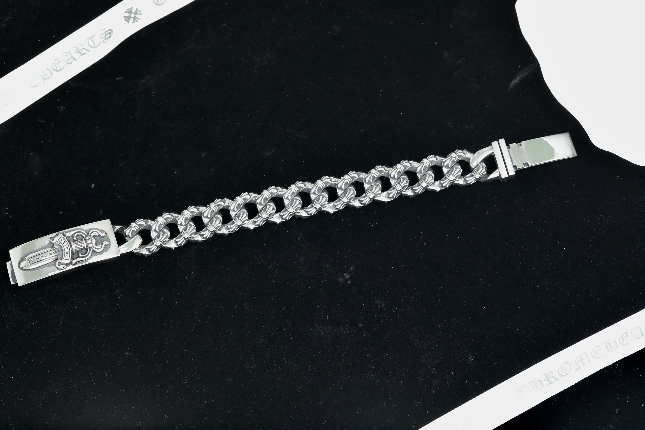這款包包是AAAAA 1:1 質量(非常棒). 使用了和原版一模一樣的材料. 商標部分也保持了和鉻心/Chrome Hearts一樣. 圖片拍攝是實物包包拍攝, 您所收到的實物保證和我們圖片一模一樣.