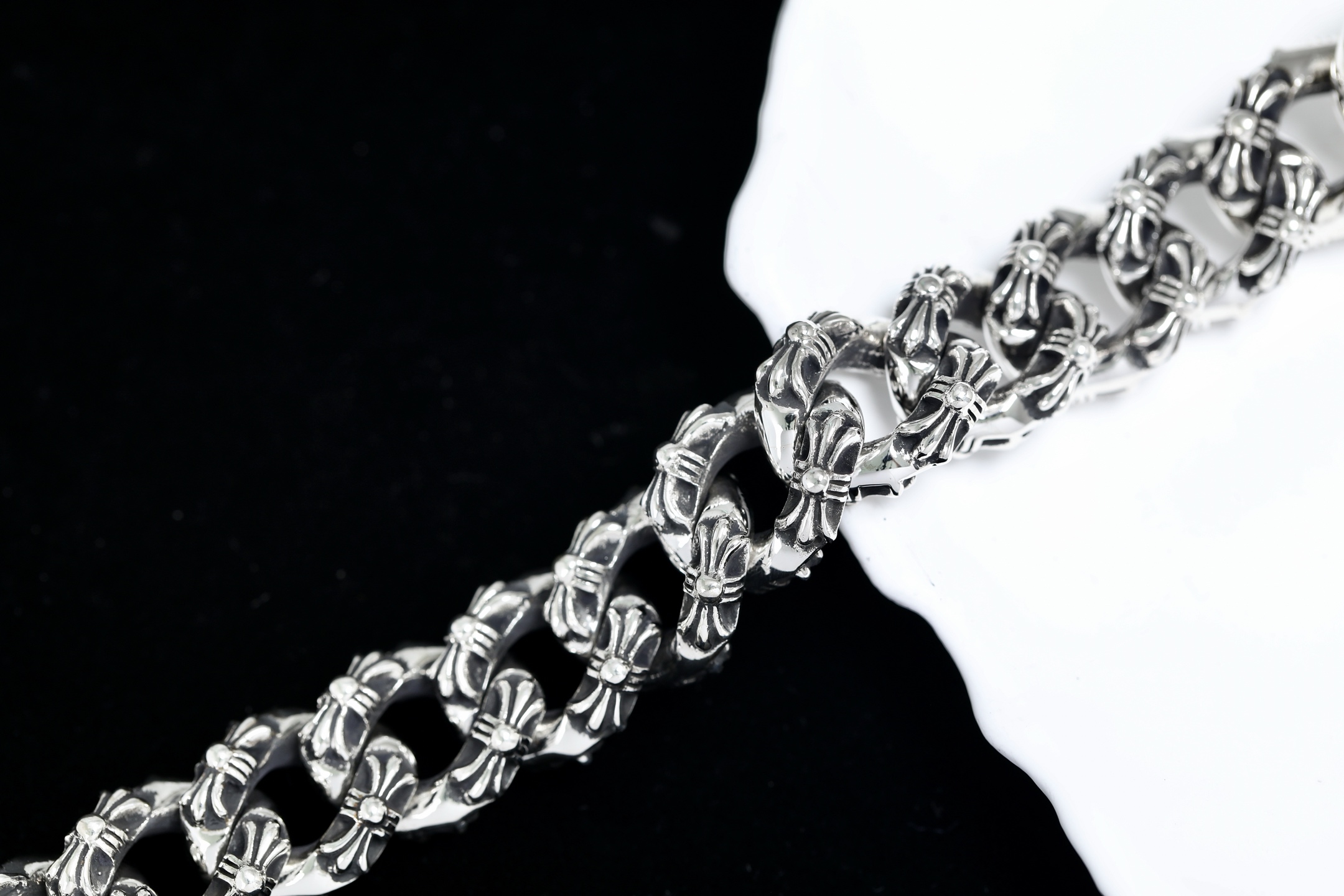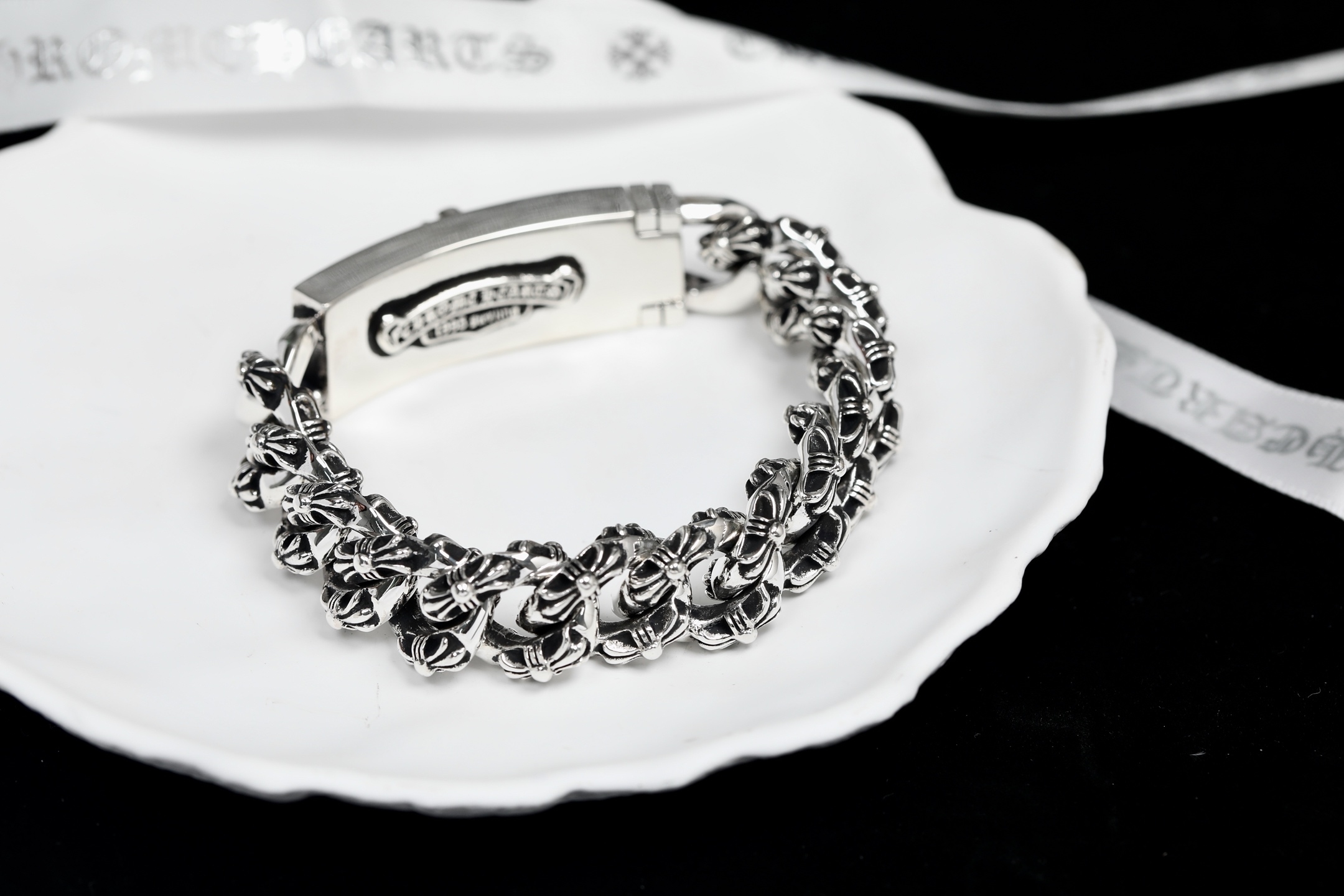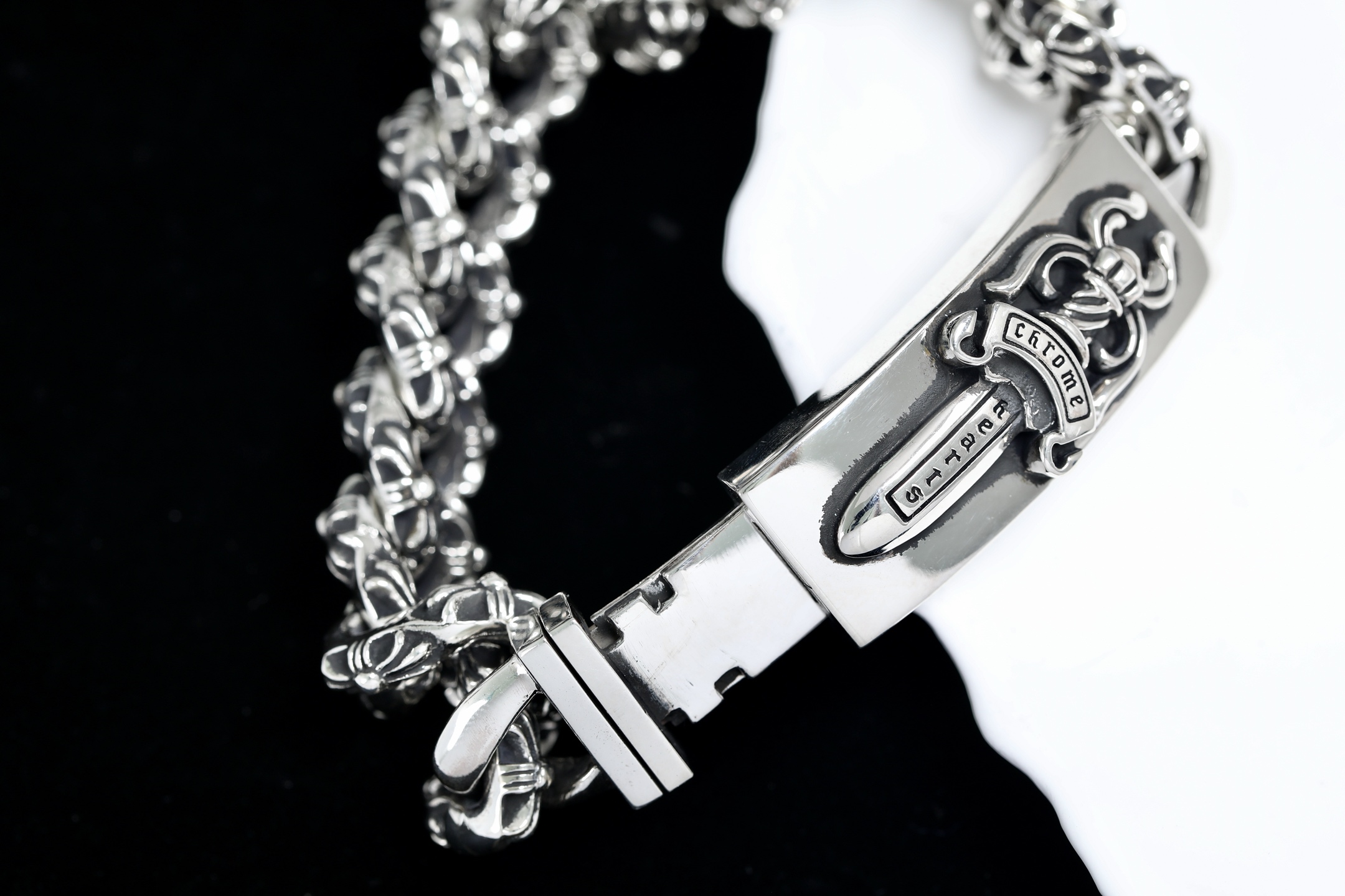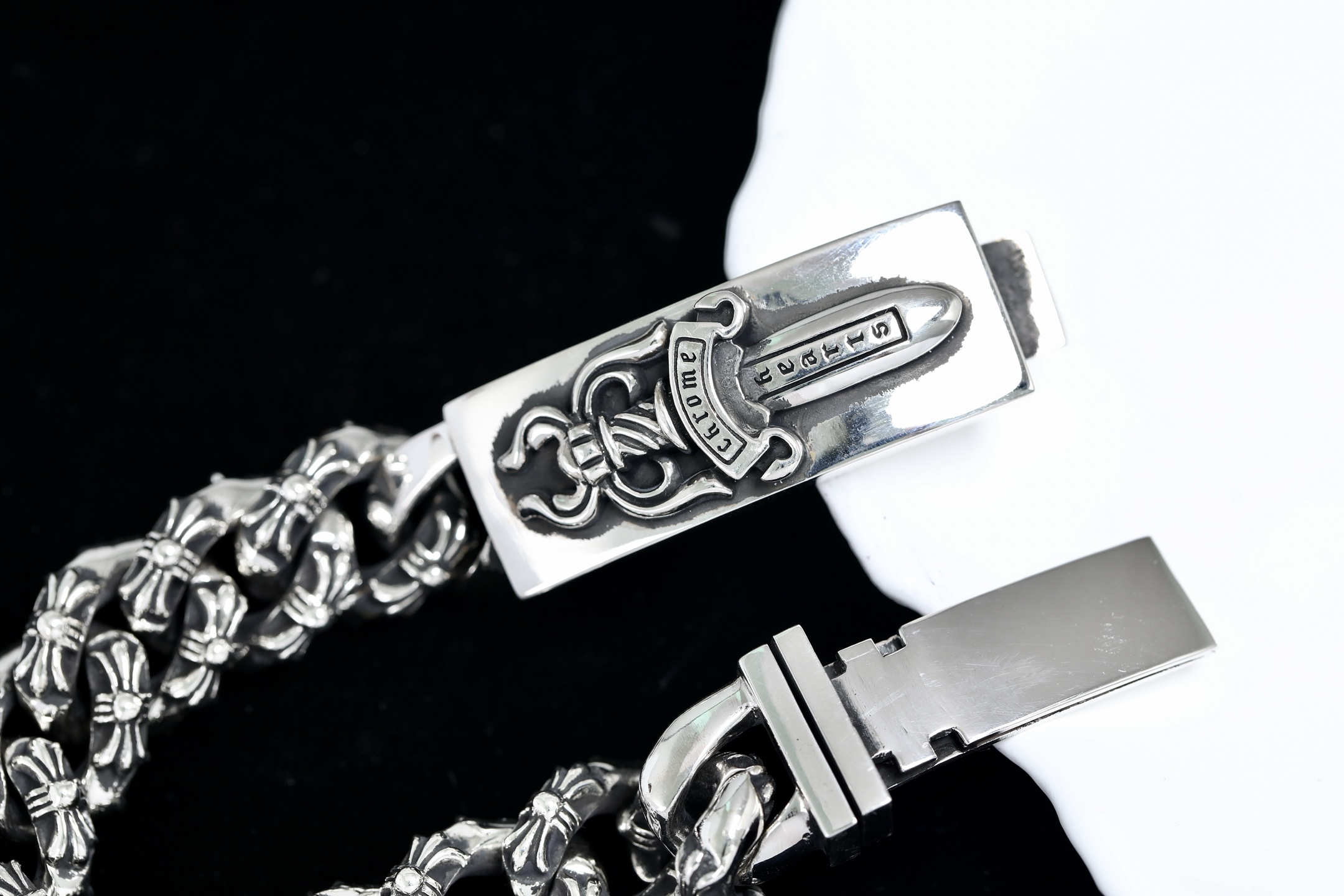 這款包包是AAAAA 1:1 質量(非常棒). 使用了和原版一模一樣的材料. 商標部分也保持了和鉻心/Chrome Hearts一樣. 圖片拍攝是實物包包拍攝, 您所收到的實物保證和我們圖片一模一樣.