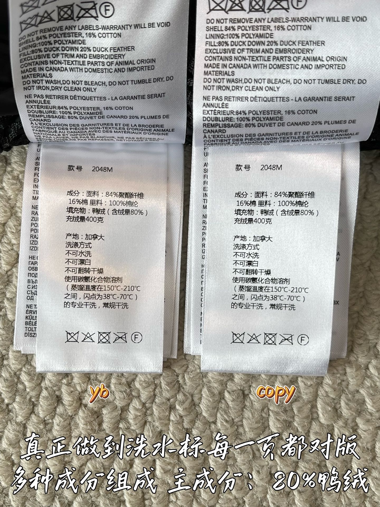 這款衣服是AAAAA 1:1 質量(非常棒). 使用了和原版一模一樣的材料. 商標部分也保持了和Canada Goose一樣. 圖片拍攝是實物衣服拍攝, 您所收到的實物保證和我們圖片一模一樣.