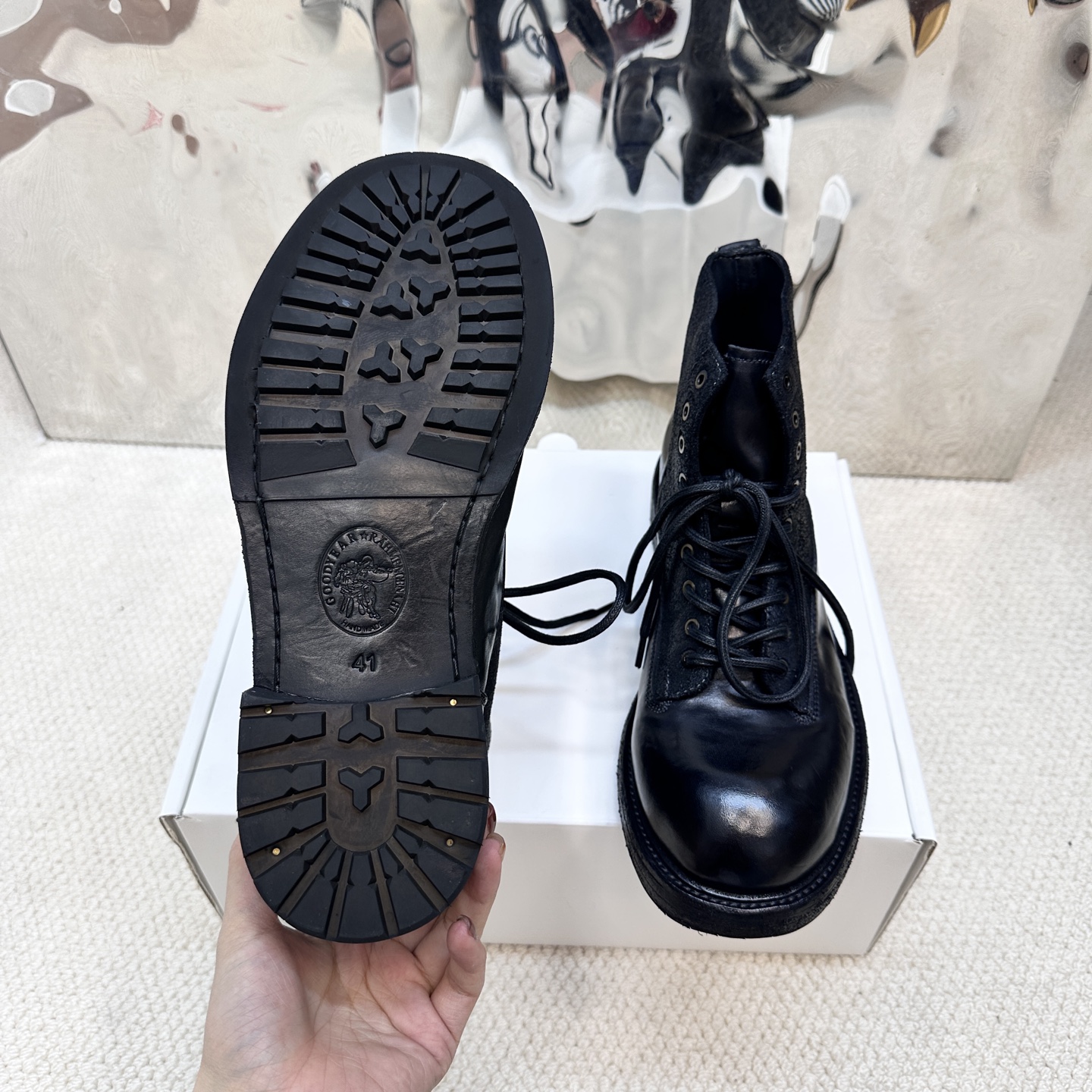 這款衣服是AAAAA 1:1 質量(非常棒). 使用了和原版一模一樣的材料. 商標部分也保持了和Goodyear-Welted一樣. 圖片拍攝是實物衣服拍攝, 您所收到的實物保證和我們圖片一模一樣.
