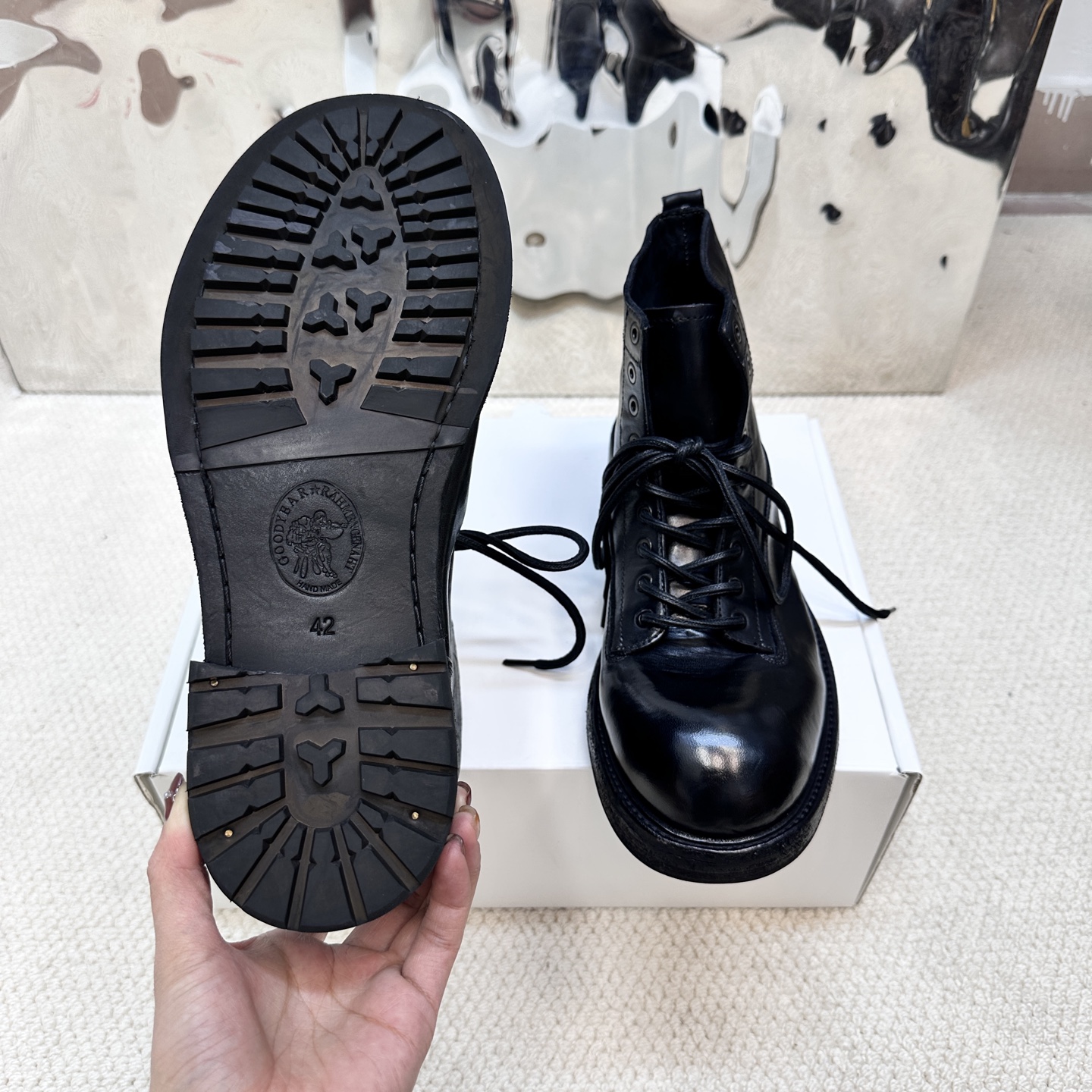 這款衣服是AAAAA 1:1 質量(非常棒). 使用了和原版一模一樣的材料. 商標部分也保持了和Goodyear-Welted一樣. 圖片拍攝是實物衣服拍攝, 您所收到的實物保證和我們圖片一模一樣.