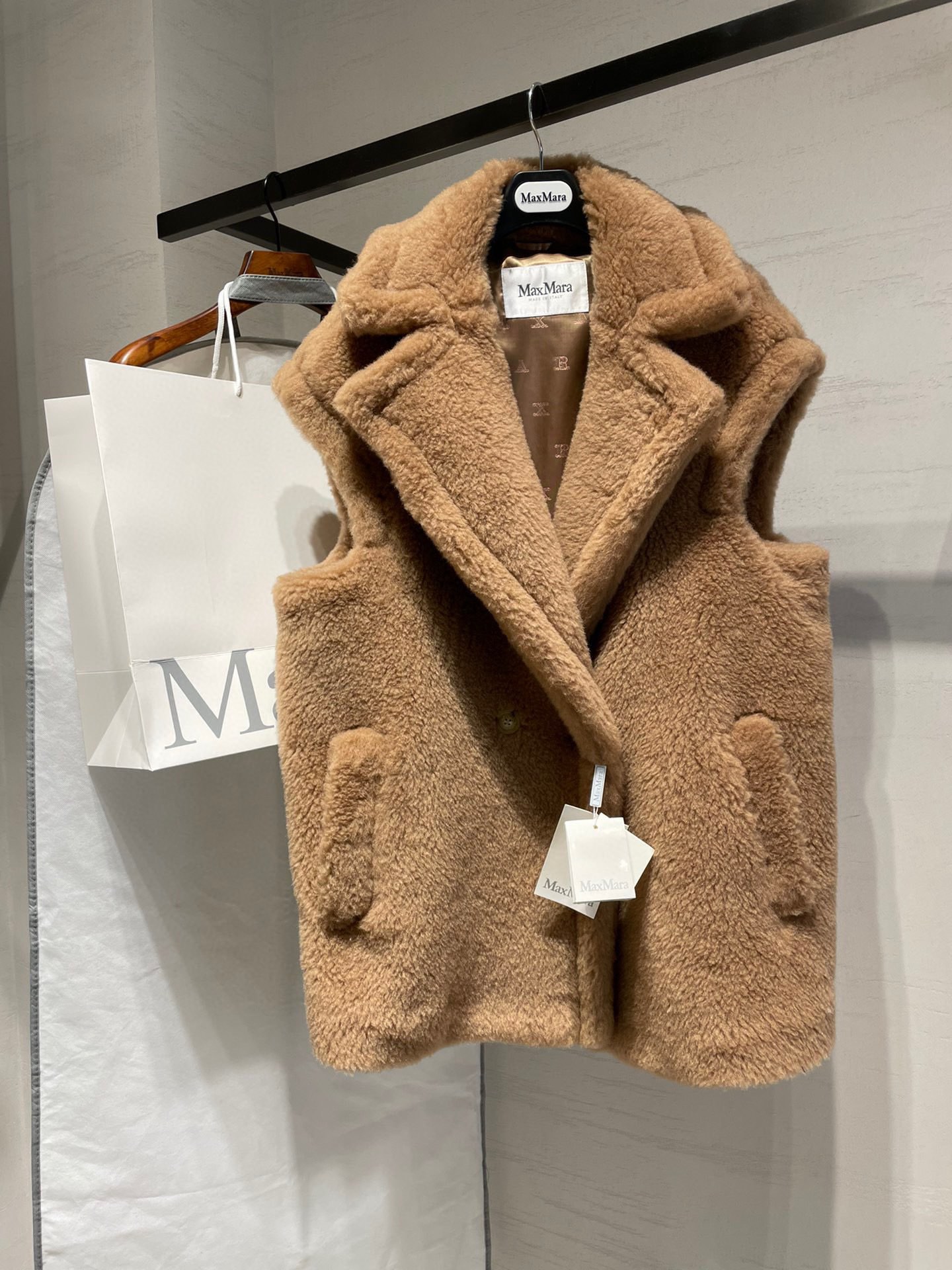 這款衣服是AAAAA 1:1 質量(非常棒). 使用了和原版一模一樣的材料. 商標部分也保持了和Max Mara一樣. 圖片拍攝是實物衣服拍攝, 您所收到的實物保證和我們圖片一模一樣.