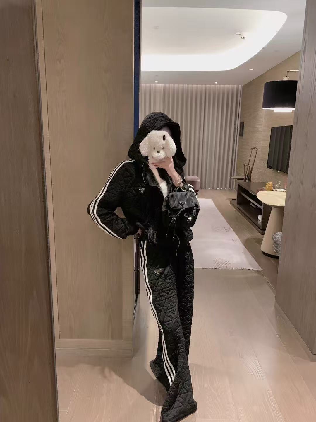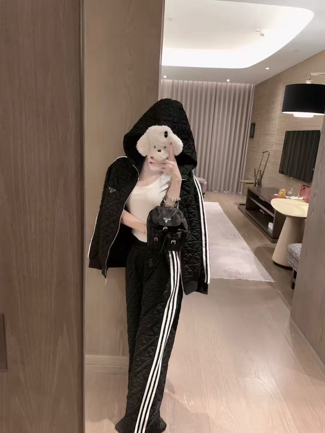這款衣服是AAAAA 1:1 質量(非常棒). 使用了和原版一模一樣的材料. 商標部分也保持了和普拉達/Prada一樣. 圖片拍攝是實物衣服拍攝, 您所收到的實物保證和我們圖片一模一樣.