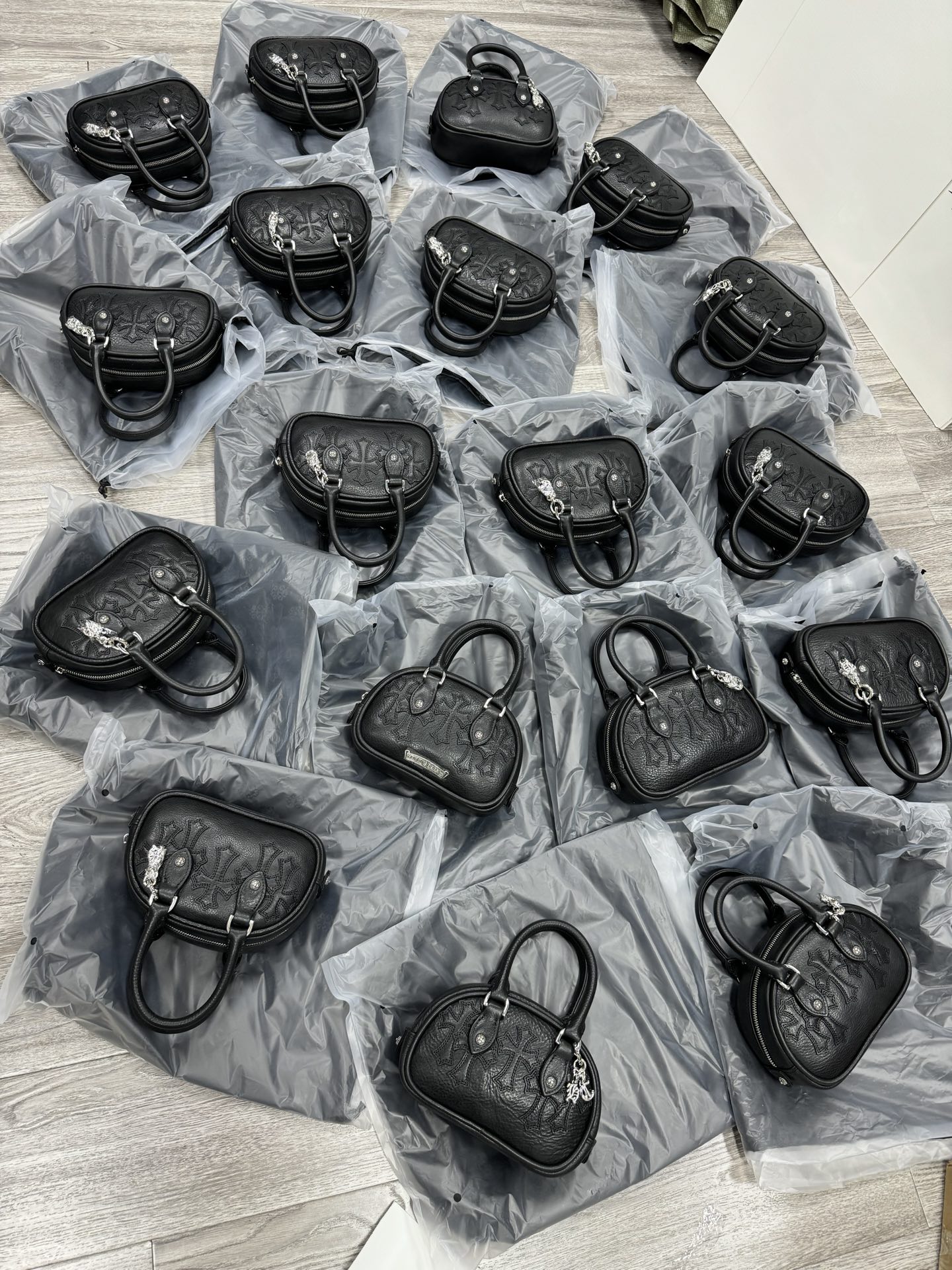 這款包包是AAAAA 1:1 質量(非常棒). 使用了和原版一模一樣的材料. 商標部分也保持了和鉻心/Chrome Hearts一樣. 圖片拍攝是實物包包拍攝, 您所收到的實物保證和我們圖片一模一樣.