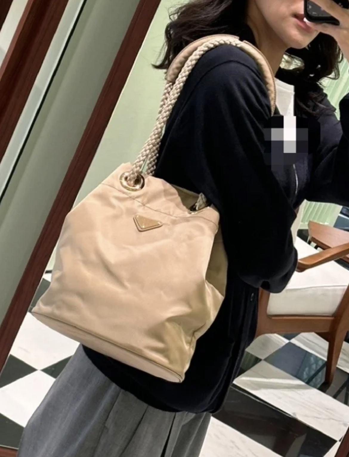 這款包包是AAAAA 1:1 質量(非常棒). 使用了和原版一模一樣的材料. 商標部分也保持了和普拉達/Prada一樣. 圖片拍攝是實物包包拍攝, 您所收到的實物保證和我們圖片一模一樣.
