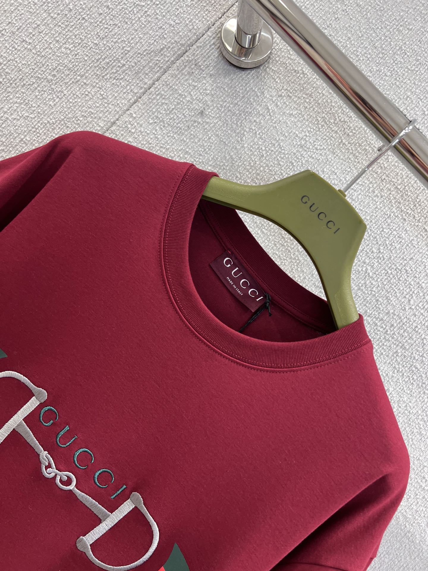 這款衣服是AAAAA 1:1 質量(非常棒). 使用了和原版一模一樣的材料. 商標部分也保持了和古奇/Gucci一樣. 圖片拍攝是實物衣服拍攝, 您所收到的實物保證和我們圖片一模一樣.