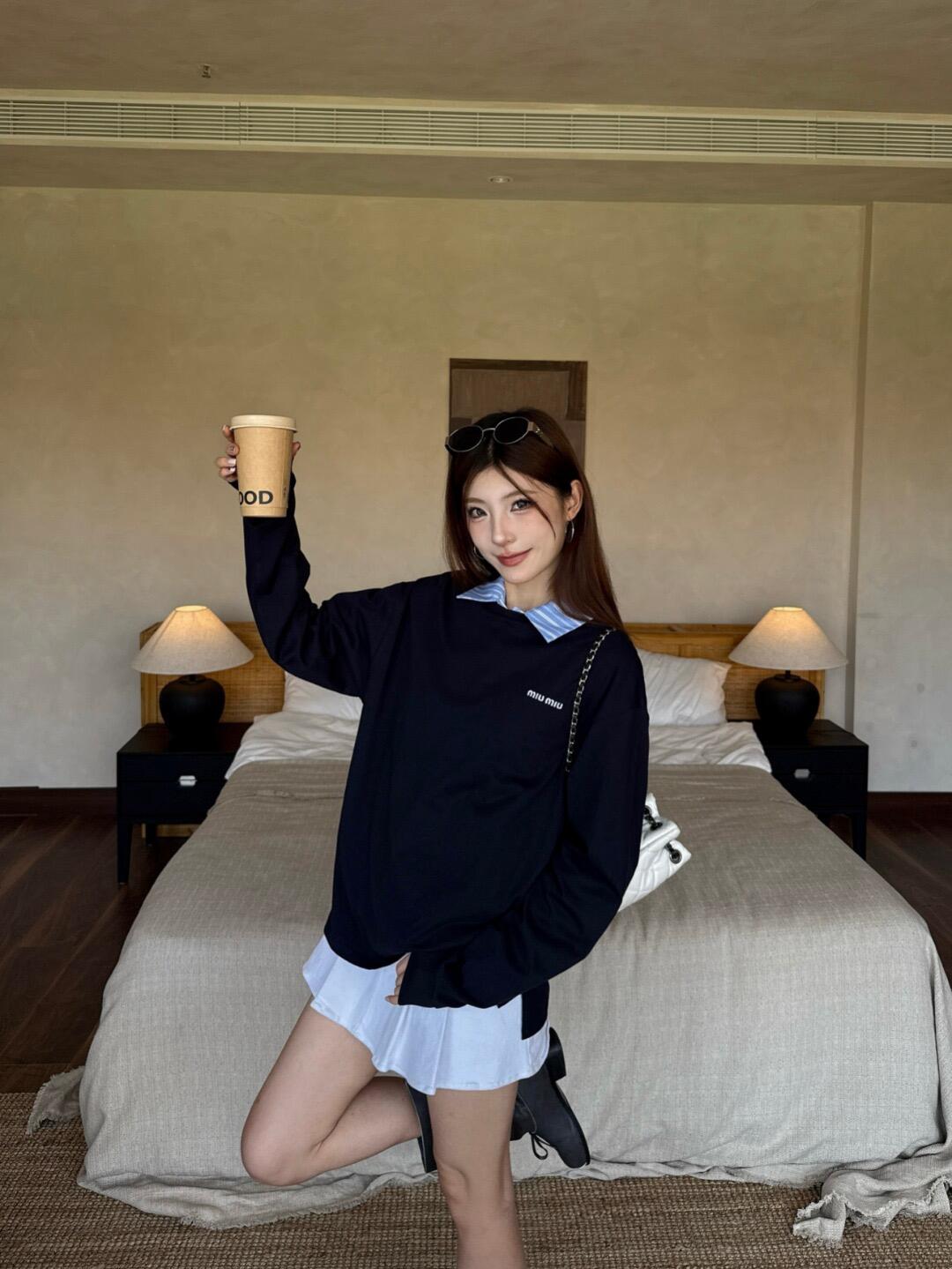 這款衣服是AAAAA 1:1 質量(非常棒). 使用了和原版一模一樣的材料. 商標部分也保持了和繆繆/Miu Miu一樣. 圖片拍攝是實物衣服拍攝, 您所收到的實物保證和我們圖片一模一樣.
