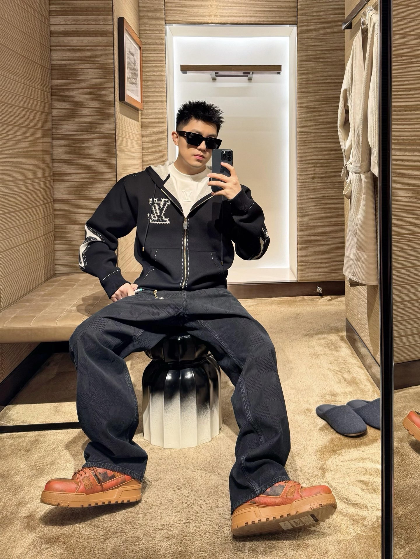 這款衣服是AAAAA 1:1 質量(非常棒). 使用了和原版一模一樣的材料. 商標部分也保持了和路易威登/Louis Vuitton一樣. 圖片拍攝是實物衣服拍攝, 您所收到的實物保證和我們圖片一模一樣.