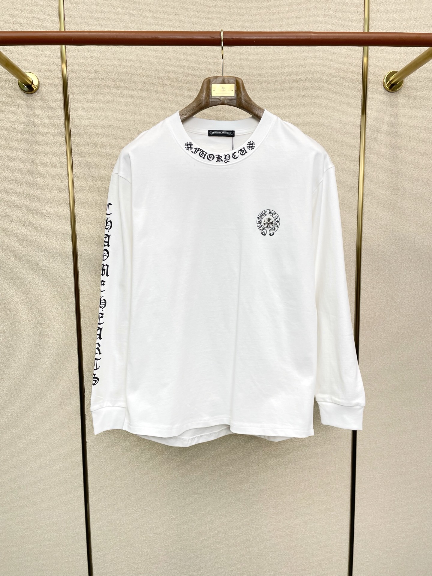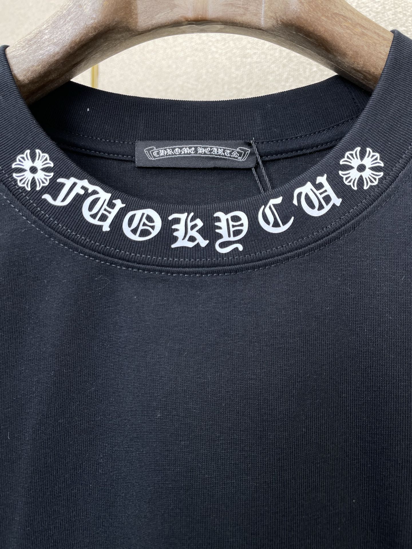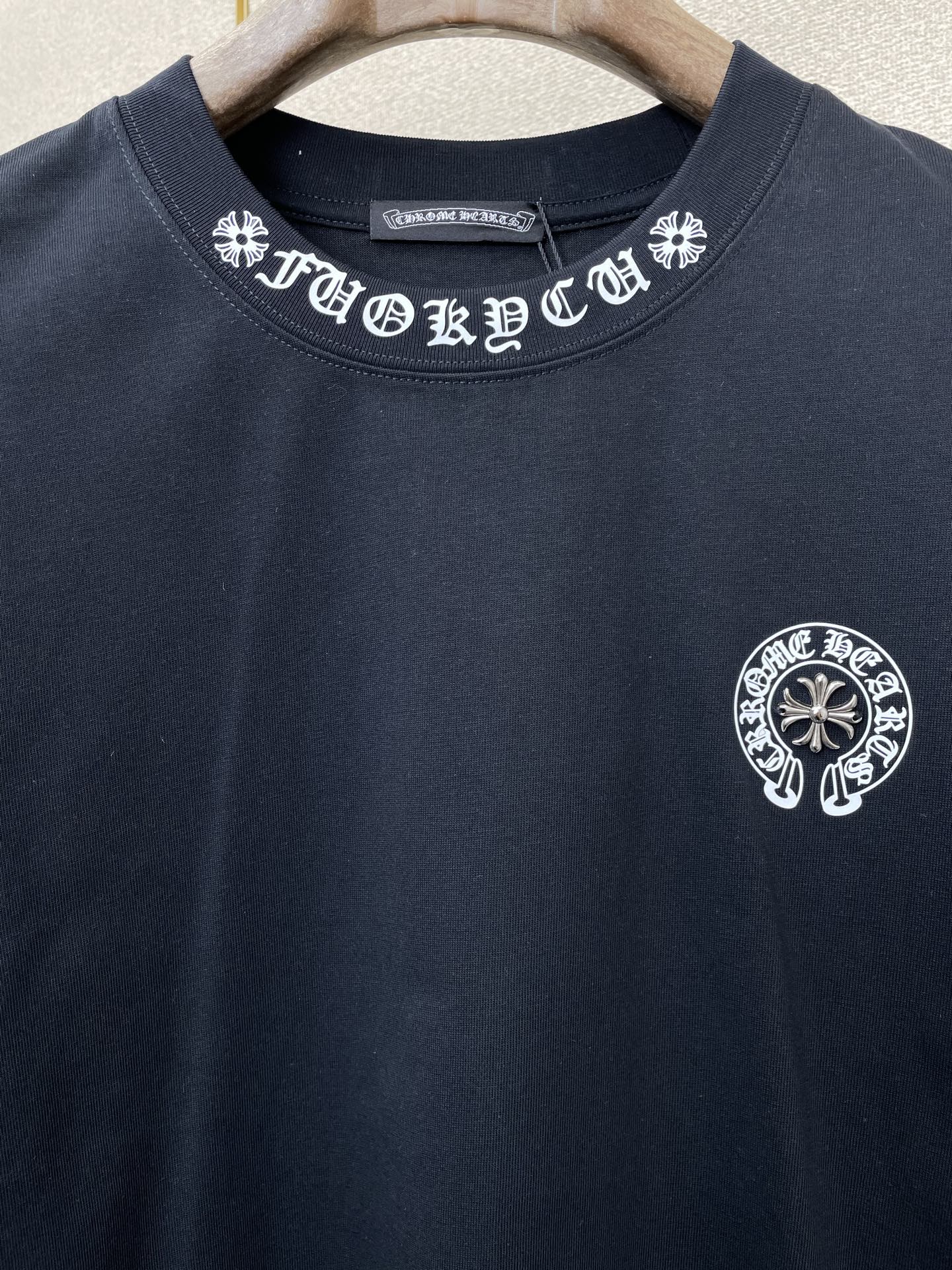 這款衣服是AAAAA 1:1 質量(非常棒). 使用了和原版一模一樣的材料. 商標部分也保持了和鉻心/Chrome Hearts一樣. 圖片拍攝是實物衣服拍攝, 您所收到的實物保證和我們圖片一模一樣.