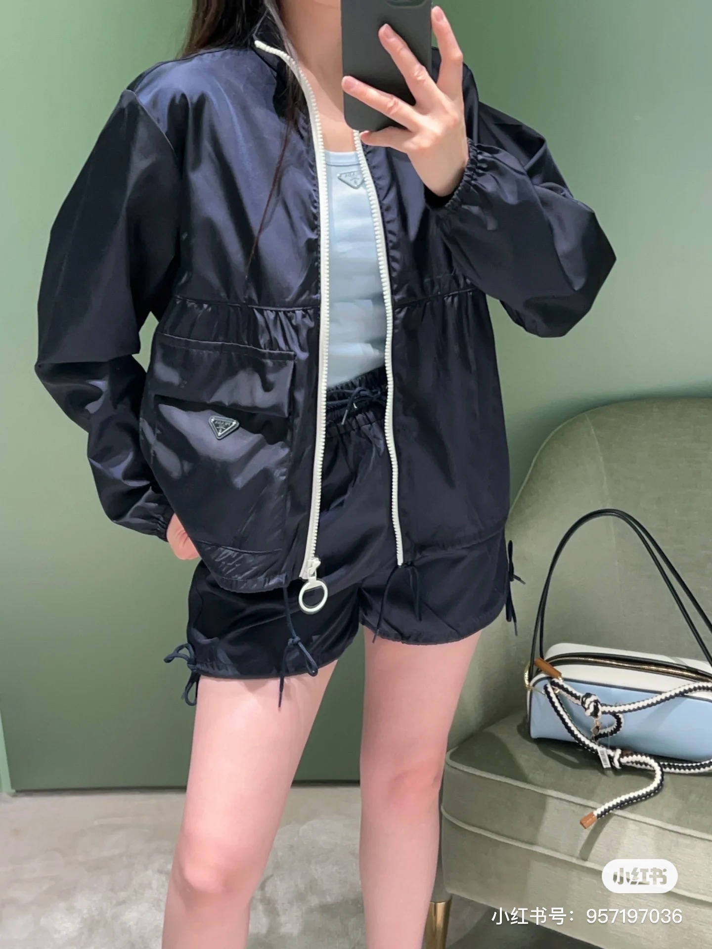 這款衣服是AAAAA 1:1 質量(非常棒). 使用了和原版一模一樣的材料. 商標部分也保持了和普拉達/Prada一樣. 圖片拍攝是實物衣服拍攝, 您所收到的實物保證和我們圖片一模一樣.
