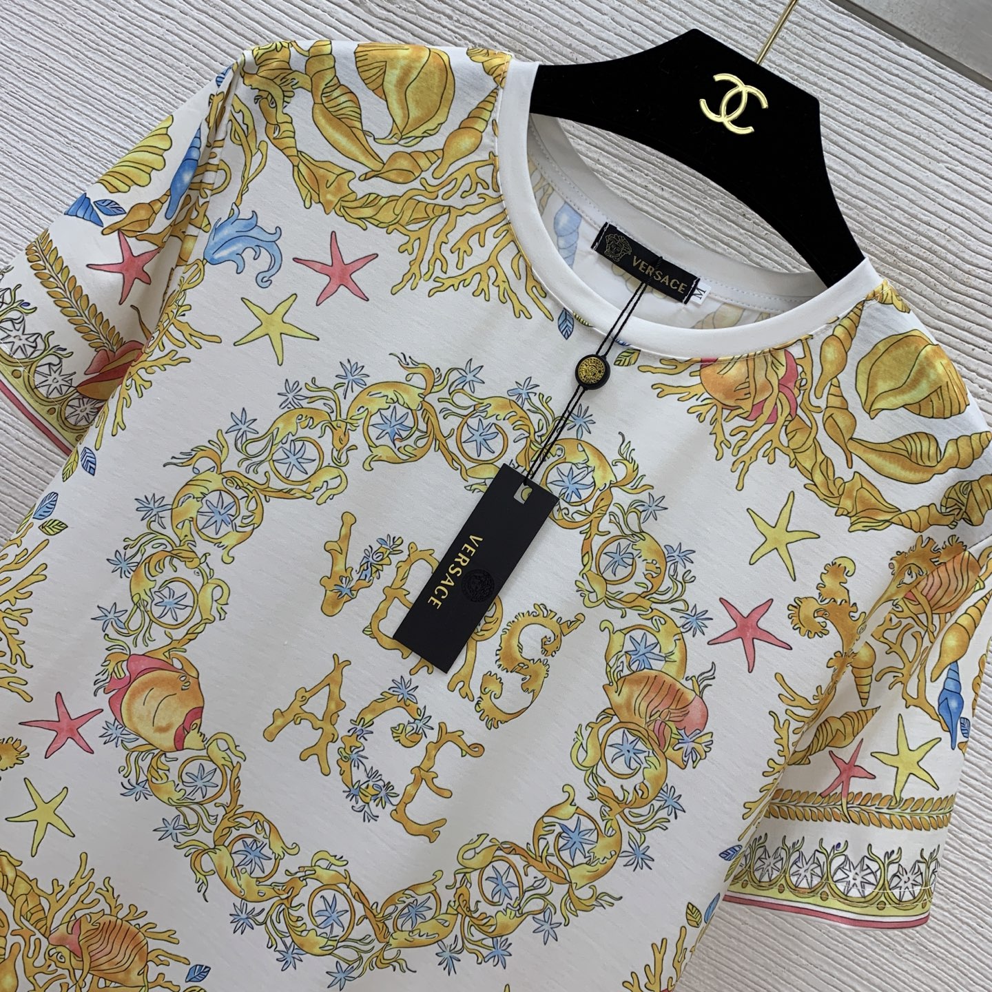 這款衣服是AAAAA 1:1 質量(非常棒). 使用了和原版一模一樣的材料. 商標部分也保持了和范思哲/Versace一樣. 圖片拍攝是實物衣服拍攝, 您所收到的實物保證和我們圖片一模一樣.
