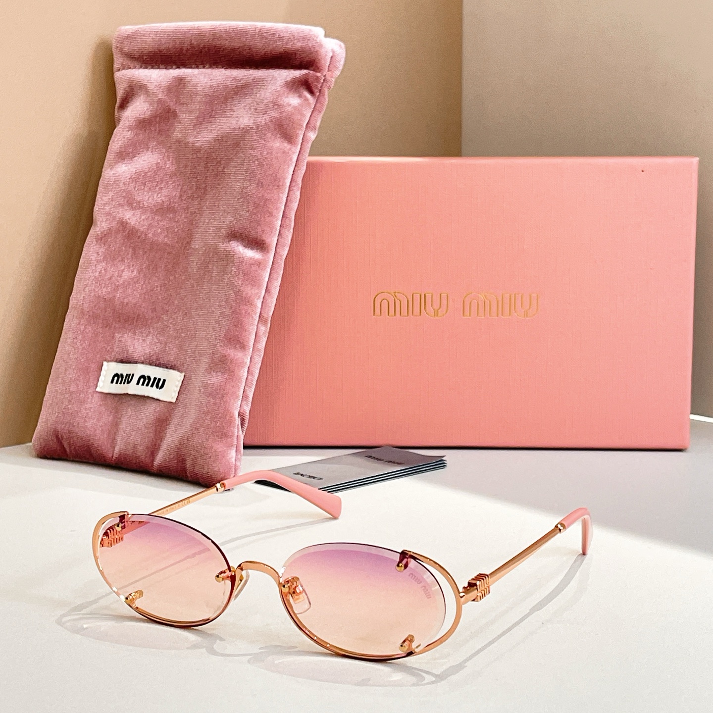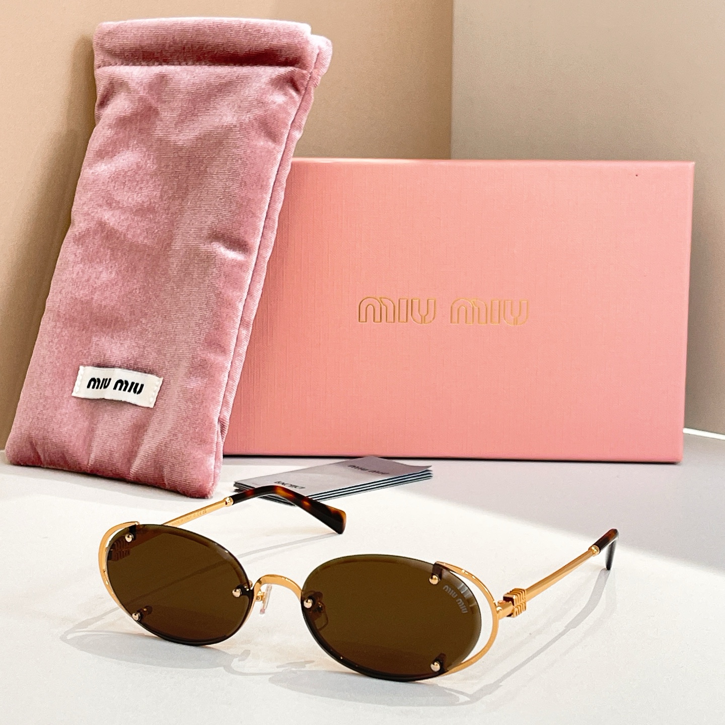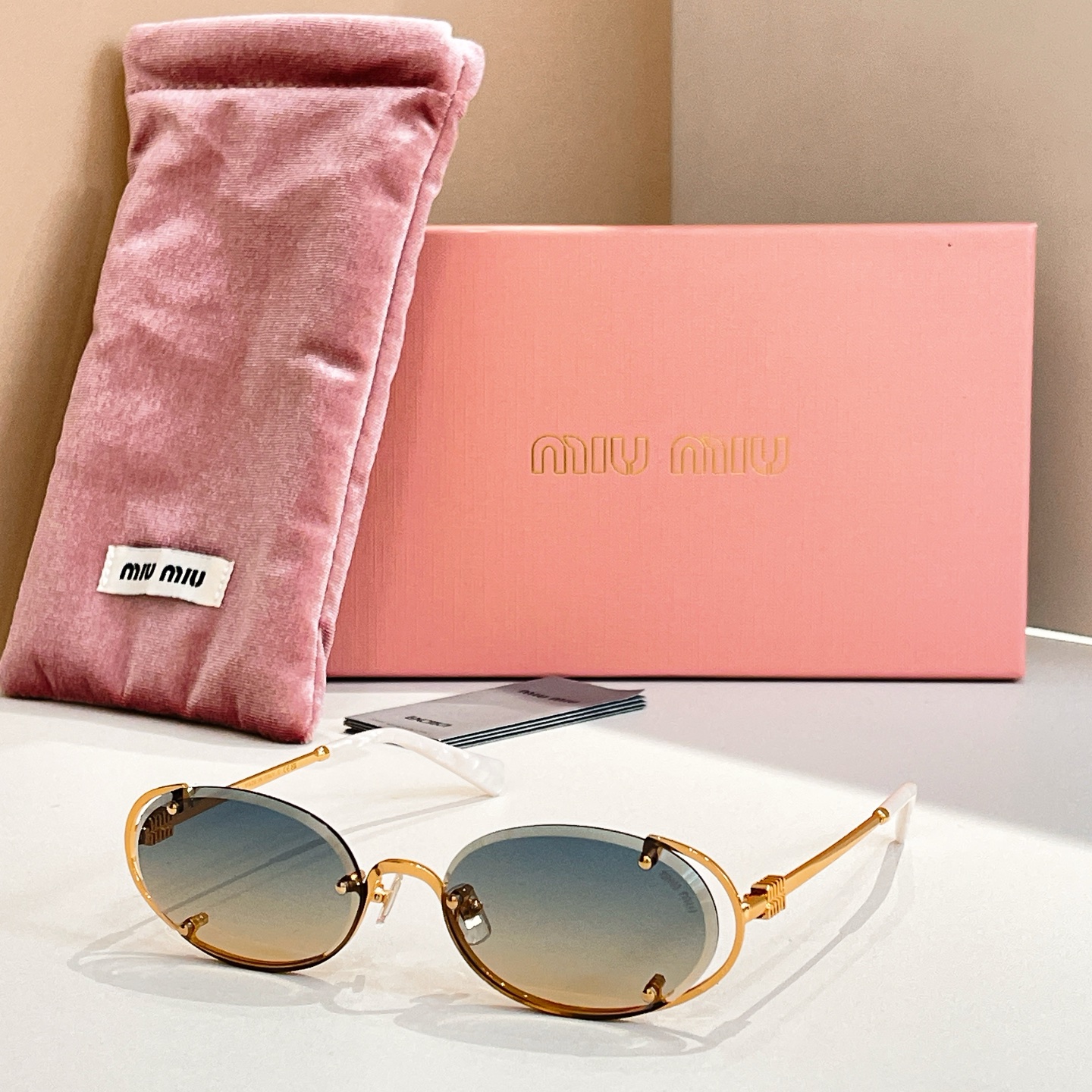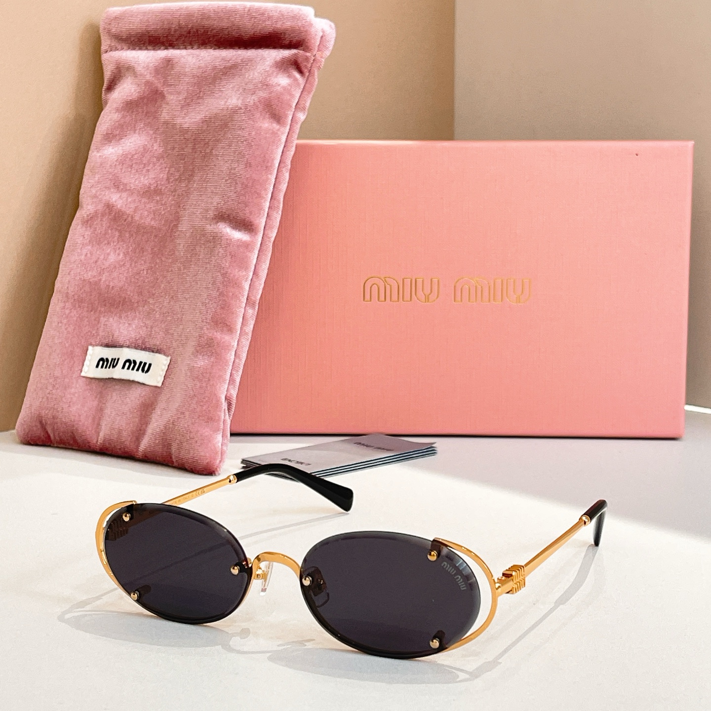 這款太陽眼鏡是AAAAA 1:1 質量(非常棒). 使用了和原版一模一樣的材料. 商標部分也保持了和繆繆/Miu Miu一樣. 圖片拍攝是實物太陽眼鏡拍攝, 您所收到的實物保證和我們圖片一模一樣.