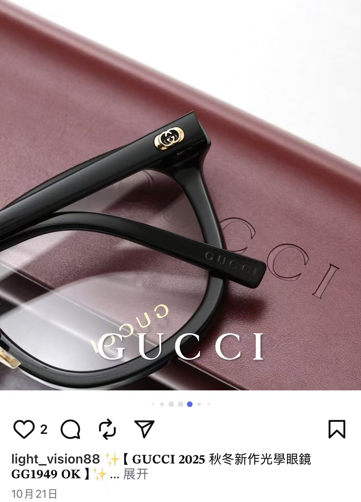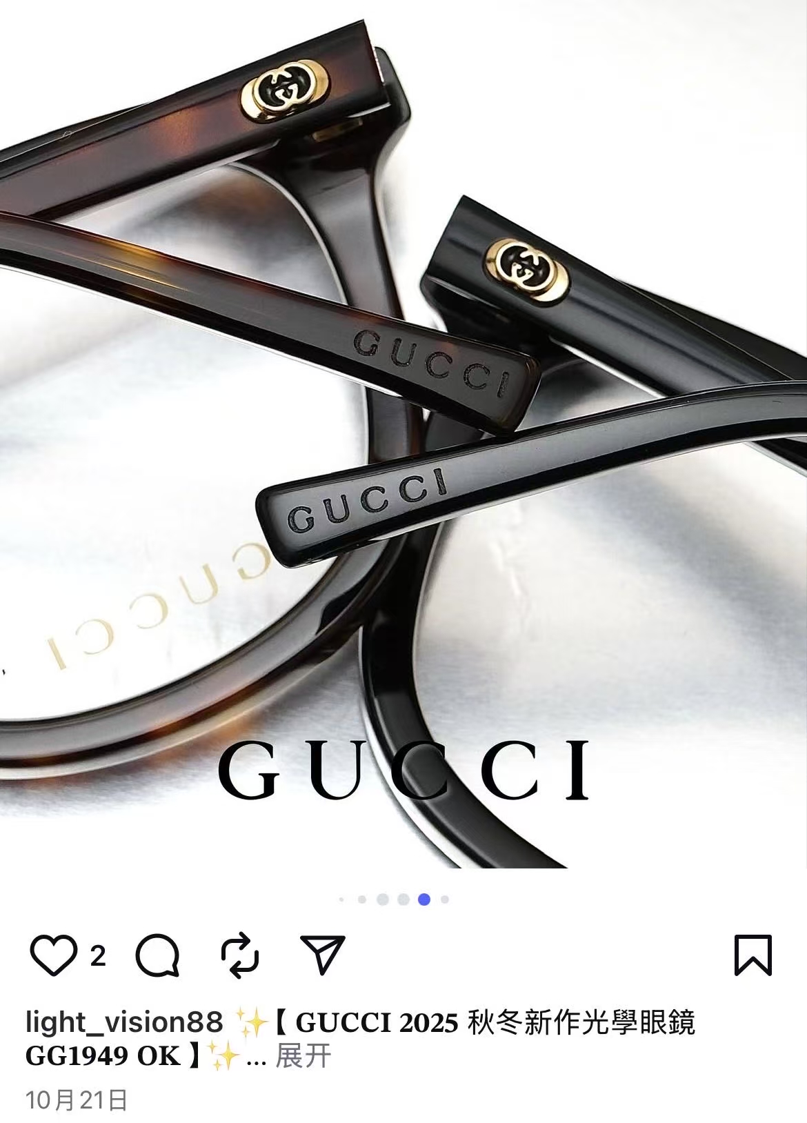 NO:4111098. 這款太陽眼鏡是來自於古奇/Gucci的設計師.