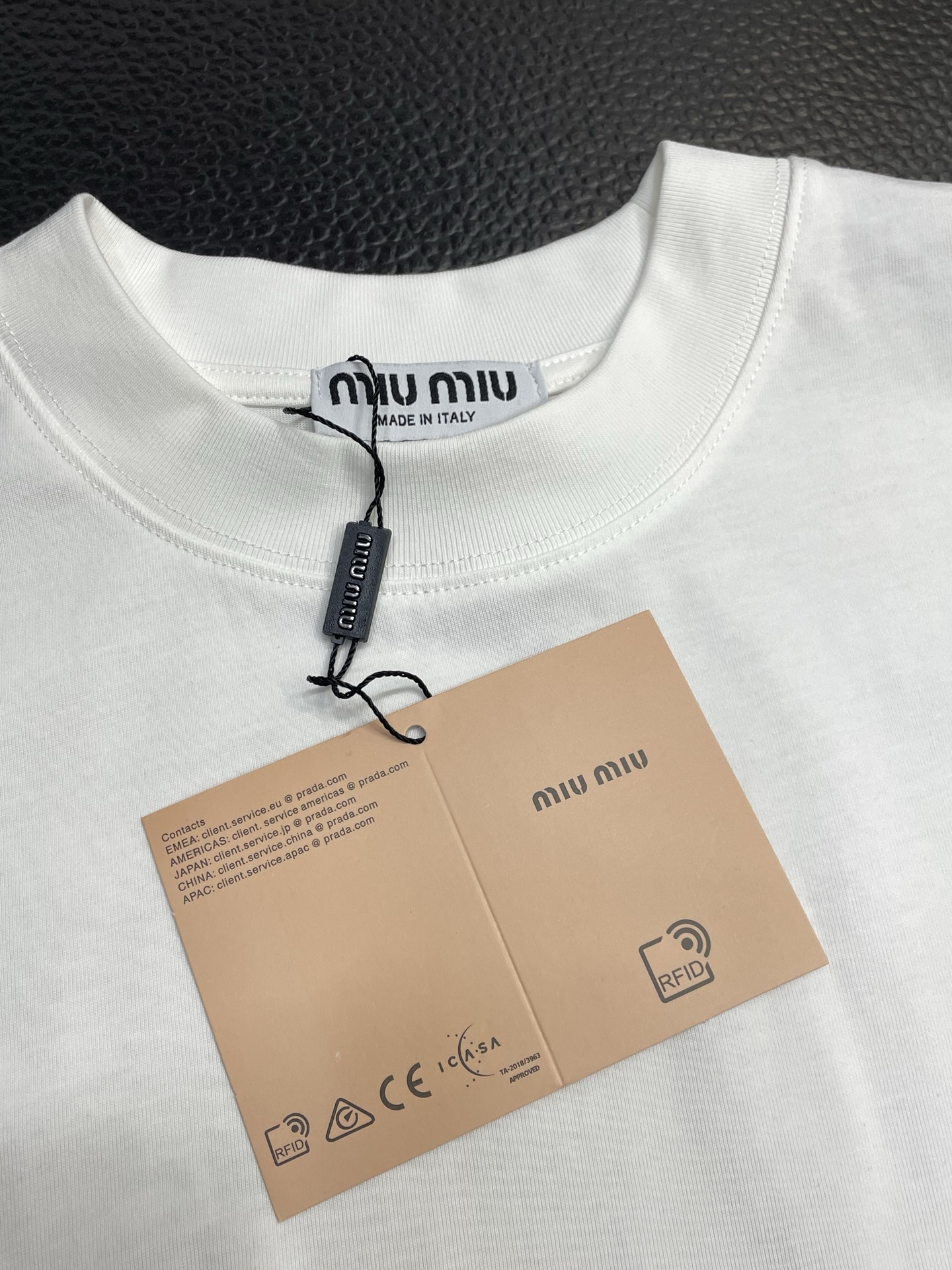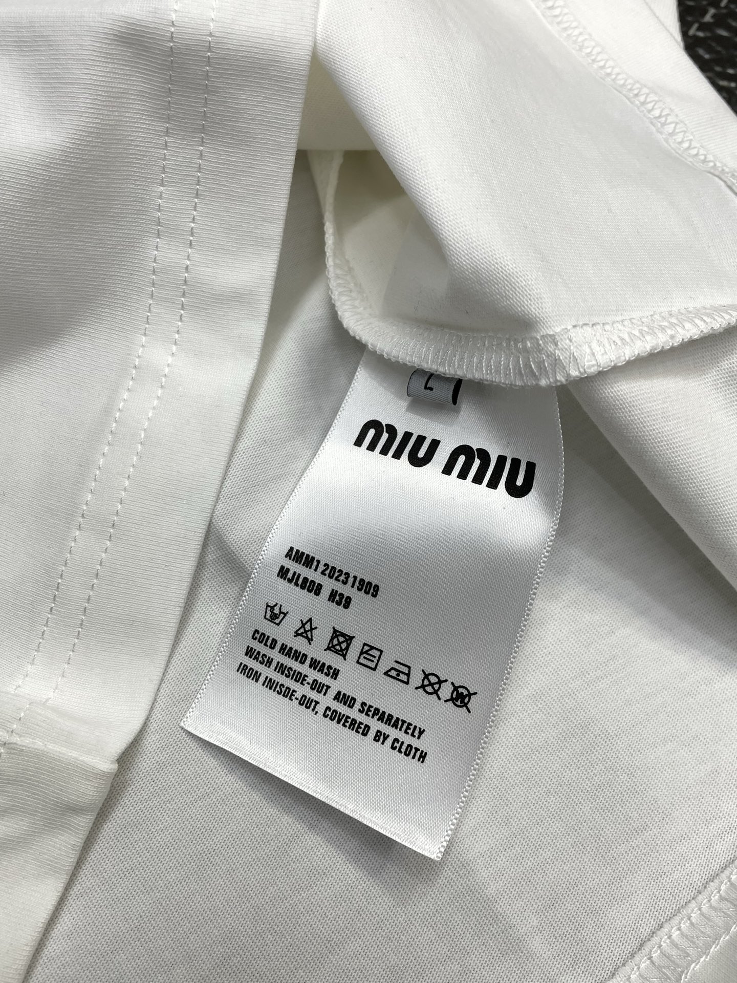 這款衣服是AAAAA 1:1 質量(非常棒). 使用了和原版一模一樣的材料. 商標部分也保持了和繆繆/Miu Miu一樣. 圖片拍攝是實物衣服拍攝, 您所收到的實物保證和我們圖片一模一樣.