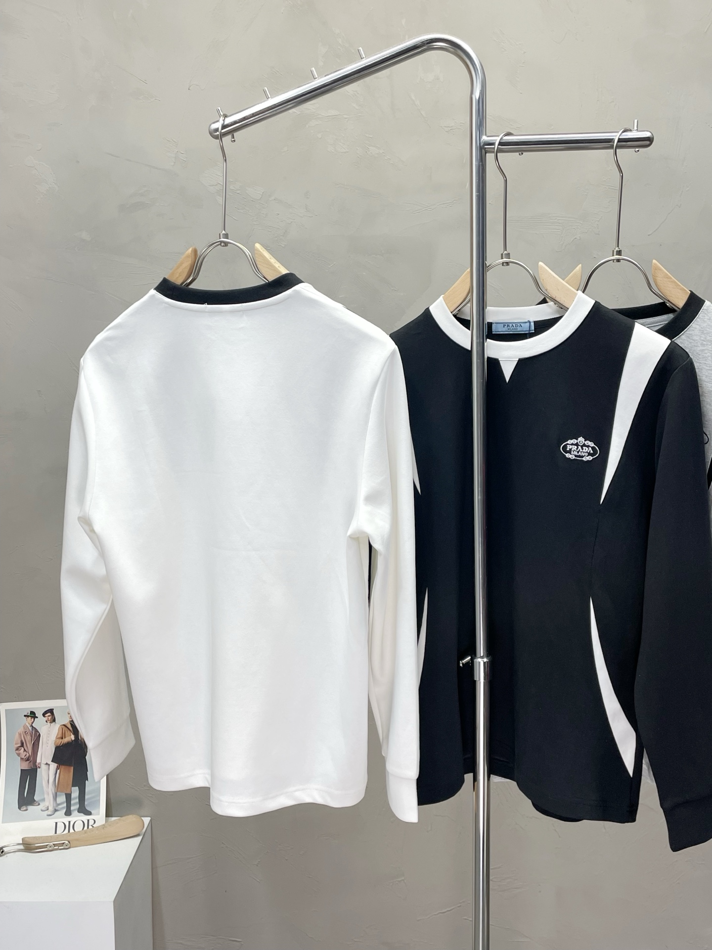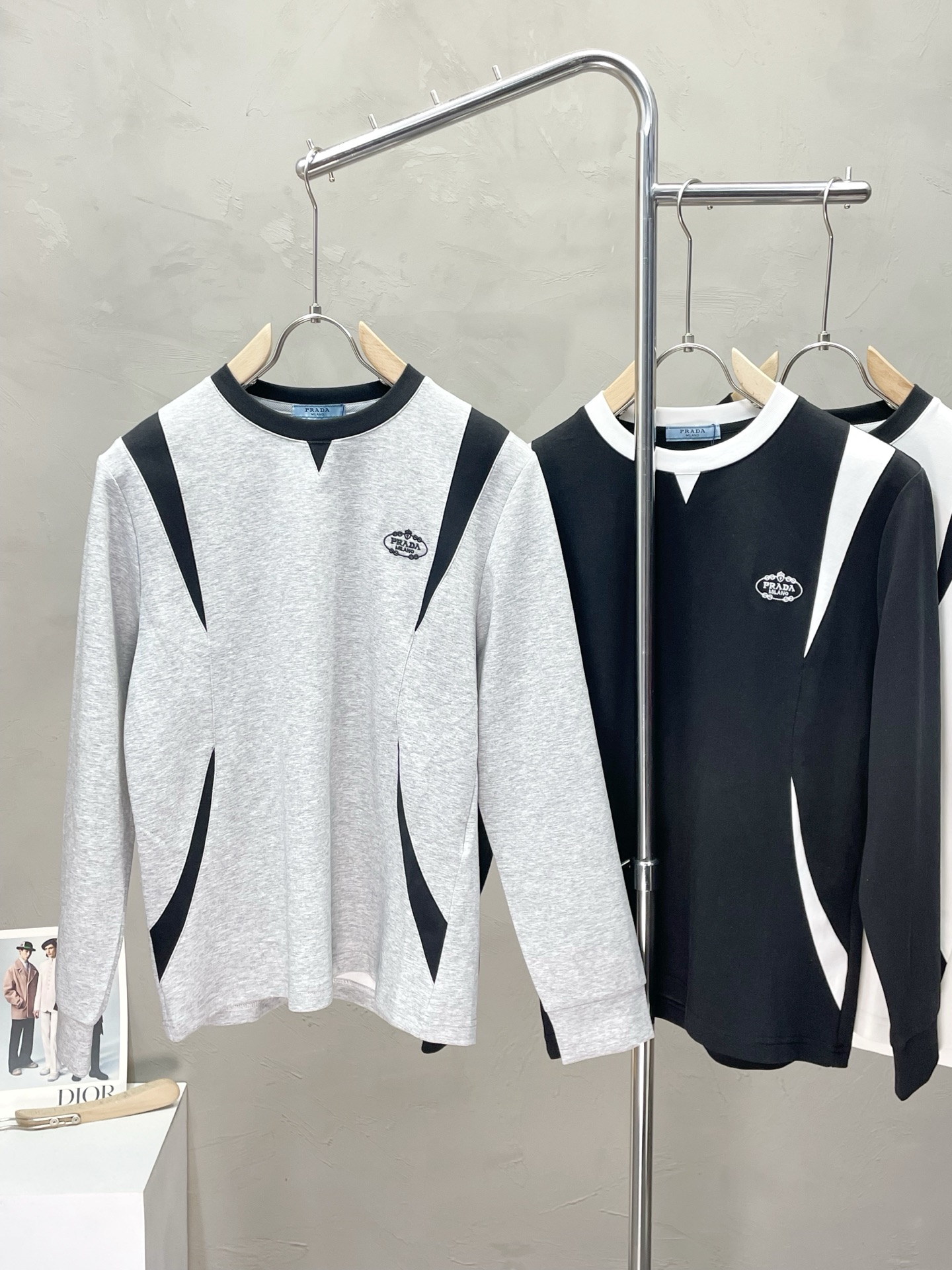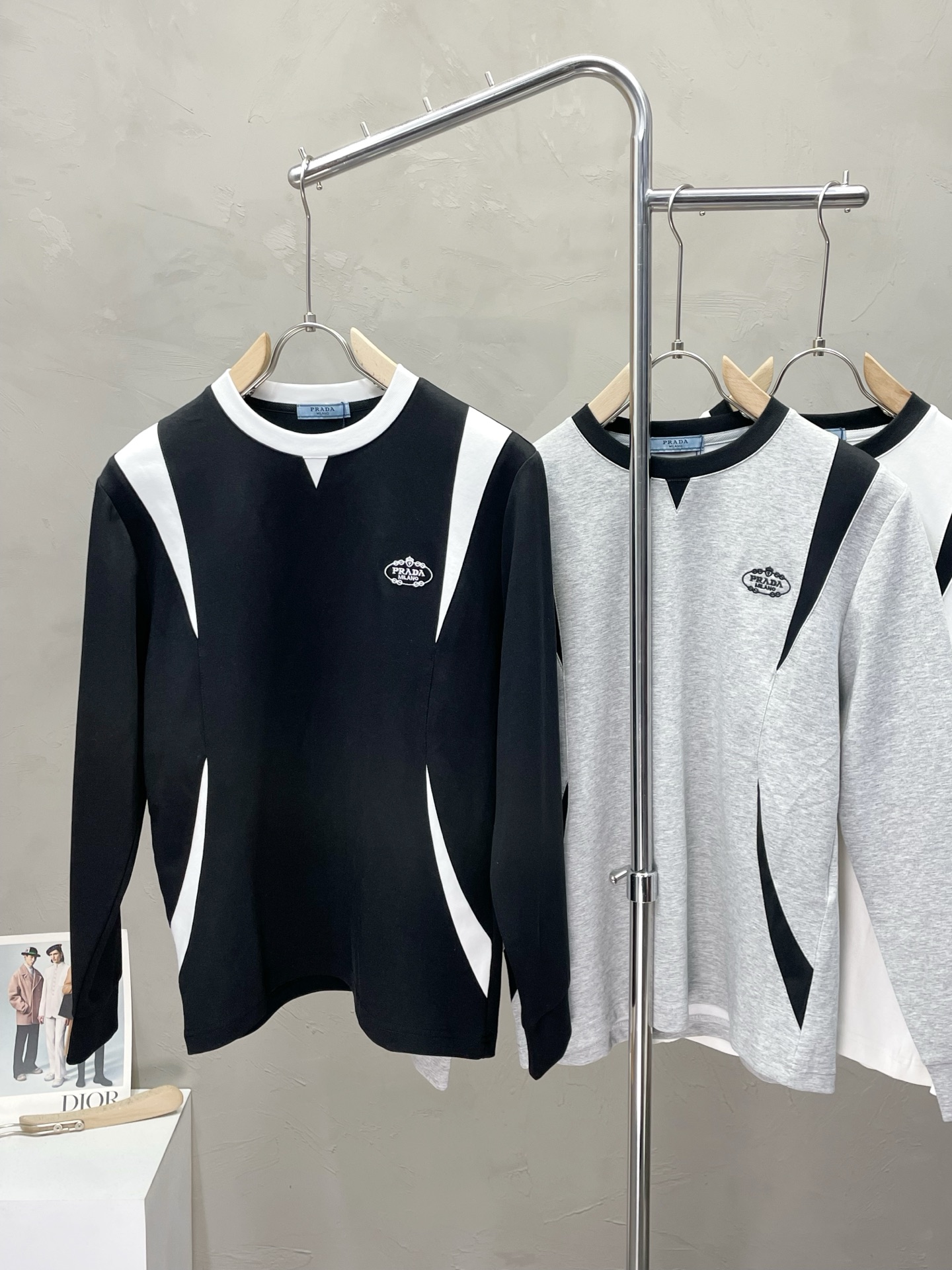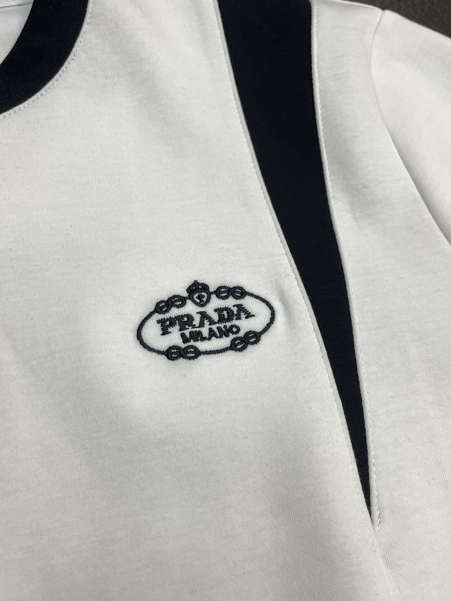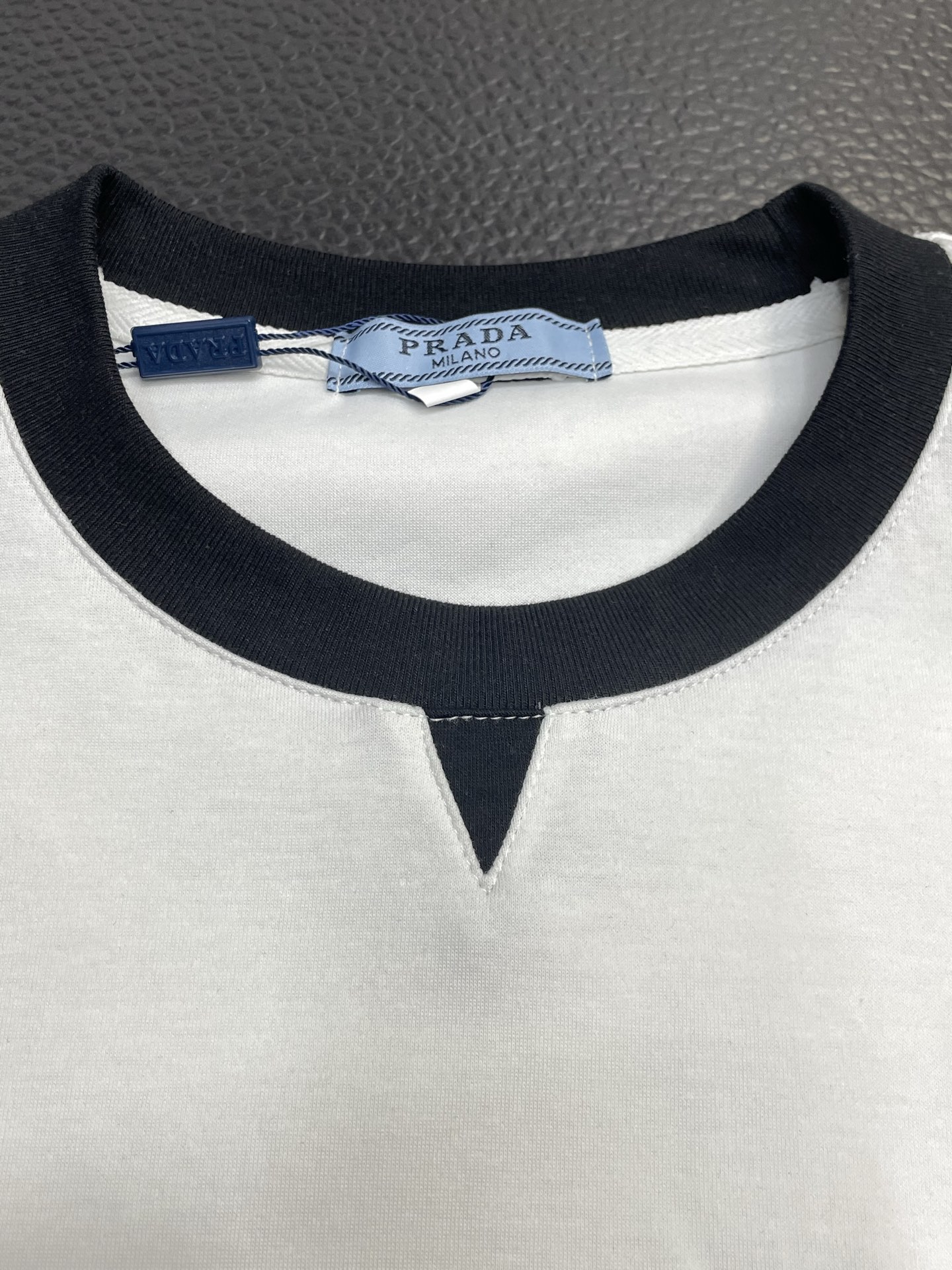 這款衣服是AAAAA 1:1 質量(非常棒). 使用了和原版一模一樣的材料. 商標部分也保持了和普拉達/Prada一樣. 圖片拍攝是實物衣服拍攝, 您所收到的實物保證和我們圖片一模一樣.