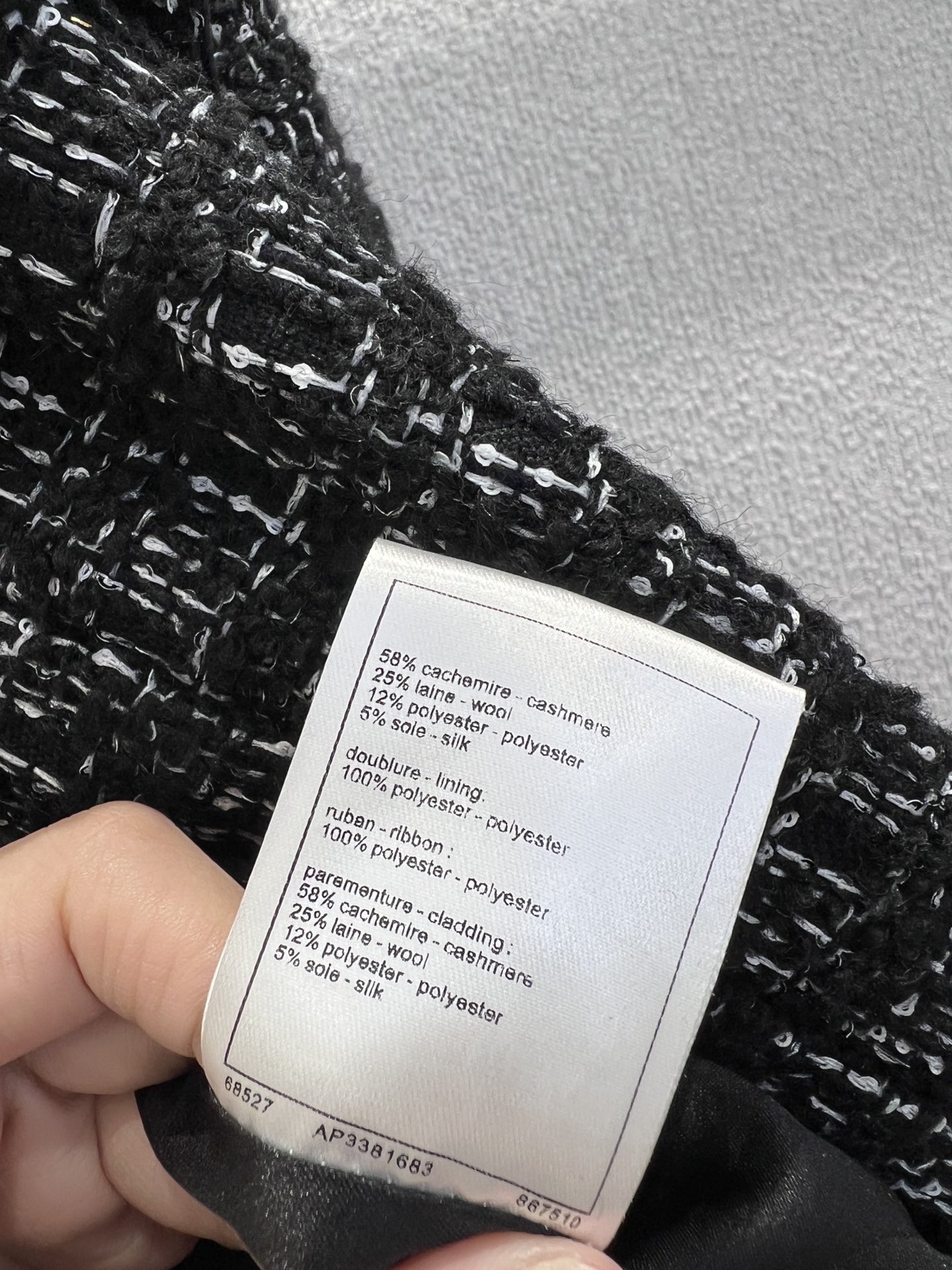 這款衣服是AAAAA 1:1 質量(非常棒). 使用了和原版一模一樣的材料. 商標部分也保持了和香奈兒/Chanel一樣. 圖片拍攝是實物衣服拍攝, 您所收到的實物保證和我們圖片一模一樣.