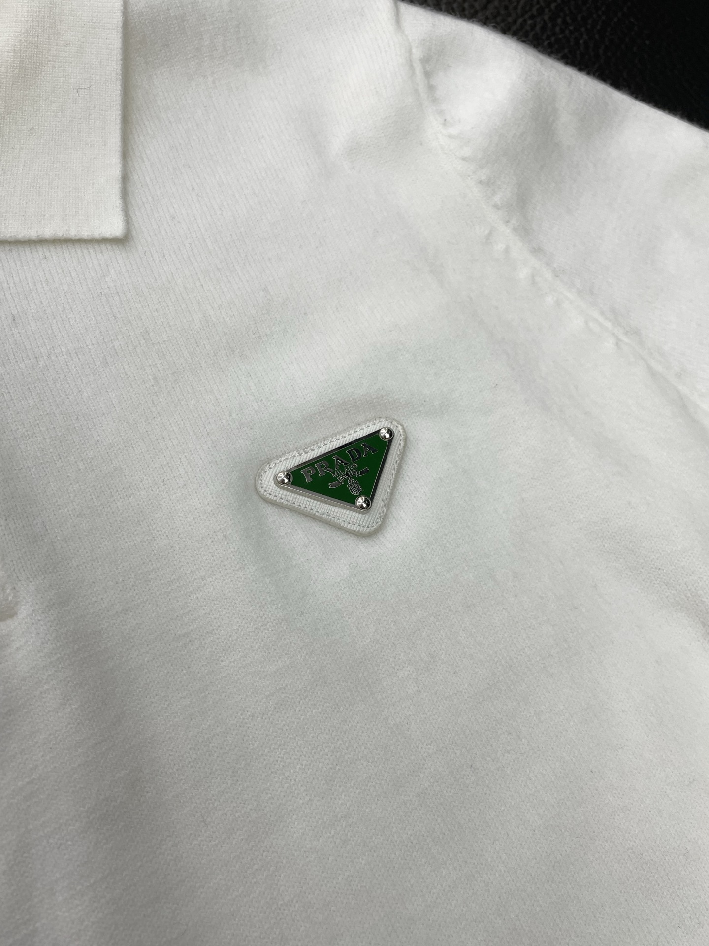 這款衣服是AAAAA 1:1 質量(非常棒). 使用了和原版一模一樣的材料. 商標部分也保持了和普拉達/Prada一樣. 圖片拍攝是實物衣服拍攝, 您所收到的實物保證和我們圖片一模一樣.