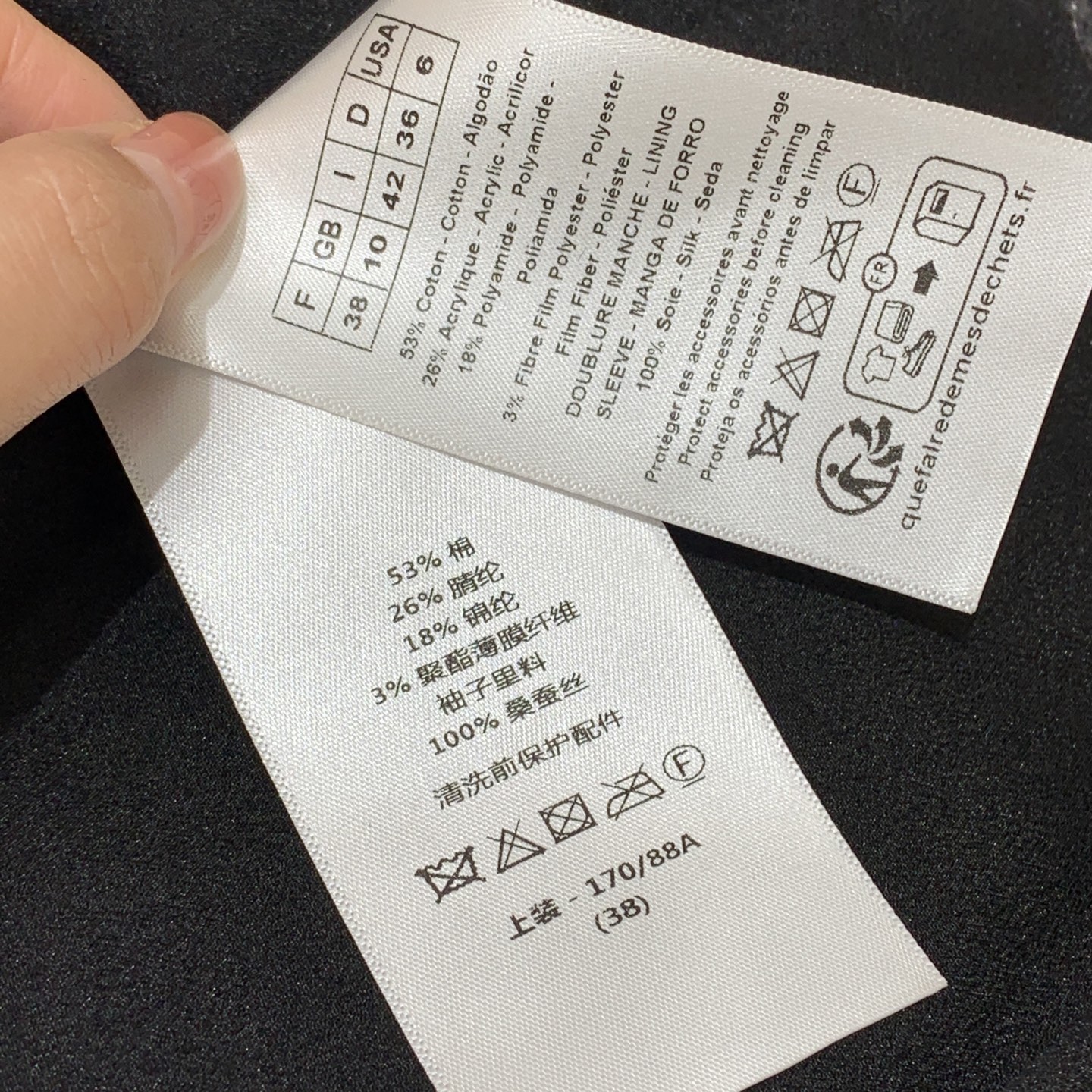 這款衣服是AAAAA 1:1 質量(非常棒). 使用了和原版一模一樣的材料. 商標部分也保持了和香奈兒/Chanel一樣. 圖片拍攝是實物衣服拍攝, 您所收到的實物保證和我們圖片一模一樣.