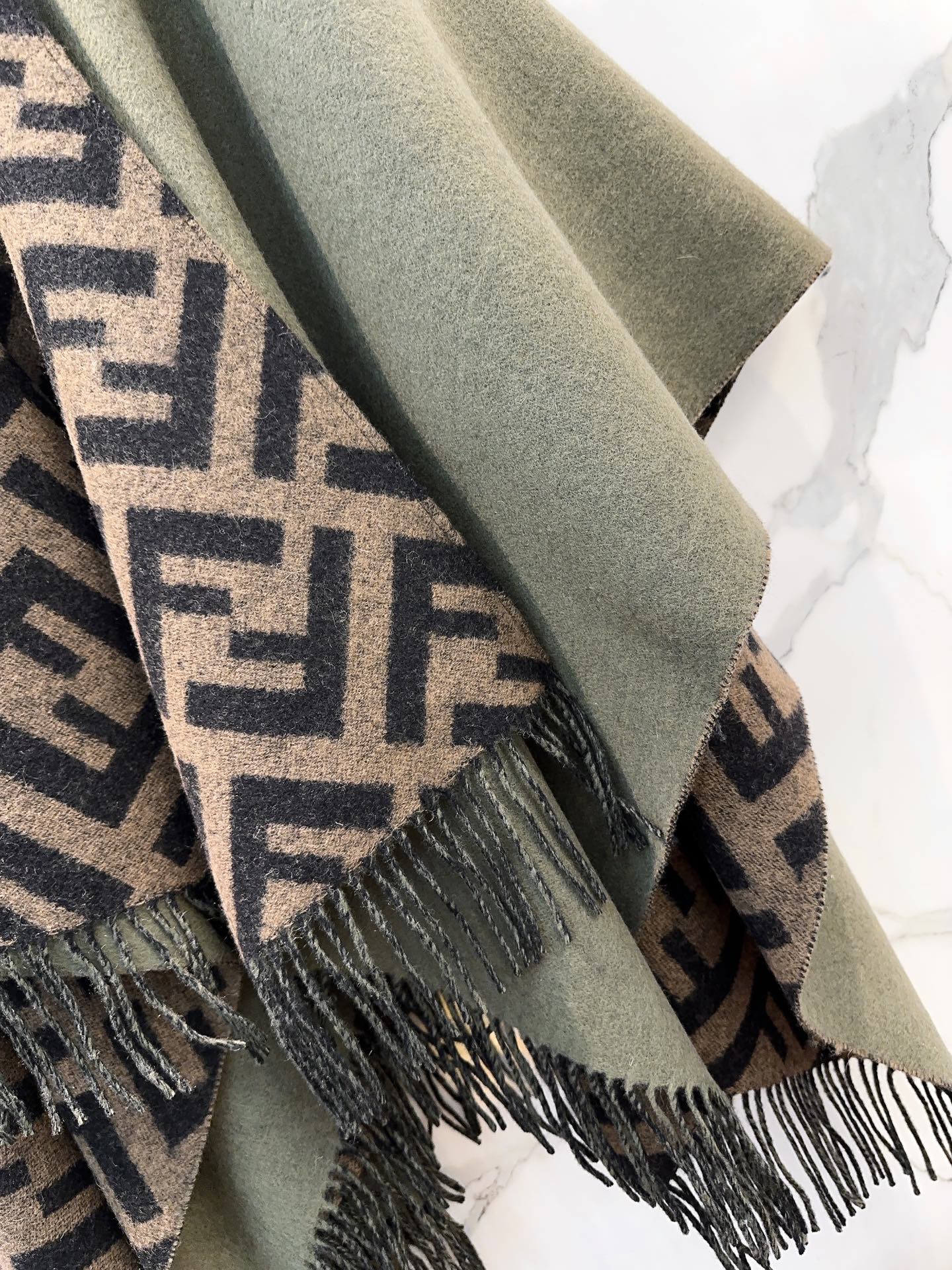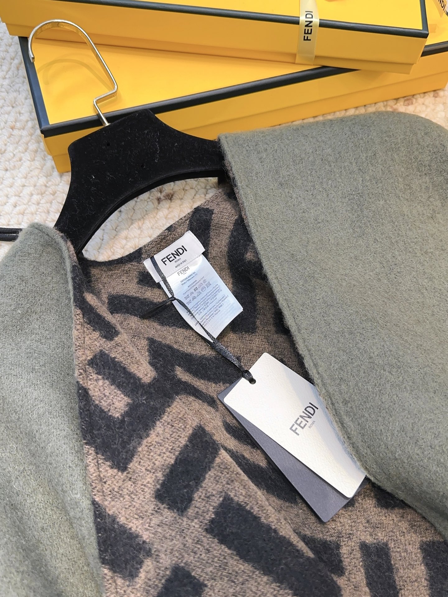 這款圍巾是AAAAA 1:1 質量(非常棒). 使用了和原版一模一樣的材料. 商標部分也保持了和芬迪/Fendi一樣. 圖片拍攝是實物圍巾拍攝, 您所收到的實物保證和我們圖片一模一樣.
