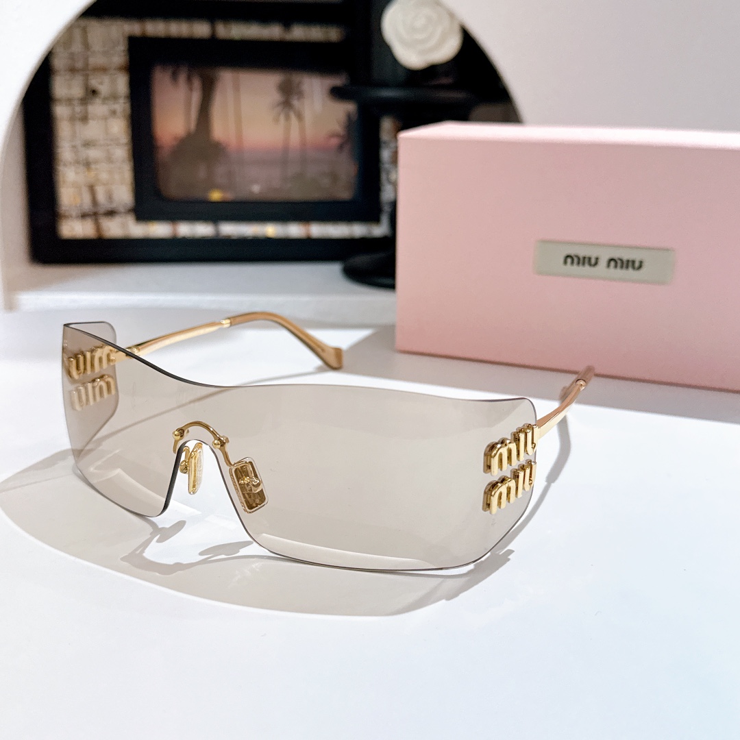 這款太陽眼鏡是AAAAA 1:1 質量(非常棒). 使用了和原版一模一樣的材料. 商標部分也保持了和繆繆/Miu Miu一樣. 圖片拍攝是實物太陽眼鏡拍攝, 您所收到的實物保證和我們圖片一模一樣.