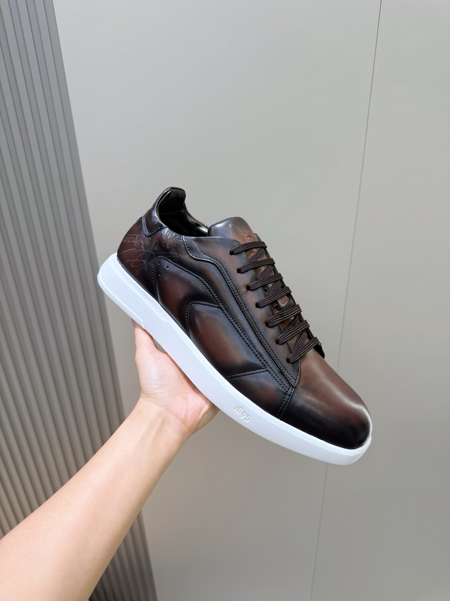 這款鞋子是AAAAA 1:1 質量(非常棒). 使用了和原版一模一樣的材料. 商標部分也保持了和Berluti一樣. 圖片拍攝是實物鞋子拍攝, 您所收到的實物保證和我們圖片一模一樣.