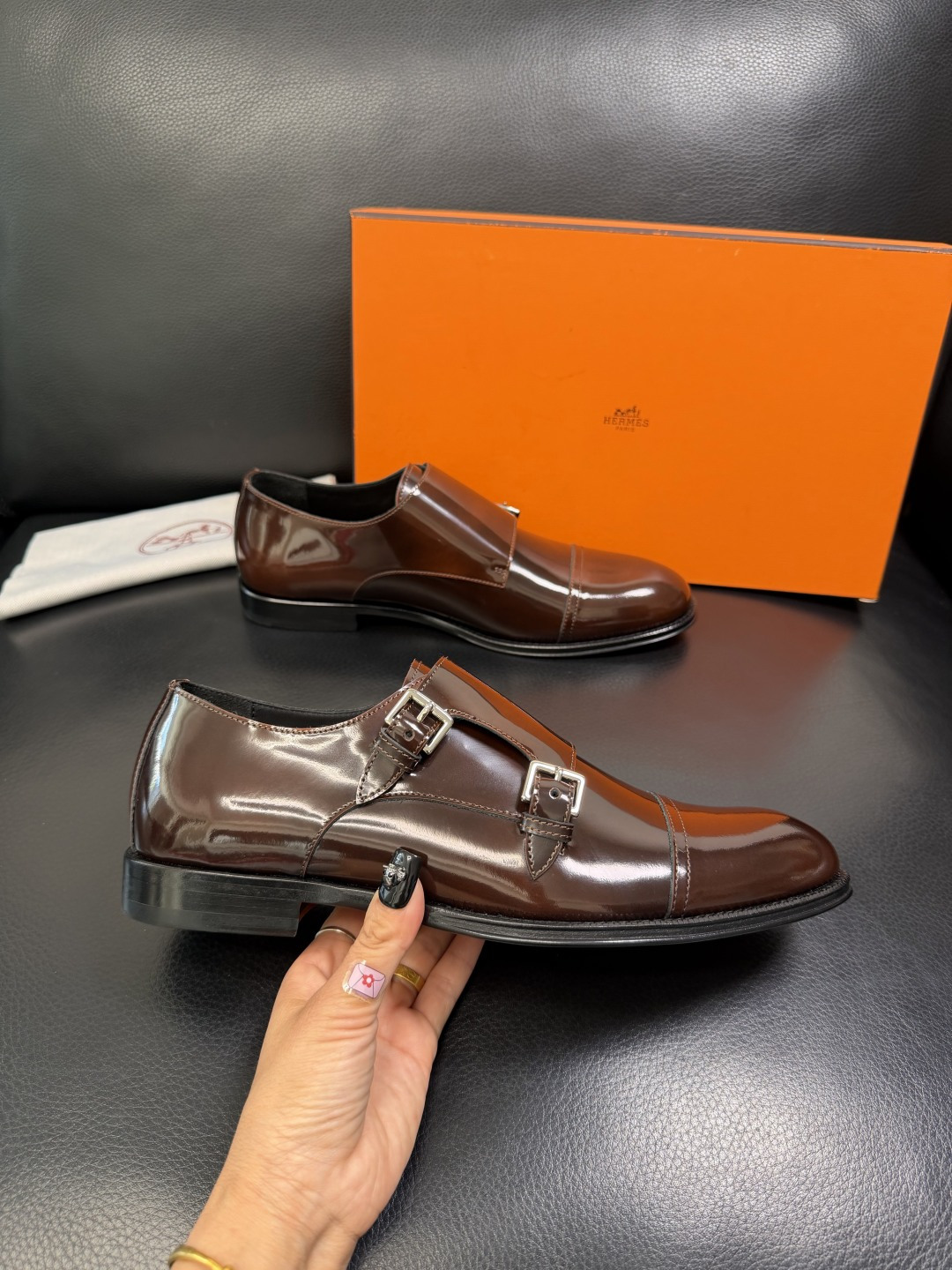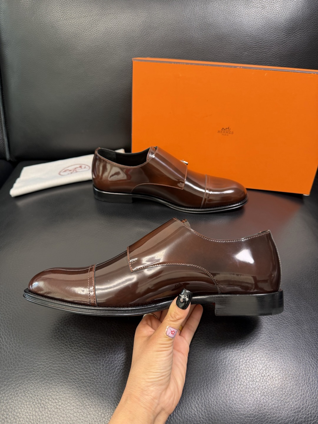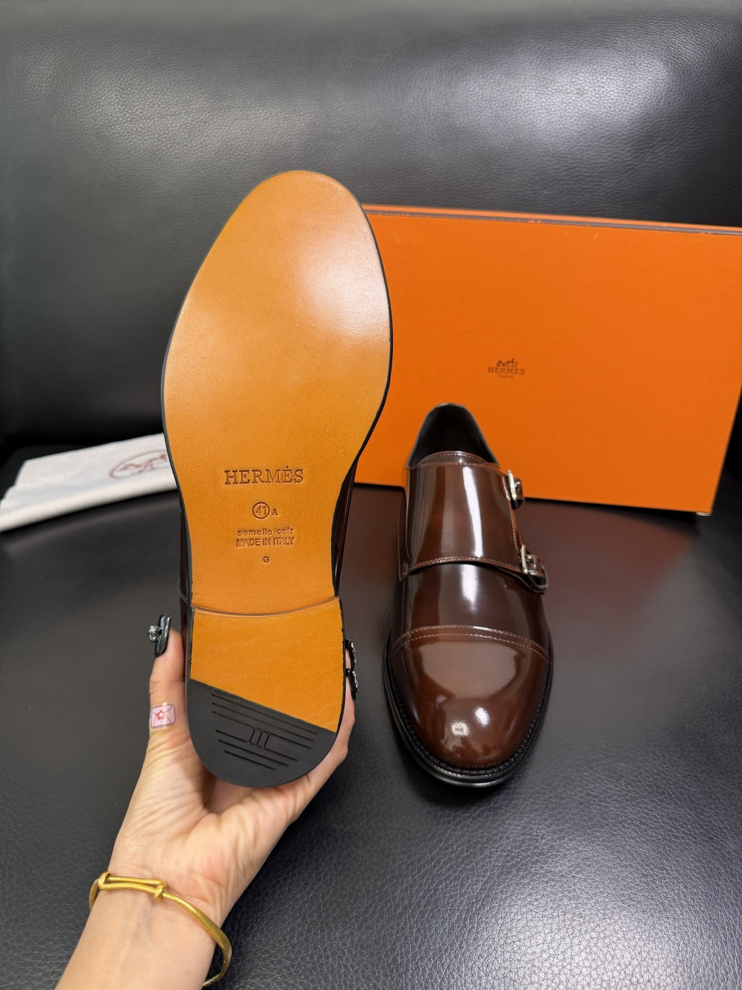 這款鞋子是AAAAA 1:1 質量(非常棒). 使用了和原版一模一樣的材料. 商標部分也保持了和愛馬仕/Hermes一樣. 圖片拍攝是實物鞋子拍攝, 您所收到的實物保證和我們圖片一模一樣.